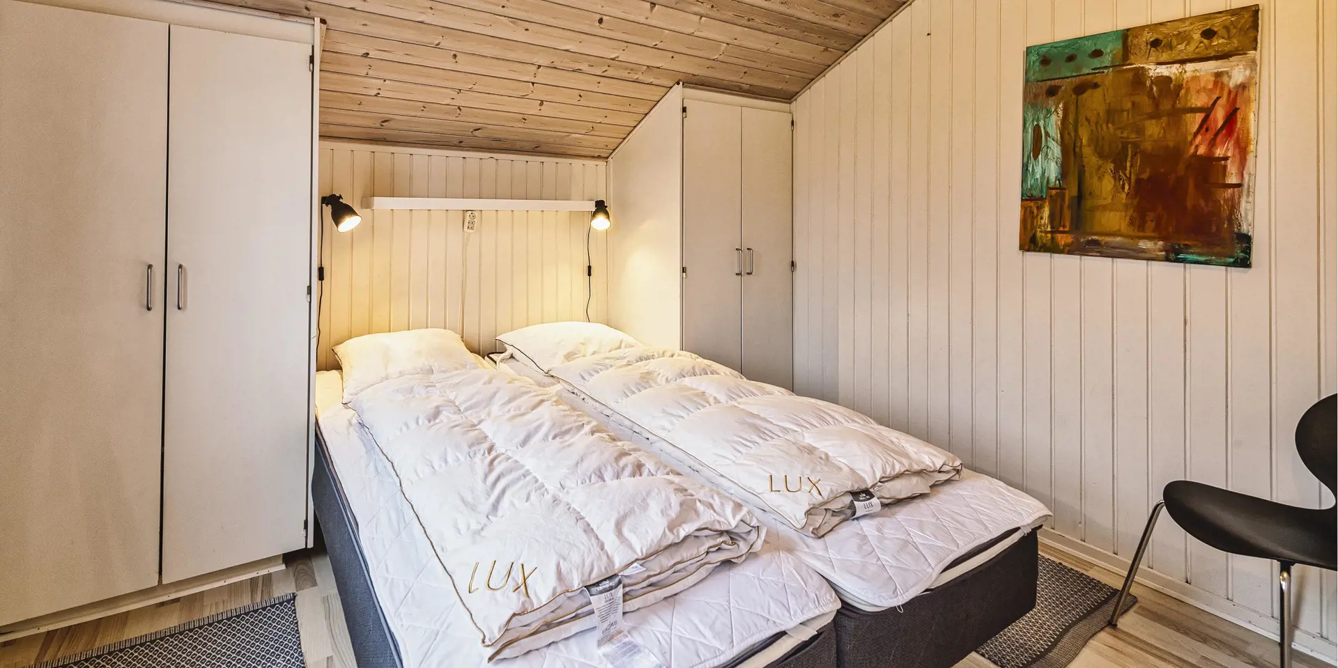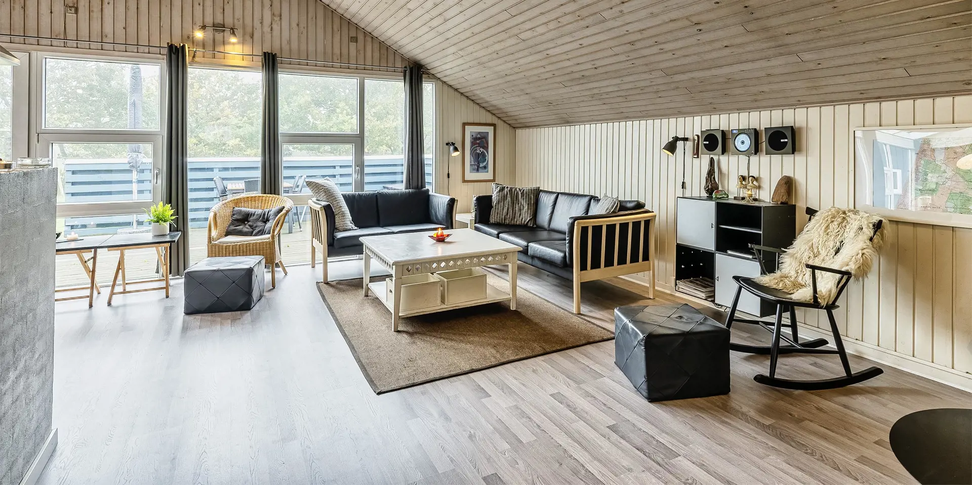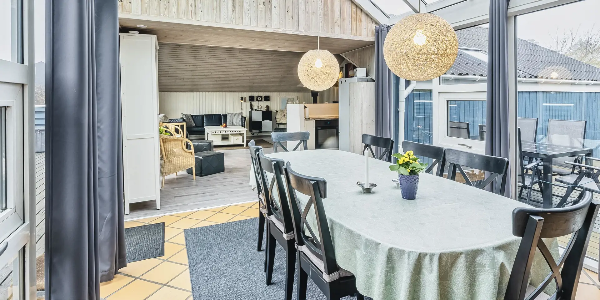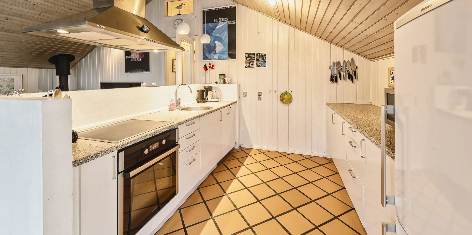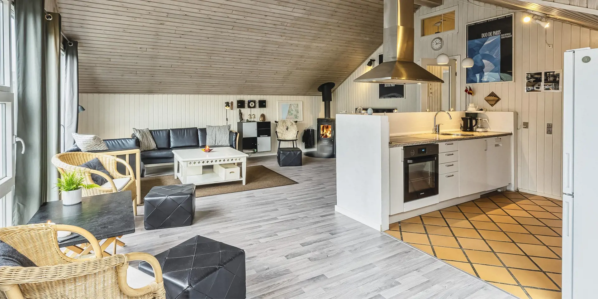 Sehr geschmackvoll eingerichtetes Ferienhaus auf einem schönen Rasengrundstück gelegen und für 9 Personen ausgestattet. Der Strand ist 1,2 Km vom Ferienhaus entfernt. Dieses Ferienhaus ist in zwei Wohn- und Schlafbereiche aufgeteilt. Sie sind mit einem licht durchflutetem Zwischenbau verbunden. In diesem Bereich befindet sich der Essplatz. Im Wohnbereich stehen Ihnen gemütliche Ledermöbel zur Verfügung. Das deutsche Fernsehprogramm empfangen Sie über eine Parabolantenne. Der Kamin ist in dem einen Wohnbereich aufgestellt und strahlt eine angenehme Wärme aus. Es befindet sich eine Warmepumpe im Ferienhaus. Mit dieser Warmepumpe haben sie die Möglichkeit die Stromkosten zu senken, denn die Warmepumpe ist energiesparend. Die Küche verfügt über einen Herd mit Cerankochfeld, einem Backofen, einer Geschirrspülmaschine, einer Mikrowelle und einer Kühl- und Gefrierkombination. In dem Ferienhaus stehen den Bewohnern zwei Bäder zur Verfügung. Das eine Badezimmer hat ein WC, ein Handwaschbecken und eine Dusche. Das große Badezimmer hat ein WC, ein Handwaschbecken, eine Dusche, eine Sauna und einen Standwasser-Whirlpool. Dieser in der Ecke aufgestellte Standwasser-Whirlpool ist ständig mit Wasser befüllt. Daher ist er dann zur Anreise auch immer sofort betriebsbereit. In diesem großen Badezimmer sind die Waschmaschine und der Trockner auch untergebracht. Insgesamt gibt es fünf Schlafzimmer im Ferienhaus: DB + DB + DB + 2B + B. Das Ferienhaus verfügt über einen Internetanschluss (W-Lan). Chromecast. Es gibt zwei schöne Terrassenbereiche am Hause, die Sie für Ihr Sonnenbad oder für Ihre Grillabende nutzen können. Ein Schaukelstativ mit Rutsche und ein Sandkasten stehen für die Kleinen Gäse auf dem Grundstück bereit. Es sind max. drei Haustiere erlaubt. Das Rauchen ist nicht gestattet. Das Ferienhaus wurde 1974 erbaut und in 2004 renoviert.