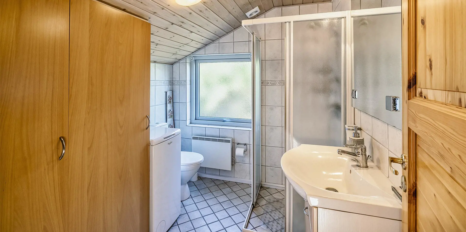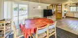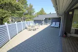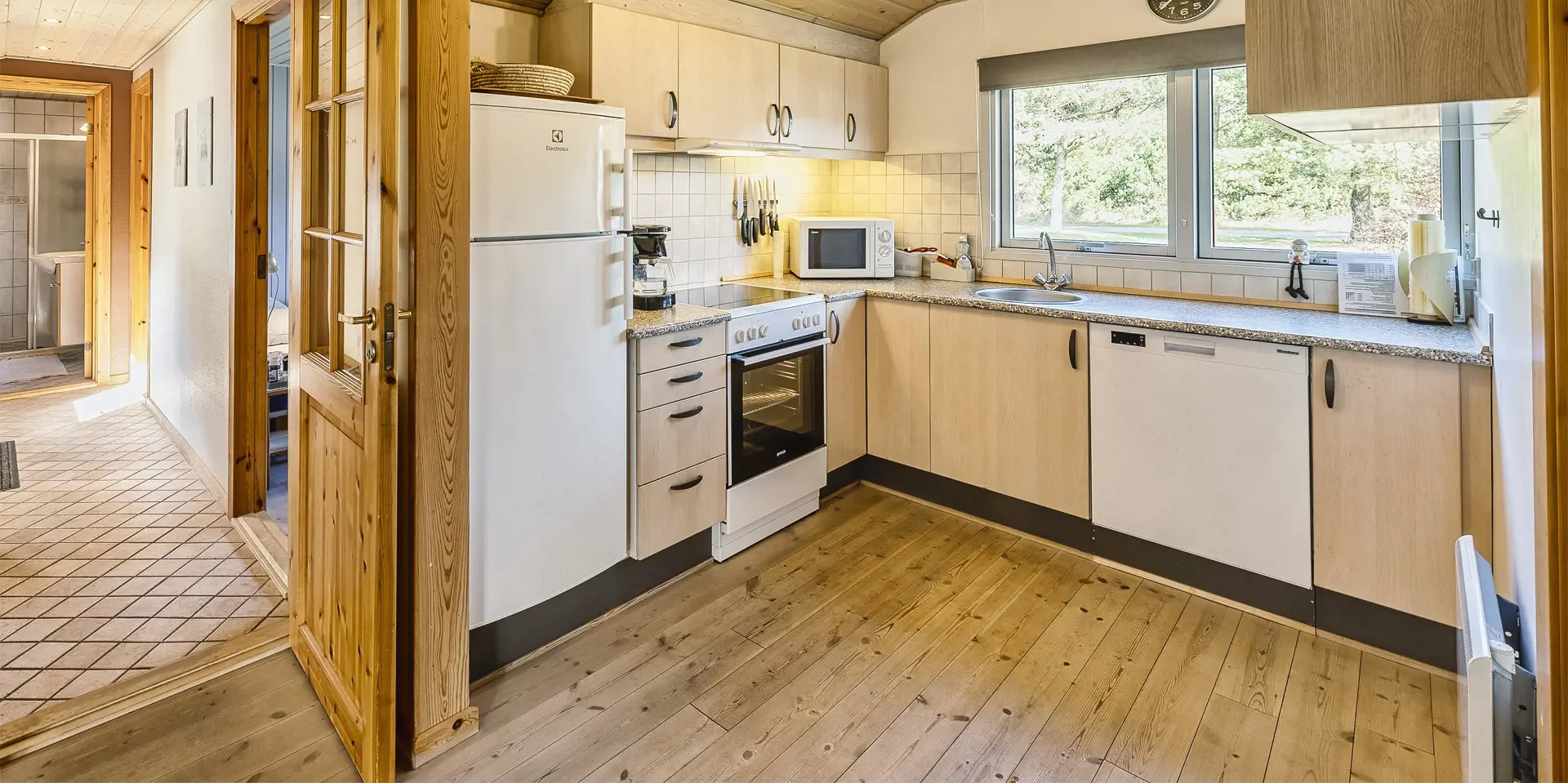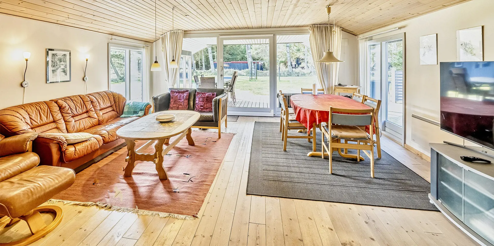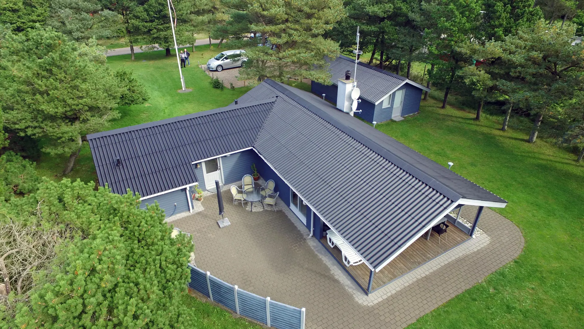 Sehr gepflegtes Ferienhaus auf einem hübsch angelegten und geschlossenen Rasengrundstück gelegen. Das Ferienhaus ist für 6 Personen zugelassen und ausgestattet und der Strand ist ca. 1,5 Km vom Ferienhaus entfernt. Das komplette Ferienhaus ist mit einem tollen Holzfußboden ausgelegt, bis auf das Badezimmer, das ist gefliest. Der Wohnbereich ist mit gemütlichen Sitzgarnitur ausgestattet und verfügt über einen Kamin. Das deutsche Fernsehprogramm empfangen Sie über eine Parabolantenne. Google Chrome Cast. Es befindet sich eine Warmepumpe im Ferienhaus. Mit dieser Warmepumpe haben sie die Möglichkeit die Stromkosten zu senken, denn die Warmepumpe ist energiesparend. Der Küchenbereich ist zum Wohn- und Essbereich offen gehalten und verfüg über einen Herd mit Kochplatten, einem Backofen, einer Geschirrspülmaschine, einer Mikrowelle und einer Kühl- und Gefrierkombination. Ein Badezimmer mit einem WC, einem Handwaschbecken und einer Dusche steht den Gästen ebenfalls zur Verfügung. Eine Waschmaschine steht auch für Sie bereit. Insgesamt stehen den Gästen drei gemütliche Schlafzimmer zur Verfügung: DB + DB + 2B. Der Terrassenbereich ist sehr großzügig gehalten. Ein großer Teil direkt am Haus ist sogar überdacht. Hier haben Sie für alle Bewohner Platz, sollte es mal an Ihrem Grillabend doch mal tröpfeln. Eine Seite ist sogar mit einer Glaswand verschlossen. Für die Kleinen Gäste stehen eine Sandkiste, ein Schaukelstativ und ein größeres Spielhaus zur Verfügung. Am Ferienhaus befinden sich drei Fahrräder, aber wir übernehmen keine Haftung für den Zustand der Räder. Es sind max. drei Haustiere erlaubt. Rauchen ist nicht erlaubt. Das Ferienhaus ist 1969 erbaut worden und in 2002 renoviert.