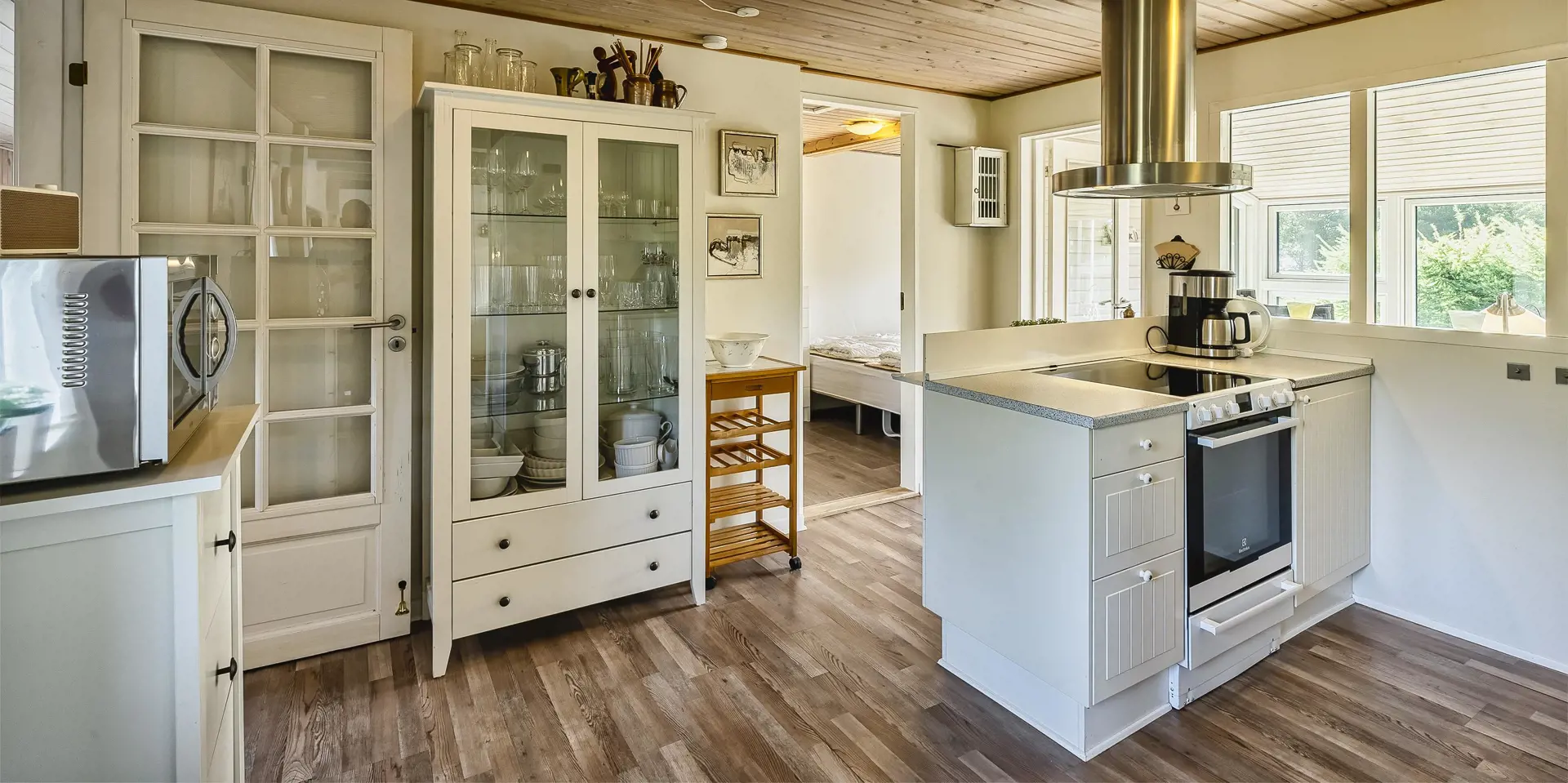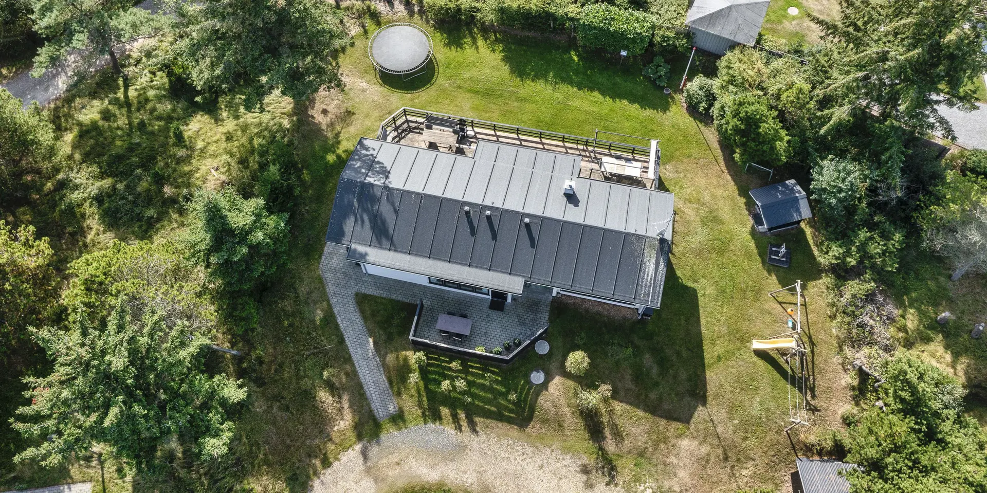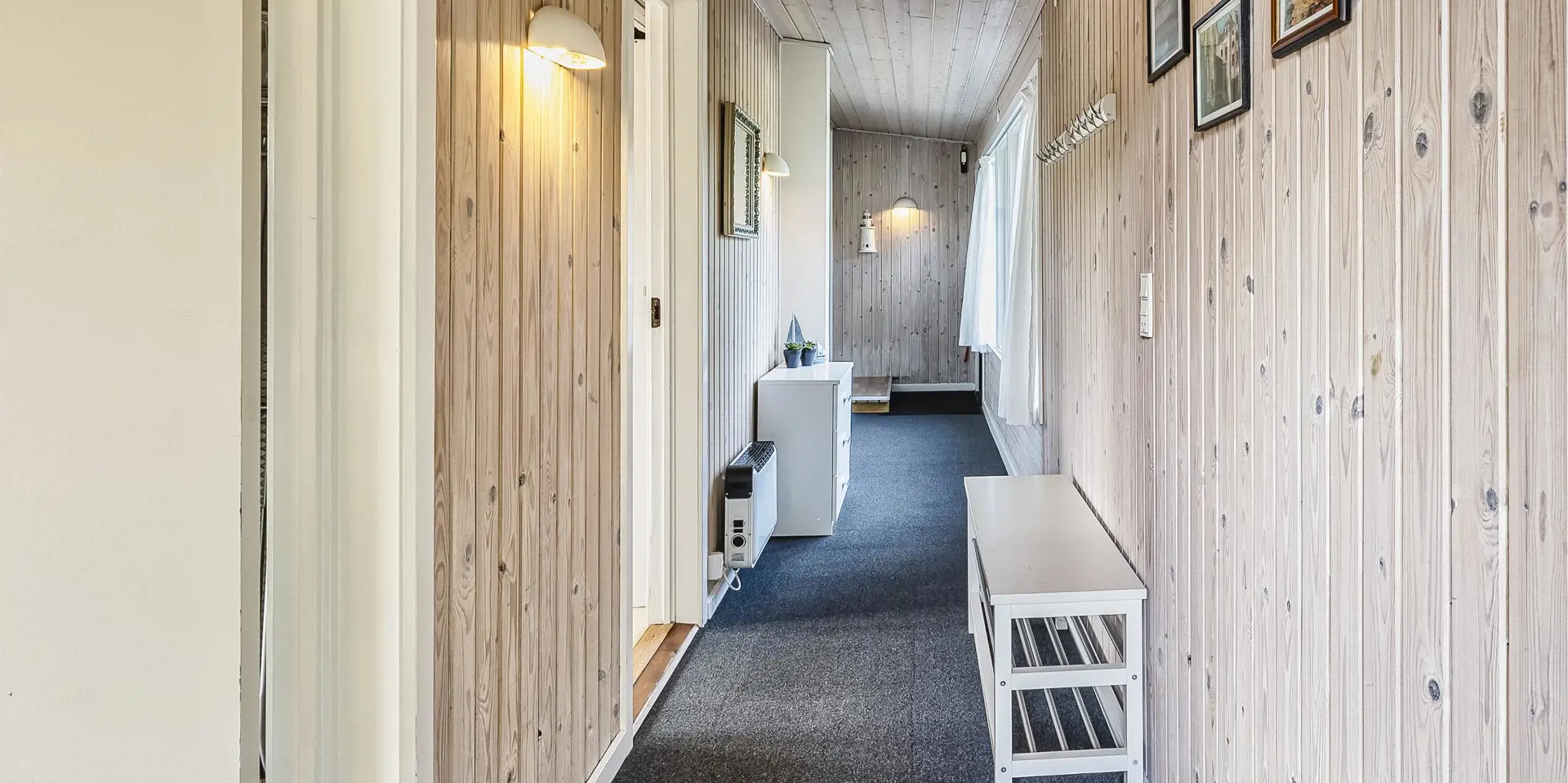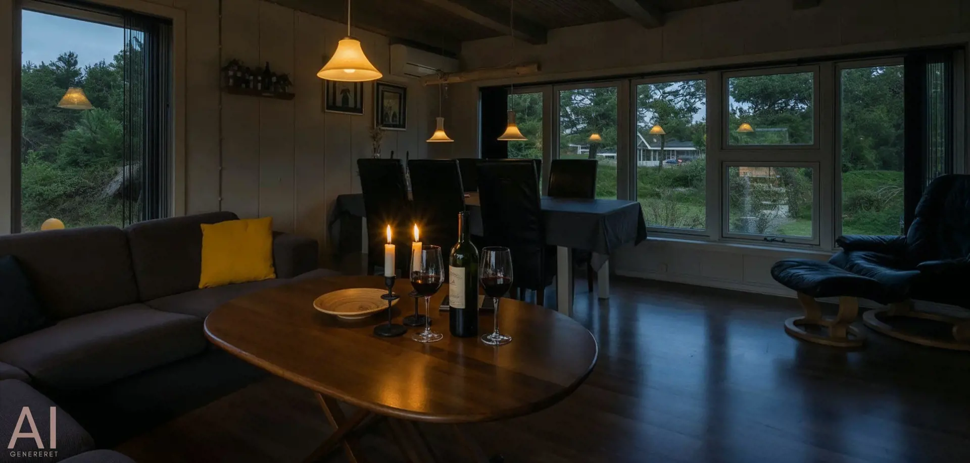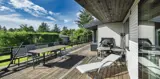 Geschmackvoll eingerichtetes Ferienhaus mit Namen ”Blue Sky” auf einem schönen Naturgrundstück gelegen. Das Ferienhaus ist für 6 Personen ausgestattet. Der Strand ist 1,2 Km vom Ferienhaus entfernt. Der Wohn- und Essbereich ist mit einem tollen Holzfußboden ausgestattet, einer gemütlichen Rundsitzecke und einen Kamin. Es befindet sich eine Warmepumpe im Ferienhaus. Mit dieser Warmepumpe haben sie die Möglichkeit die Stromkosten zu senken, denn die Warmepumpe ist energiesparend. Das deutsche Fernsehprogramm empfangen Sie über eine Parabolantenne. Chromecast. Die Küche ist modern und ausgestattet mit einem Herd mit Kochplatten, einem Backofen, einer Geschirrspülmaschine, einer Mikrowelle und einer Kühl- und Gefrierkombination. Das Badezimmer hat ein WC, ein Handwaschbecken, eine Handtuchhalteheizung und eine Dusche. Die Waschmaschine und der Trockner sind hier im Badezimmer untergebracht. Insgesamt stehen den Gästen 3 Schlafzimmer zur Verfügung: DB + DB + DB. Das Ferienhaus verfügt über einen Internetanschluss (W-Lan). Rauchen ist nicht erlaubt. In dem Wintergarten sind flotte Rattanmöbel mit einer hohen Lehne aufgestellt. Hier kommt durch die vielen Fenster reichlich Licht in den Bereich. Zwei schöne Terrassenbereiche stehen am Haus den Gästen bereit, wo Sie zum Beispiel Ihr Sonnenbad geniessen können, Ihren Kaffee trinken, einen Grillabend gestalten oder einfach nur relaxen. Der größere Terrassenbereich ist sogar geschlossen. Da können Ihre Vierbeine mal Luft schnappen ohne, das sie gleich stiften gehen können. Ein kleiner Kinderspielplatz mit Schaukelstativ und Rutsche, einer Sandkiste und einem Spielhaus befindet sich auf dem Grundstück. Trampolin. Ein Kohlegrill steht den Gästen auch zur Verfügung. Auch ausreichend Platz zum Bolzen ist gegeben. Es sind max. zwei Haustiere erlaubt. Das Ferienhaus ist 1964 erbaut worden und in 2015 ist es teilrenoviert.