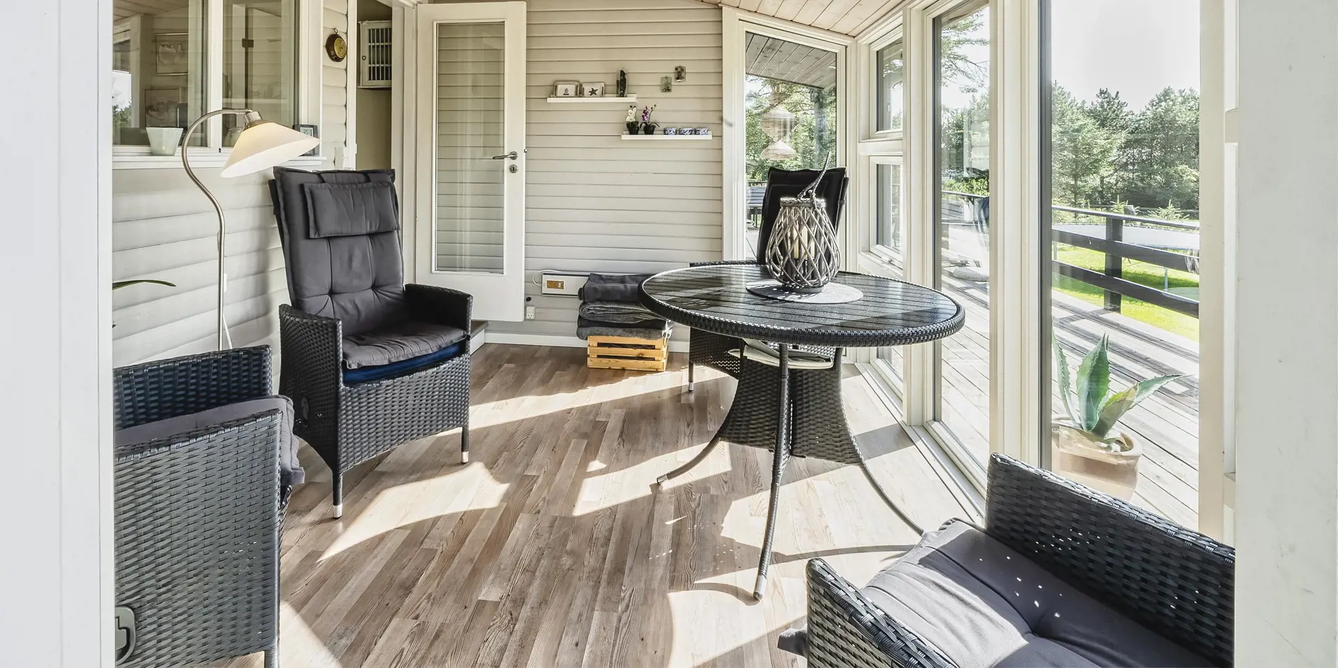 Geschlossene und überdachte Terrasse.
