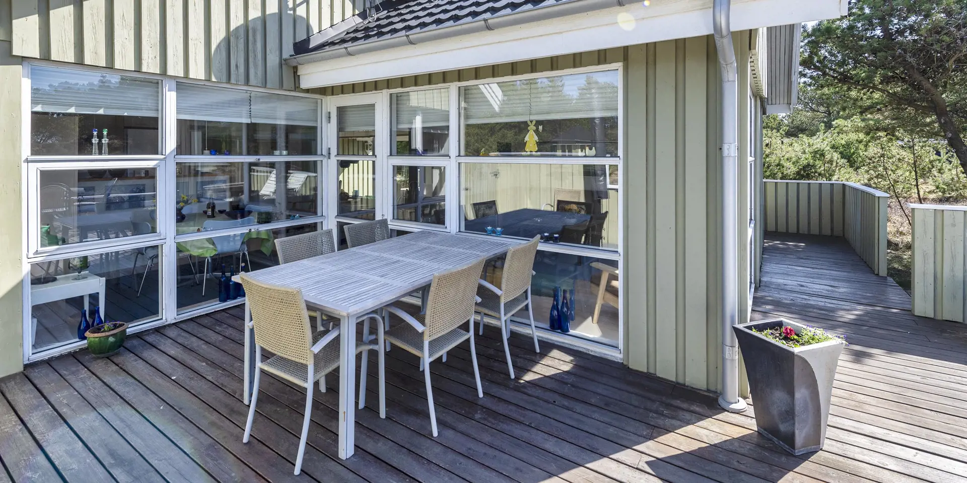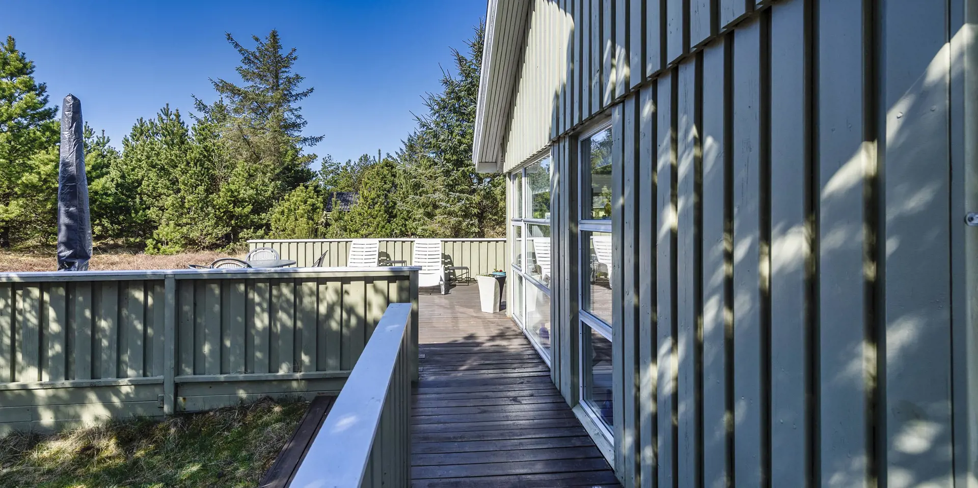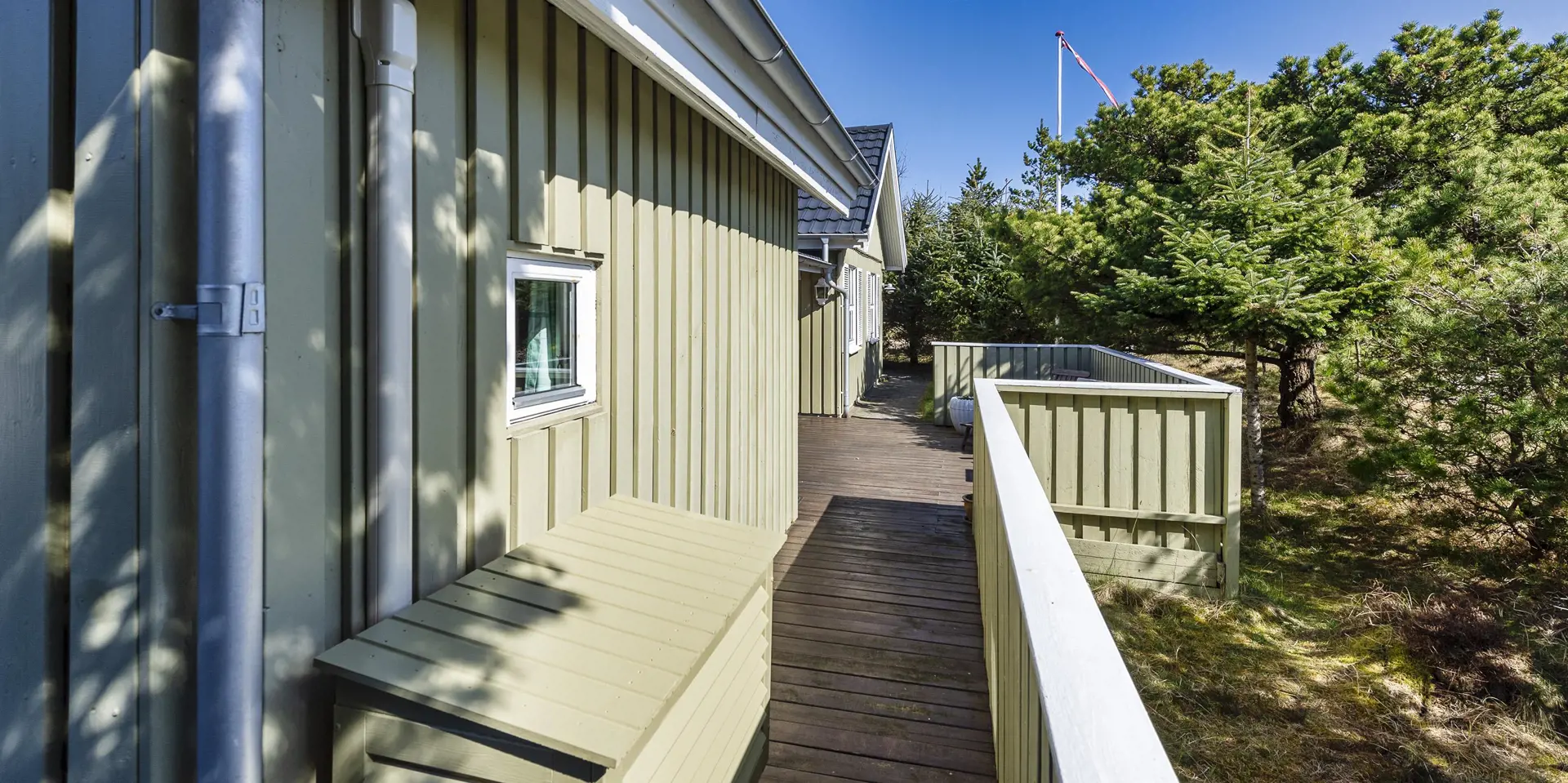 Auf einem tollen Naturgrundstück, umgeben von Bäumen, befindet sich dieses Ferienhaus mit Namen ”Asgard”. Der Strand ist ca. 800 Meter vom Ferienhaus entfernt. Das Haus ist für 4 Personen ausgestattet. Der Wohnbereich ist mit einer gemütlichen Rundsitzecke ausgestattet und verfügt über einen Kamin. In der Ecke befindet sich noch ein Alkoven. Hier haben Sie die Möglichkeit sich zurück zuziehen und zu entspannen oder einfach nur zu relaxen. Oder nehmen Sie Platz auf den Ledersessel in der Leseecke und lesen Ihr Buch. Das deutsche Feinsehprogramm empfangen Sie über eine Parabolantenne. Gegenüber der Küche ist der Esstisch mit Stühlen aufgestellt. Die Küche verfügt über einen Herd mit Ceranfeld, einem Backofen, einer Geschirrspülmaschine, einer Mikrowelle und einem Kühl- und Gefrierkombination. In dem Abstellraum befindet sich zusätzlich eine Gefriertruhe, die genutzt werden kann. Das Badezimmer verfügt über ein WC, ein Handwaschbecken und eine Dusche. Hier im Badezimmer ist die Waschmaschine und ein Trockner untergebracht. Genügend Ablagefläche steht den Gästen auch zur Verfügung. Insgesamt stehen Ihnen drei Schlafzimmer zur Verfügung: DB + DB + B. Am Ferienhaus steht für Ihr Fahrzeug ein Carport bereit. Der gesamte Terrassenbereich ist hübsch angelegt und bietet viele Möglichkeiten an. Zum sonnen baden oder auch um Ihre Grillabende zu gestalten. Das Ferienhaus verfügt über einen Internetanschluss (W-Lan) und Wärmepumpe. Es sind keine Haustiere erlaubt. Das Ferienhaus ist 1967 erbaut worden und in 2005 renoviert.