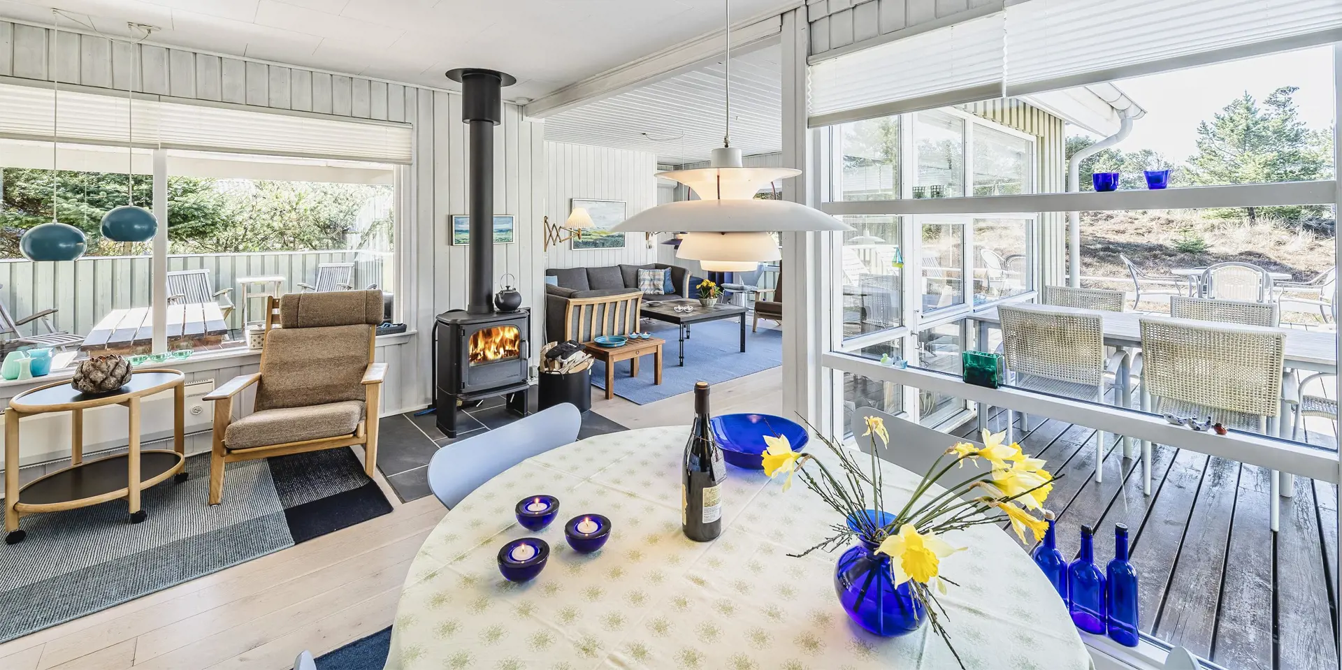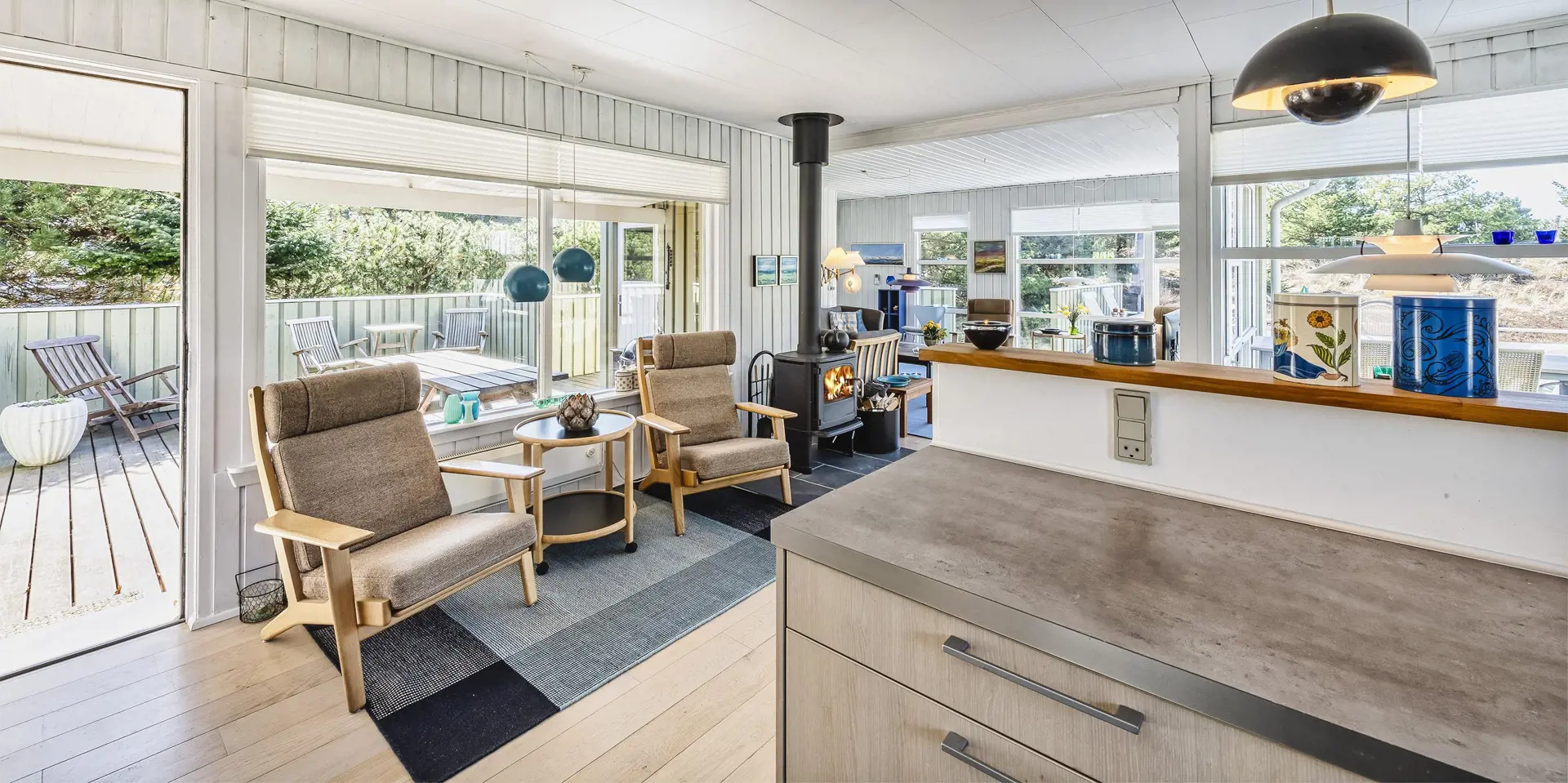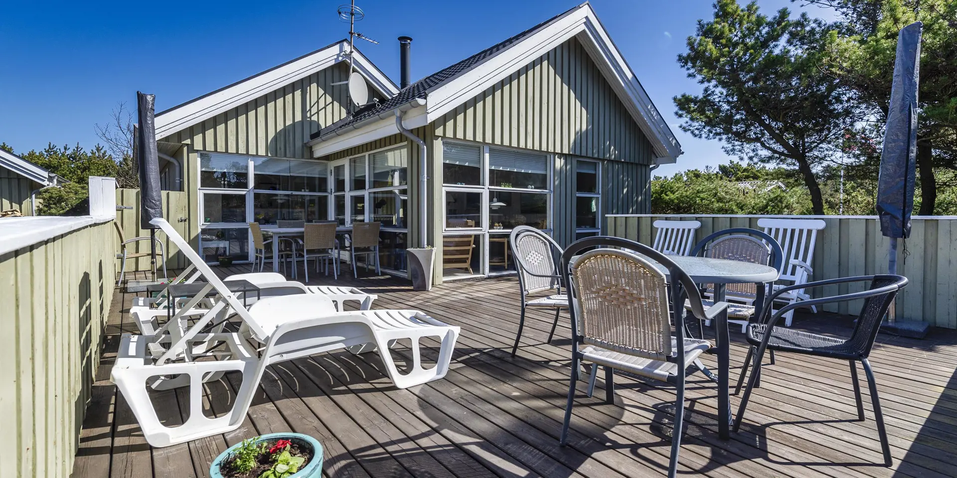 Auf einem tollen Naturgrundstück, umgeben von Bäumen, befindet sich dieses Ferienhaus mit Namen ”Asgard”. Der Strand ist ca. 800 Meter vom Ferienhaus entfernt. Das Haus ist für 4 Personen ausgestattet. Der Wohnbereich ist mit einer gemütlichen Rundsitzecke ausgestattet und verfügt über einen Kamin. In der Ecke befindet sich noch ein Alkoven. Hier haben Sie die Möglichkeit sich zurück zuziehen und zu entspannen oder einfach nur zu relaxen. Oder nehmen Sie Platz auf den Ledersessel in der Leseecke und lesen Ihr Buch. Das deutsche Feinsehprogramm empfangen Sie über eine Parabolantenne. Gegenüber der Küche ist der Esstisch mit Stühlen aufgestellt. Die Küche verfügt über einen Herd mit Ceranfeld, einem Backofen, einer Geschirrspülmaschine, einer Mikrowelle und einem Kühl- und Gefrierkombination. In dem Abstellraum befindet sich zusätzlich eine Gefriertruhe, die genutzt werden kann. Das Badezimmer verfügt über ein WC, ein Handwaschbecken und eine Dusche. Hier im Badezimmer ist die Waschmaschine und ein Trockner untergebracht. Genügend Ablagefläche steht den Gästen auch zur Verfügung. Insgesamt stehen Ihnen drei Schlafzimmer zur Verfügung: DB + DB + B. Am Ferienhaus steht für Ihr Fahrzeug ein Carport bereit. Der gesamte Terrassenbereich ist hübsch angelegt und bietet viele Möglichkeiten an. Zum sonnen baden oder auch um Ihre Grillabende zu gestalten. Das Ferienhaus verfügt über einen Internetanschluss (W-Lan) und Wärmepumpe. Es sind keine Haustiere erlaubt. Das Ferienhaus ist 1967 erbaut worden und in 2005 renoviert.