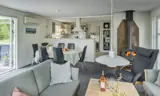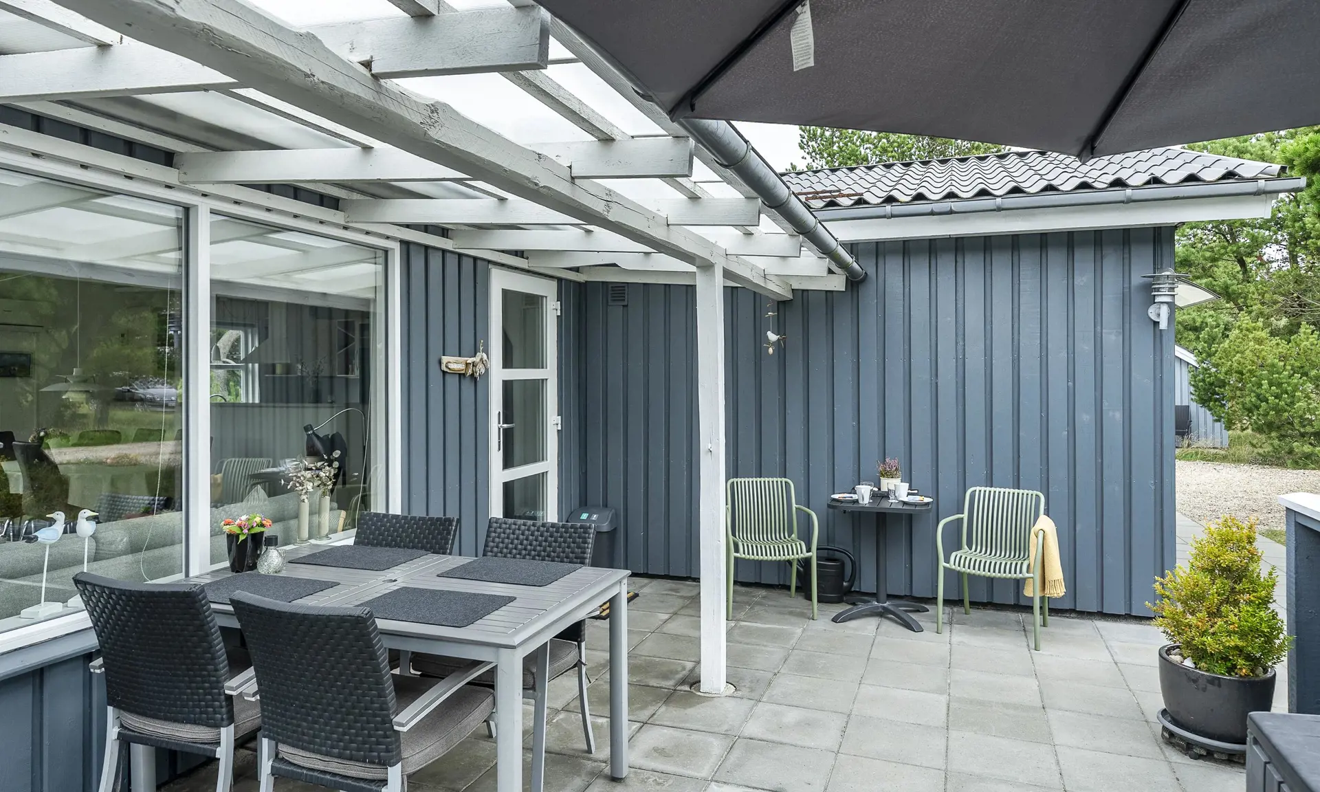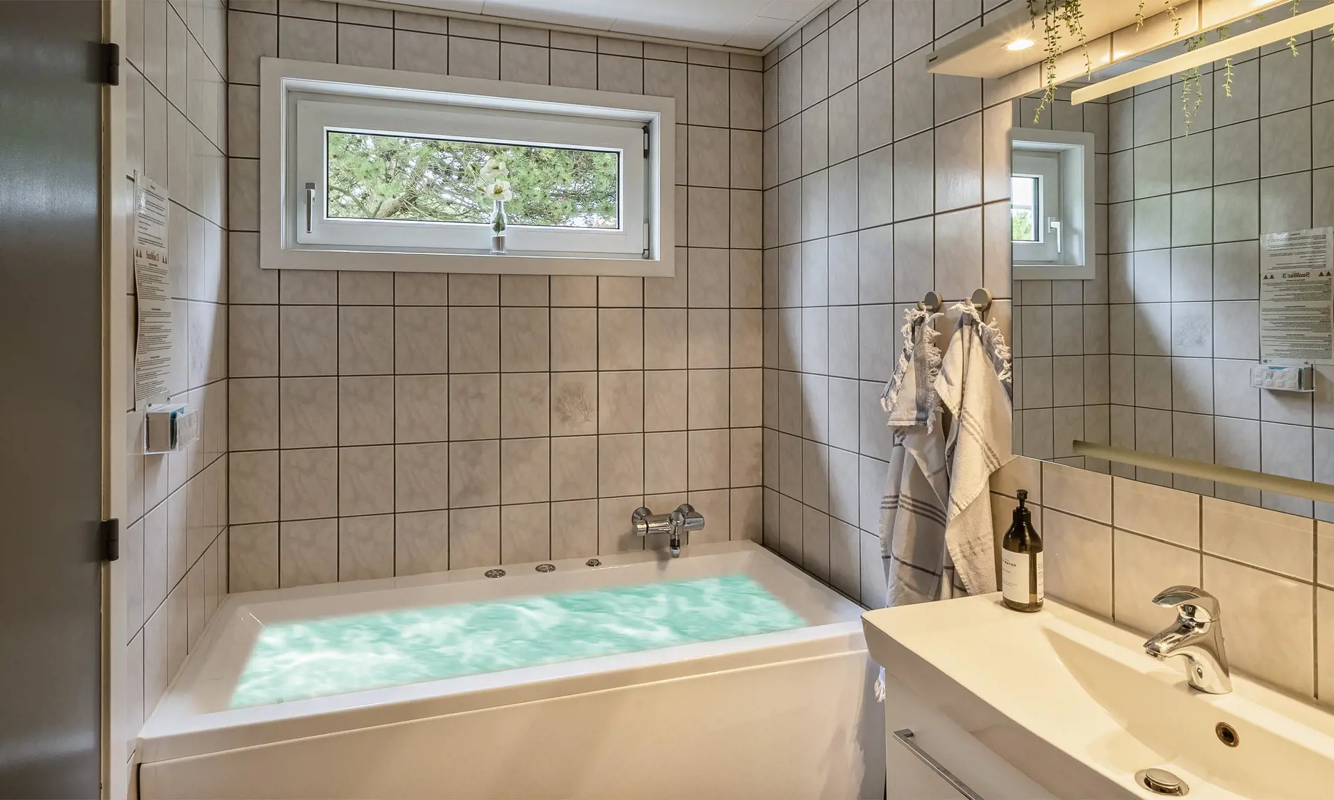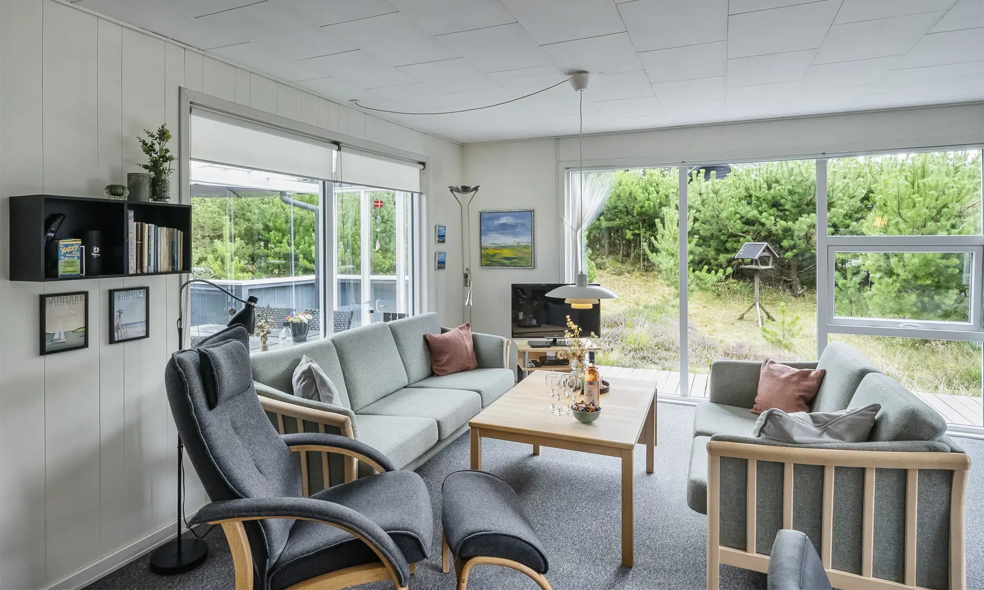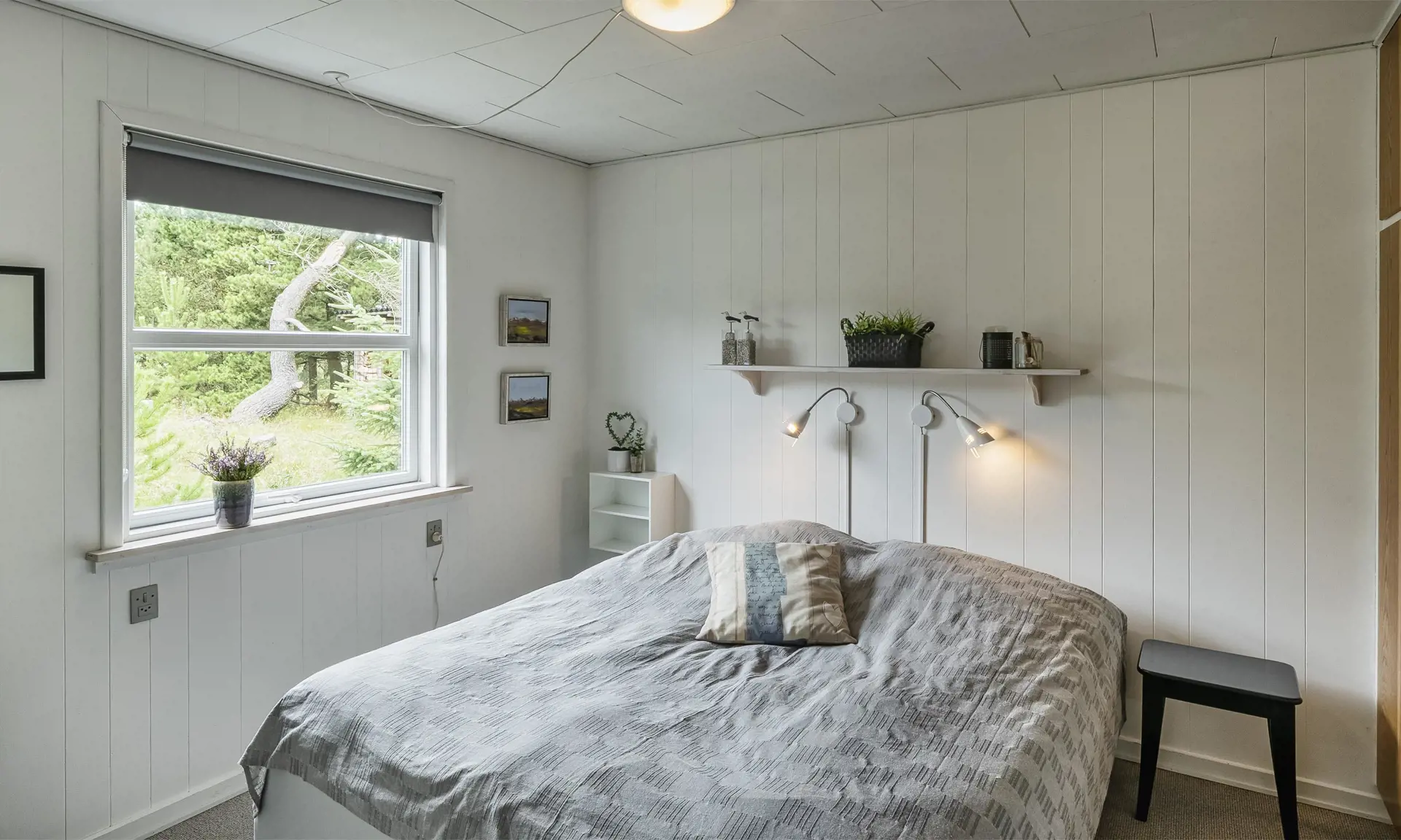 Geschmackvoll eingerichtetes Ferienhaus für bis zu 6 Personen, gelegen auf einem abgeschlossenen Naturgrundstück, ca. 800 Meter vom Strand entfernt. Wohnzimmer mit Fernseher mit DR-Programmen, Chrome Cast, Smart-TV und Satellitenschüssel. Helles, funktionelles und gut ausgestattetes Küche mit u. a. Geschirrspüler und Mikrowelle. Holzofen und energieeffiziente Wärmepumpe. Badezimmer mit Fußbodenheizung, Dusche, WC, Whirlpool und Sauna. Waschmaschine und Trockner vorhanden.