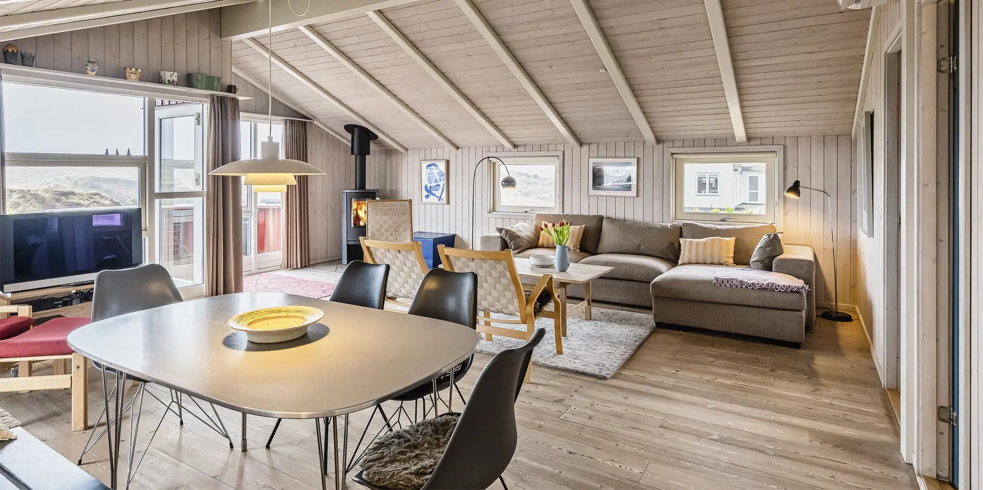Dieses schöne Ferienhaus mit Namen ”Soltop” liegt in einer bevorzugten Wohngegend in Vejers Strand in Mitten der Dünen und mit einem tollen Panoramablick über das Feriengebiet. Das Ferienhaus ist für 6 Personen ausgestattet und bietet seinen Bewohnern alles was Sie im Urlaub brauchen. Der Strand ist nur ca. 100 Meter vom Ferienhaus entfernt. Der Wohnbereich ist mit dem Essbereich zusammen und mit einem tollen Holzfussboden versehen. Ein Kamin spendet die gemütliche Athospäre. Das deutsche Fernsehprogramm empfangen Sie über eine Parabolantenne sowie gibt es Apple Tv. Eine Durchreiche fürht dann in den Küchenbereich. Die Küche ist mit einem Herd mit Cerankochfeld, einem Backofen, einer Geschirrspülmaschine, einer Mikrowelle und einer Kühl- und Gefrierkombination ausgestattet. Zwei Badezimmer stehen den Gästen zur Verfügung. Das grosse Badezimmer verfügt über ein WC, ein Handwaschbecken, eine Dusche, eine Sauna und einen Whirlpool. Genügend Ablagefläche steht für Ihre Badutensilien zur Verfügung. Das kleine Gästebad ist mit einem WC und Handwaschbecken ausgestattet. Eine Waschmaschine und ein Trockner stehen den Bewohner auch zur Verfügung. Insgemsamt gibt es drei Schlafzimmer: DB + DB + 2B. Das Ferienhaus verfügt über einen Internetanschluss (W-Lan). Ein toller Terrassenbereich steht Ihnen am Ferienhaus zur Verfügung, entweder für zum Beispiel Ihr Sonnenbad oder einfach nur um Ihren Kaffee draussen zu geniessen. Die Terrasse ist teilweise geschlossen. Haustiere und Rauchen sind nicht zugelassen. Das Ferienhaus ist 2000 erbaut worden. Gratis Eintritt für das Badeland in Varde in 2025