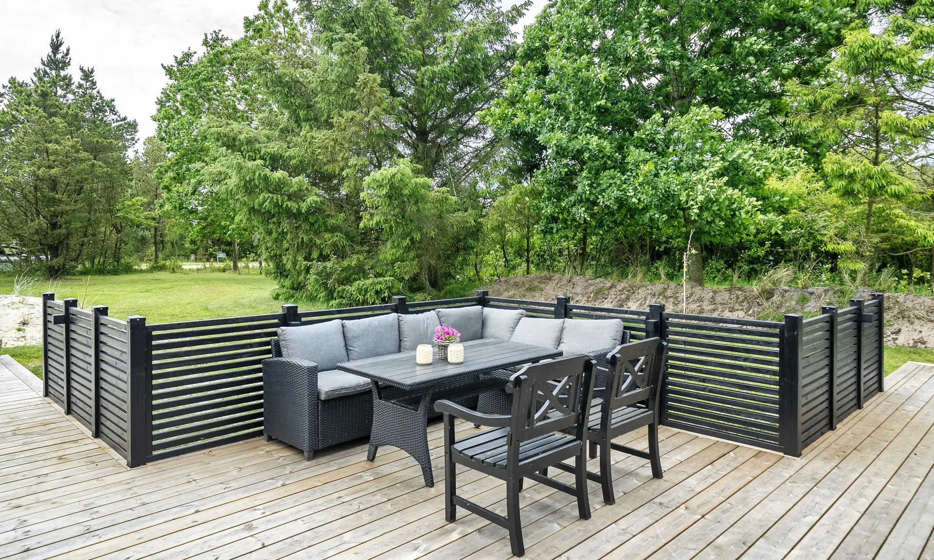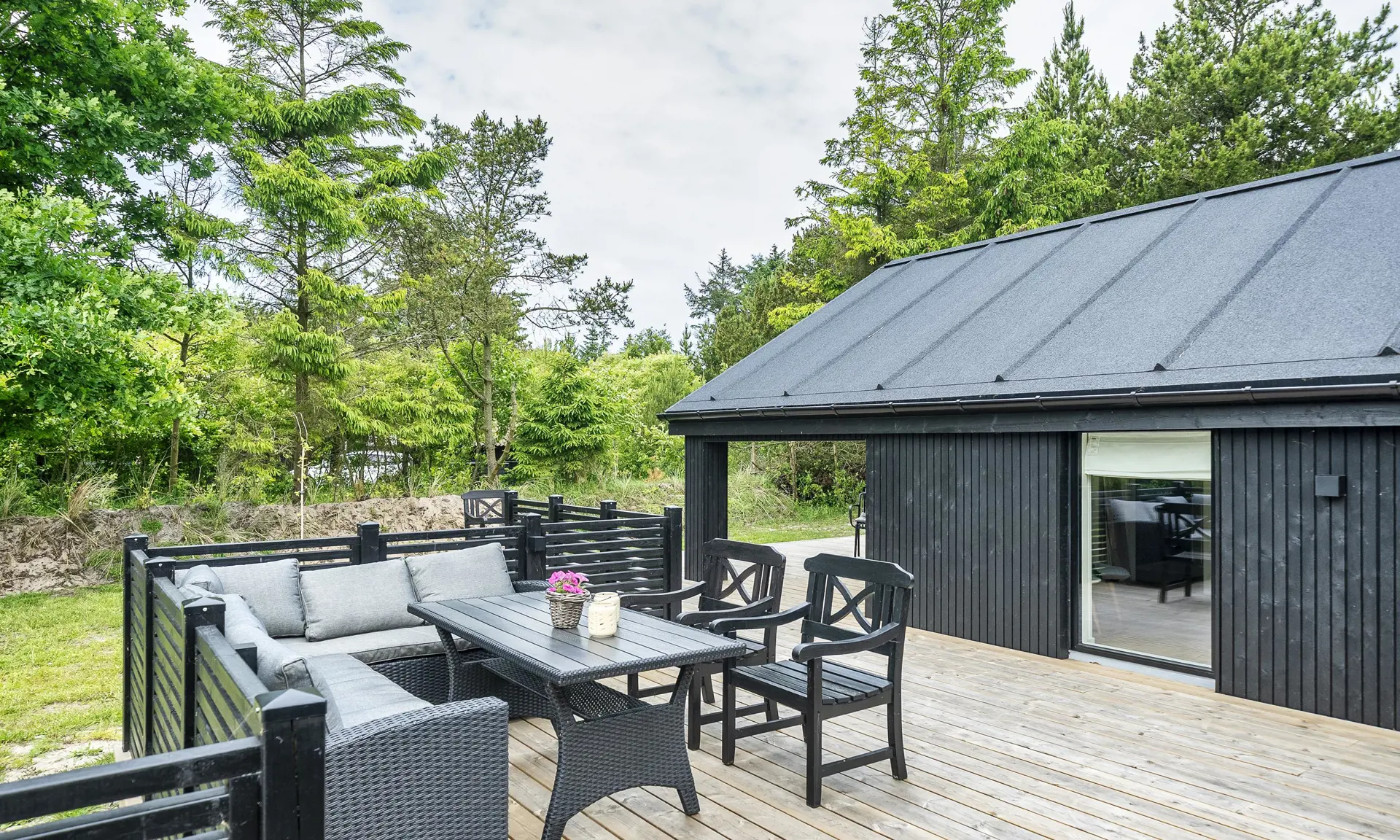 Willkommen in diesem wunderschönen, neu erbauten Ferienhaus, das modernen Komfort mit klassischem Ferienhauscharme verbindet. Das Haus ist aus Holz mit Bitumendach gebaut und verfügt über eine große, teilweise überdachte Holzterrasse, auf der Sie den Urlaub unter freiem Himmel genießen und im herrlichen Außen-Whirlpool entspannen können.Es liegt in sehr ruhiger Umgebung, nahe beeindruckender Natur mit See und Wald.Das Haus hat ein offenes Dach bis zum First und einen fantastischen Lichteinfall. Fünf geräumige Schlafzimmer (4 x Doppelbett, 2 x Einzelbett), die der ganzen Familie ausreichend Platz bieten. Zwei schöne Badezimmer mit Dusche.Das Ferienhaus verfügt über einen praktischen Eingangsbereich mit viel Platz für Oberbekleidung und Schuhe.Der große Aktivitätsraum mit Billardtisch bietet stundenlange Unterhaltung und Gemütlichkeit für Kinder und Erwachsene.Die helle und moderne Küche lädt zum gemeinsamen Kochen ein. Küche und Essbereich sind offen mit dem gemütlichen Wohnzimmer verbunden, in dem der Kaminofen eine warme und entspannte Atmosphäre schafft.Das Haus wird mit einer effizienten Luft/Wasser-Wärmepumpe beheizt, die das ganze Jahr über ein angenehmes Raumklima gewährleistet. Der Hauseigentümer stellt einen Gasgrill zur Verfügung. Für das Gas hat der Mieter selbst zu sorgen.