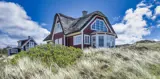 Der Eingangsbereich ist in der Kelleretage und hat viel Platz, um Schuhe und Jacken abzulegen und ist ausserdem mit einer Fussbodenheizung ausgestattet. In dieser Etage haben wir auch das grosse Badezimmer mit dem Standwasser-Whirlpool und der Sauna. Das WC ist in einem separaten Raum vom Bad abgetrennt. Desweiteren haben wir hier ein Abstellraum für viele diverse Dinge, die nicht alltäglich gebraucht werden. Ein grosses Schlafzimmer, hier im Bereich, verfügt über ein Doppelbett. Über eine Treppe gelangen Sie nun in die ebene Etage, auf den Dünen gelegen. Hier finden sie dann auch den Wohn- und Essbereich, die offene Küche und zwei weitere Schlafzimmer. Der hängenden Kamin strahlt eine angenehme und gemütliche Atmosphäre aus. Es befindet sich eine Warmepumpe im Ferienhaus. Mit dieser Warmepumpe haben sie die Möglichkeit die Stromkosten zu senken, denn die Warmepumpe ist energiesparend. Das deutsche Fernsehprogramm ist über eine Parabol-Antenne zu empfangen, auch dänische Programme können damit empfangen werden. Von diesem grossen gemütlichem Wohnzimmer aus gelangen Sie weiter in eine kleine Lese-Ecke und zum Essbereich mit der offenen Küche. Die Küche ist mit einem Herd mit Ceranfeld und Backofen, einer Geschirrspülmaschine und einer Kühl- und Gefrierkombination ausgestattet. Auf dieser Etage gibt es weiterhin zwei grosse Schlafzimmer, eines davon mit einem Doppelbett und eines mit zwei Einzelbetten. Von dem Flurbereich führt dann weiter eine Treppe ins Obergeschoss. Dort gelangen Sie dann in einen offenen Wohnbereich mit einem Panoramafensterfront und gemütlichen Möbeln. Auf dieser Etage ist auch ein Schlafzimmer mit einem Doppelbett. Ein weiteres kleines Badezimmer mit Handwaschbecken, Dusche und einem WC. Vier Schlafzimmer: DB + DB + DB + 2B. Unter anderem befindet sich Internetanschluss (W-Lan) im Ferienhaus. Eine Waschmaschine und ein Trockner befinden sich ebenfalls im Ferienhaus und steht den Gästen zur Verfügung. Das Rauchen ist nicht gestattet. Das Ferienhaus ist 2002 erbaut. Es sind max. drei Haustiere erlaubt.