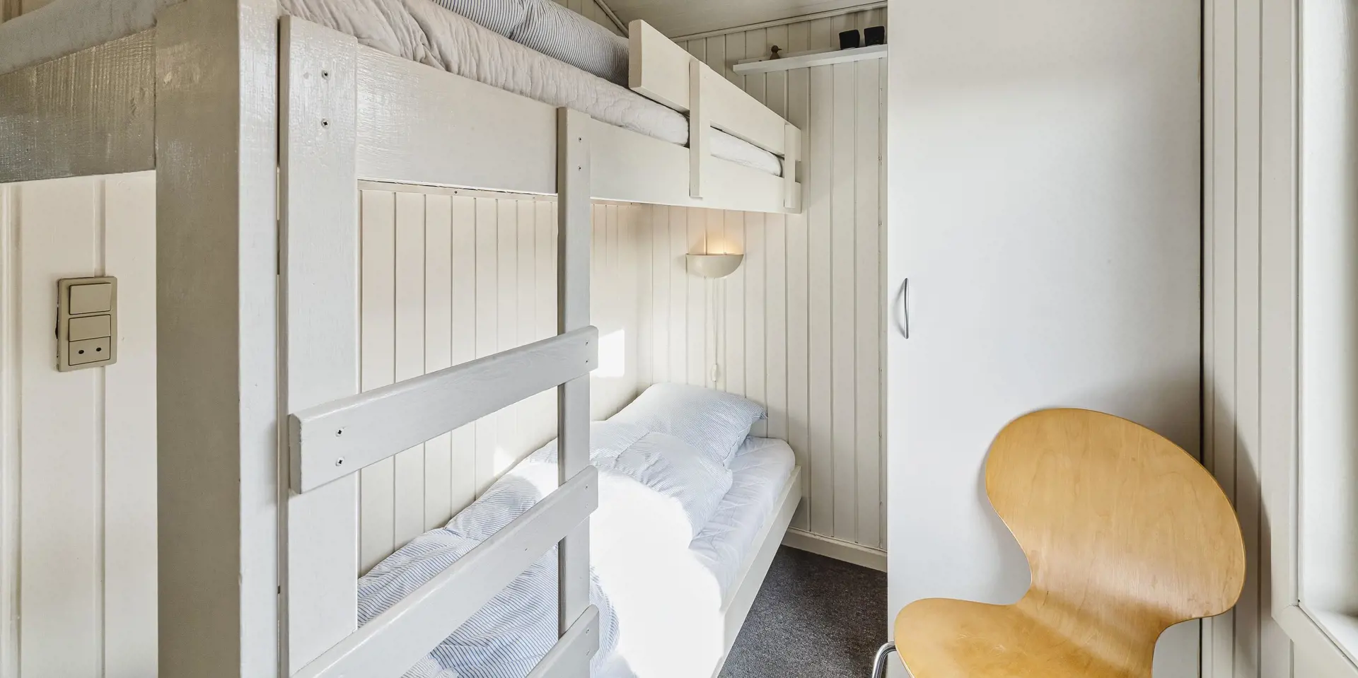 3 Schlafzimmer. 2 mit Doppelbett 180x200 cm. 1 mit Etagenbett.