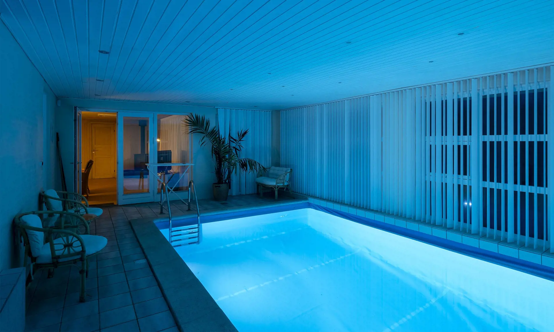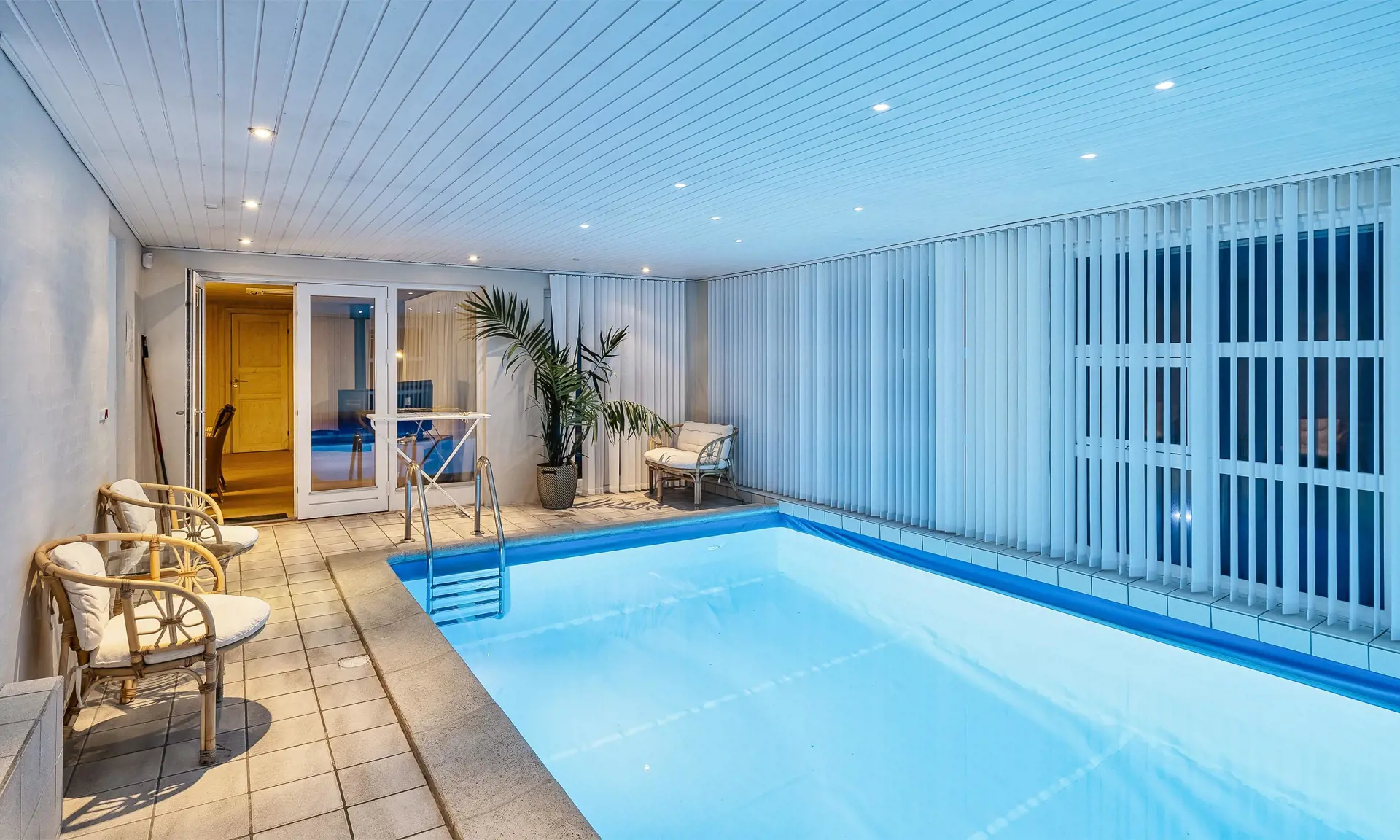 Geschmackvoll eingerichtetes Poolhaus in hübscher Dünenlandschaft gelegen. Das Poolhaus ist für 8 Personen ausgestattet und nur 200 Meter vom Strand entfernt. Vom Hauswirtschaftsraum, der auch gleich als Eingangsbereich dient gehen insgesamt drei Schlafzimmer, ein Badezimmer und die Küche ab. Im Hauswirtschaftsraum sind eine Waschmaschine und ein Trockner untergebracht. Das Badezimmer in diesem vorderen Bereich hat ein WC, ein Handwaschbecken und eine Dusche. Der Küchenbereich ist modern und mit einem Herd mit Cerankochfeld, einem Backofen, einer Geschirrspülmaschine, eine Mikrowelle und einer Kühl- und Gefrierkombination ausgestattet. Durch den Küchenbereich gelangen Sie dann in den angenehmen Wohnbereich. Hier befindet sich der Kamin und gemütliche Ledermöbel. Das deutsche Fernsehprogramm empfangen Sie über eine Parabolantenne und Chromecast. Hier vom Wohnzimmer geht dann ein weiteres Schlafzimmer ab. Also insgesamt stehen vier Schlafzimmer zur Verfügung: DB + DB + 2B + 2B. Zwei davon sind mit je einem Doppelbett ausgestattet und die anderen beiden verfügen je über zwei Einzelbetten. Zum Poolbereich gelangen Sie auch vom Wohnzimmer aus. Der Poolraum hat ein grosses Schwimmbecken mit Maß von ca. 6 x 3 x 1,30 (Länge x Breite x Tiefe), sowie ein Festwasserwhirlpool ( für ca. 4 Personen). Ein großes Badezimmer steht in diesem Bereich ebenfalls zur Verfügung. Das Badezimmer hat ein WC, ein Handwaschbecken, eine Dusche und eine Sauna. Das Haus verfügt über Luft-Luft- und Luft-Wasser-Wärmepumpen, um den Pool und das Haus mit umweltfreundlichen Strom zu heizen. Mit diese Warmepumpen haben sie die Möglichkeit die Stromkosten zu senken, denn die Warmepumpe ist energiesparend. Das Ferienhaus verfügt über einen Internetanschluss (W-Lan). Es sind max. zwei Haustiere erlaubt. Zwei geschlossene Terrassenbereiche stehen den Gästen zur Verfügung. Hier kann Ihr Vierbeiner mal Luft schnappen, ohne das er gleich stiften gehen kann. Ein kleiner Teil von dem großen Terrassenbereich ist sogar überdacht. Das Ferienhaus ist 1989 erbaut worden. Rauchen ist nicht erlaubt. Der Hauseigentümer hat laufend renoviert, und das Ferienhaus ist sehr gut gepflegt.