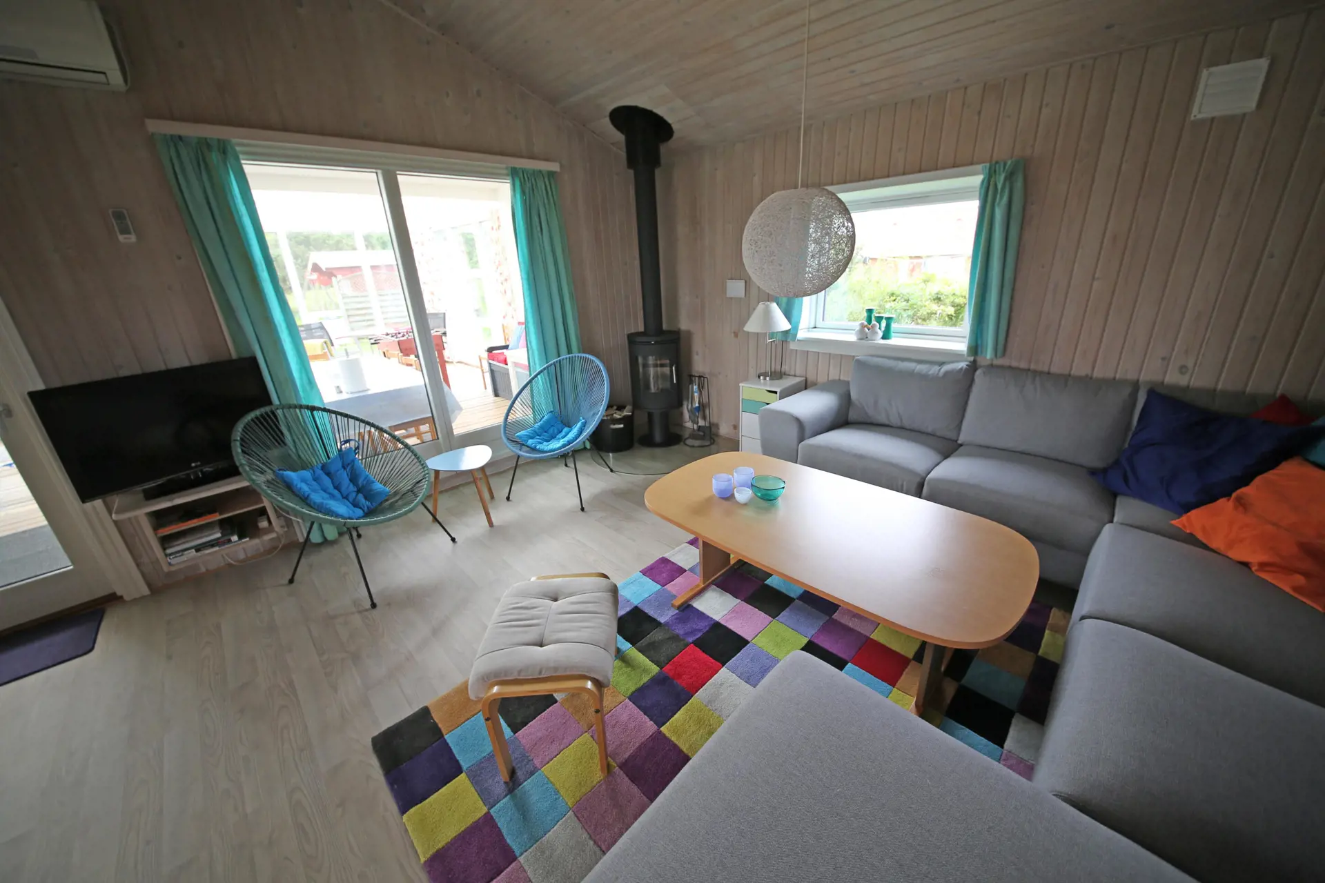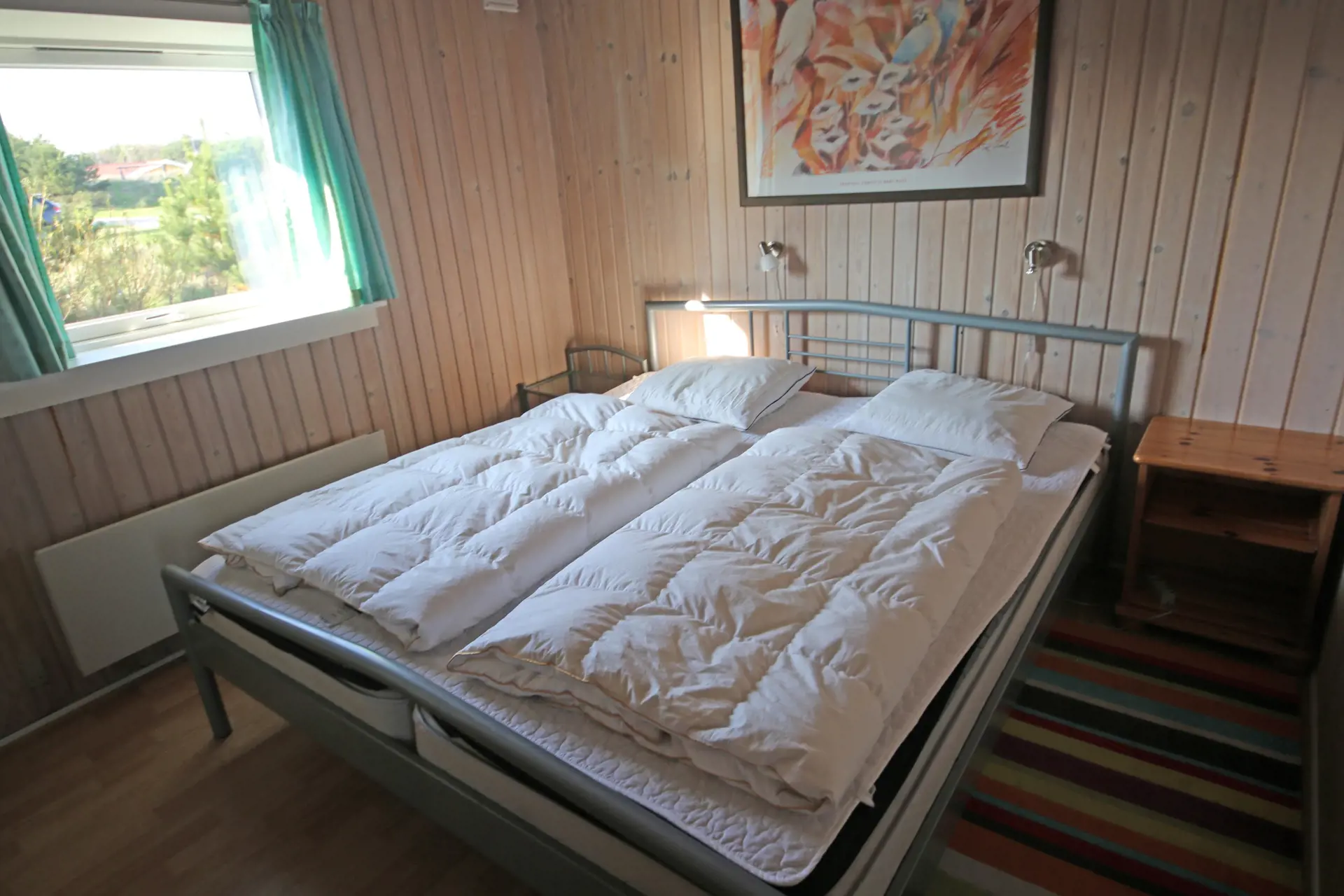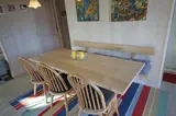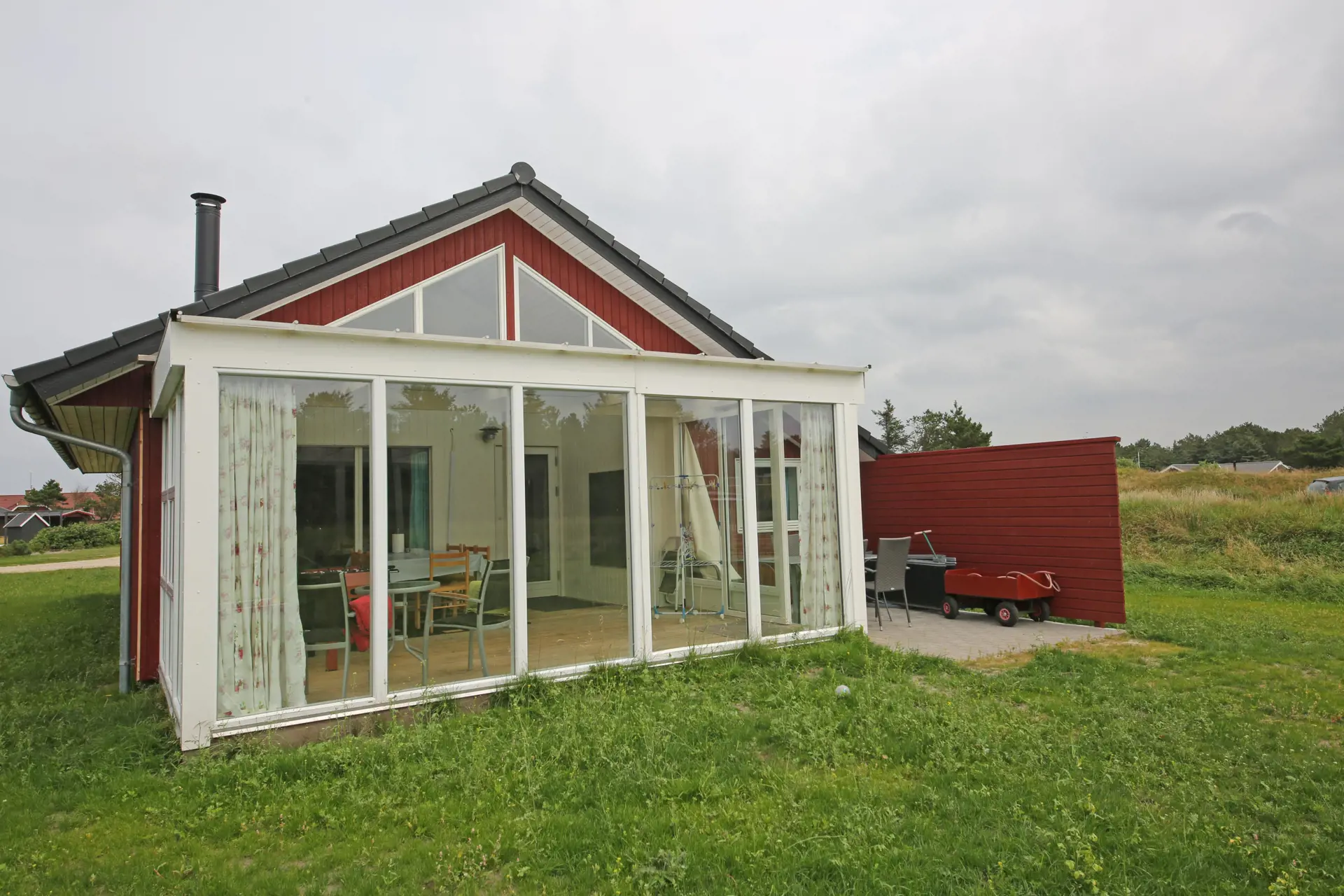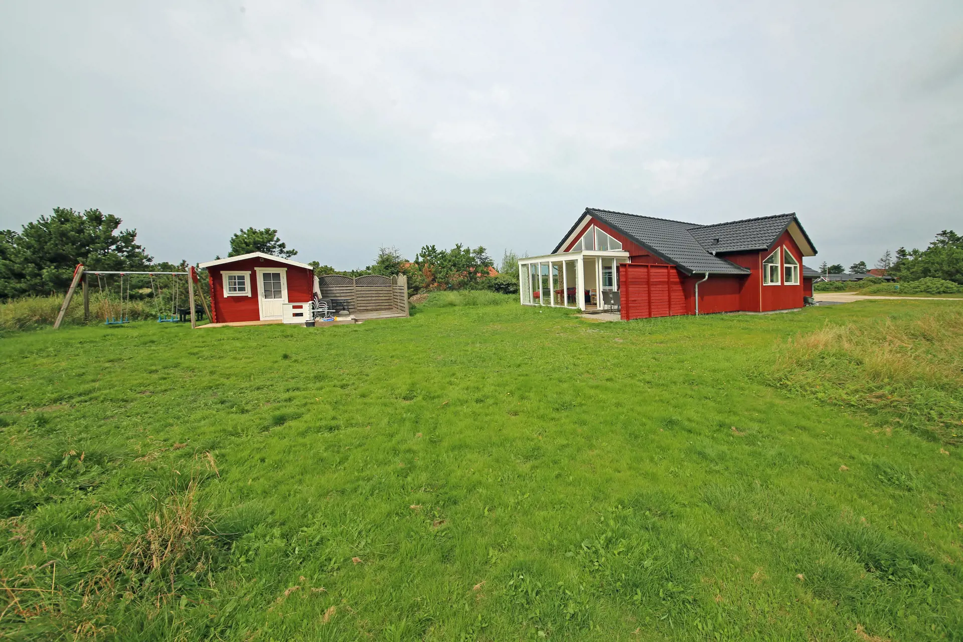 Flottes neu renoviertes Ferienhaus auf einem großen freien Rasengrundstück gelegen. Das Ferienhaus ist für 4 Personen ausgestattet. Der Strand ist ca. 1 Km vom Ferienhaus entfernt. Der komplette Fußbodenbereich, außer im Bad und im Eingangsbereich, da sind Fliesen verlegt, ist mit einem hellen Laminatboden ausgelegt. Der Wohnbereich ist zum Essbereich hin offen gehalten und vom Essbereich aus gelangen Sie in den großen Küchenbereich. Der Kamin ist in einer Ecke im Wohnzimmer aufgestellt. Es befindet sich eine Warmepumpe im Ferienhaus. Mit dieser Warmepumpe haben sie die Möglichkeit die Stromkosten zu senken, denn die Warmepumpe ist energiesparend. Das deutsche Fernsehprogramm empfangen Sie über Stofa, daher sind es nur 5-8 Kanäle die Sie empfangen können. Der große Küchenbereich lädt zum Kochen ein. Die Küche verfügt über ein Herd mit Cerankochfeld, einem Backofen, einer Geschirrspülmaschine, einer Mikrowelle und einer Kühl und Gefrierkombination. Ein kleiner Vorratsraum steht Ihnen auch zur Verfügung. Das Badezimmer ist mit einem WC, einem Handwaschbecken und einer Dusche ausgestattet. Die Waschmaschine ist hier im Badezimmer untergebracht. Es stehen den Gästen zwei Schlafzimmer bereit: DB + 2B. Das eine Schlafzimmer verfügt über ein Doppelbett und das Andere über zwei Einzelbetten. Der großzügige Wintergarten, der vom Wohnbereich aus erreichbar ist, gibt Ihnen die Möglichkeit einfach mal zu relaxen oder gemütlich Ihr Buch zu lesen. Durch die große Fensterfront ist der Wintergarten licht durchflutet. Der Eingangsbereich von außen ist überdacht. In dem schönen Eingangsbereich/Vorraum ist genügend Platz für Jacken und Schuhe. Zwei Terrassenbereiche stehen Ihnen auch zur Verfügung. Für die kleinen Gäste steht ein Schaukelstativ und eine Sandkiste bereit. Das Ferienhaus verfügt über einen Internetanschluss (W-Lan). Es sind max. drei Haustiere erlaubt. Das Rauchen ist nicht gestattet. Das Ferienhaus ist in 1990 erbaut worden und in 2015 renoviert. Deweiteren hat das Ferienhaus einen Anschluss für El-Fahrzeuge.