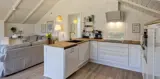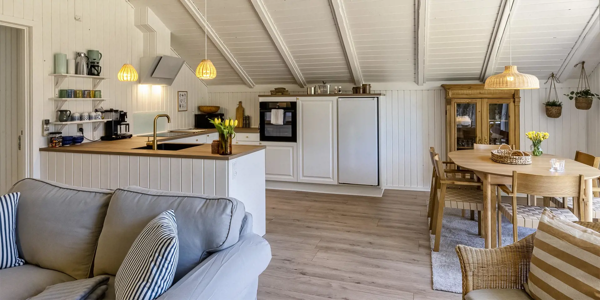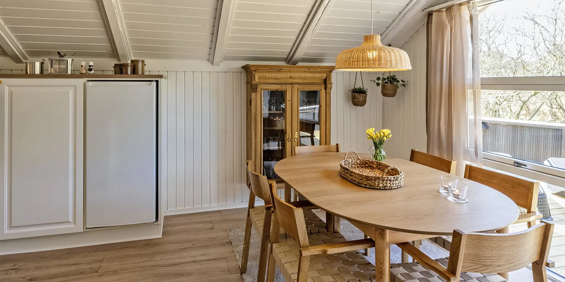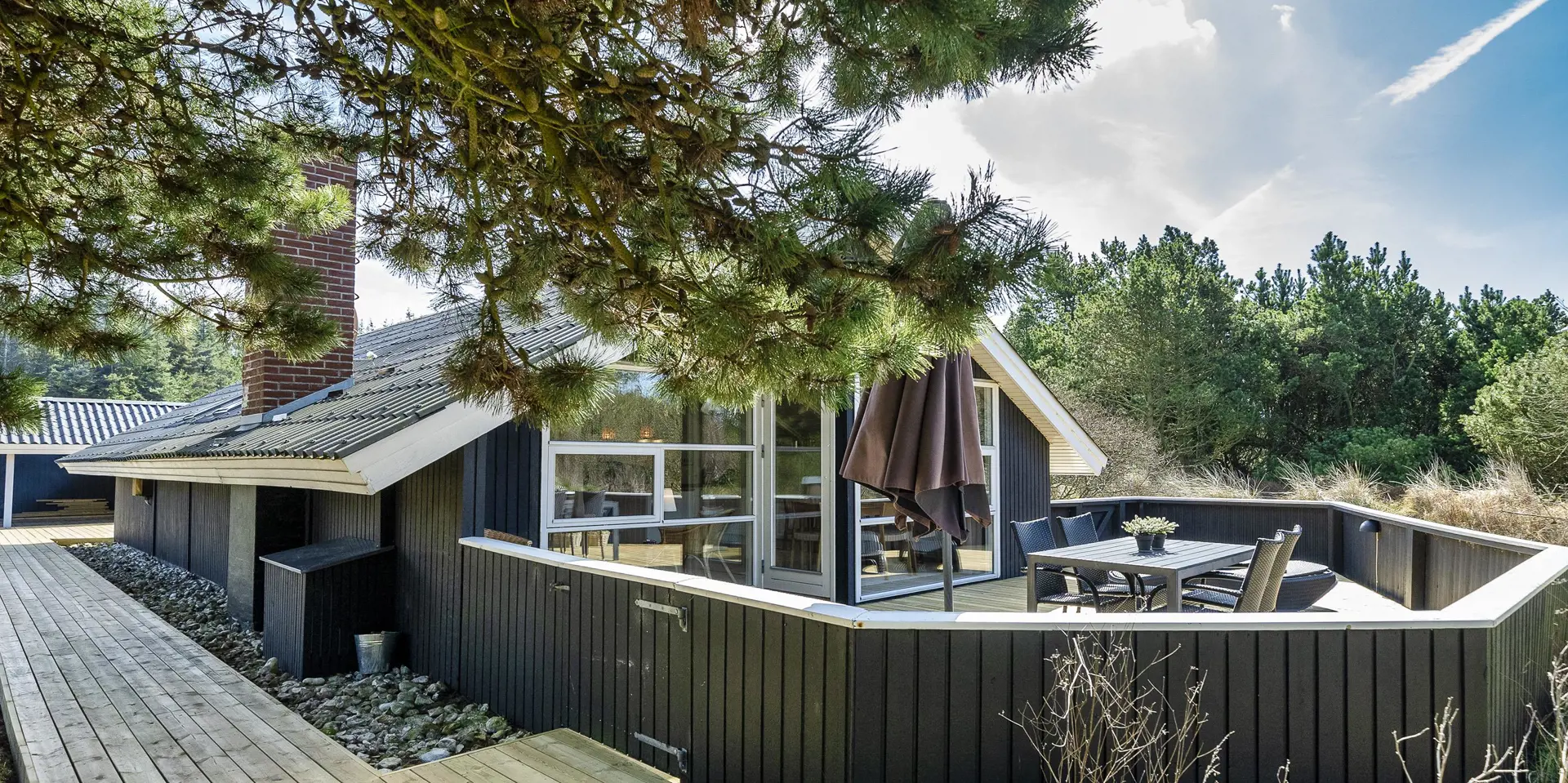 Gemütliches und neurenoviertes Ferienhaus auf einem Naturgrundstück und am Ende einer Sackgasse gelegen, angrenzend zum Waldrand. In der Nähe gibt es einen Fußweg der von Vejers Strand nach Grærup Strand führt. Dort haben Sie keinen Autoverkehr und können ganz gemütlich spazieren gehen. Das Ferienhaus ist für 6 Personen ausgestattet. Der Strand liegt etwa 1 Km vom Ferienhaus entfernt. Der Wohnbereich ist mit dem Essbereich und der Küche offen gehalten. Der Kamin ist eingemauert und strahlt eine angenehme Wärme aus. Es befindet sich eine Warmepumpe im Ferienhaus. Mit dieser Warmepumpe haben sie die Möglichkeit die Stromkosten zu senken, denn die Warmepumpe ist energiesparend. Das deutsche Fernsehprogramm empfangen Sie über eine Parabolantenne. Chromecast. Die Küche ist ausgestattet mit einem Herd mit Cerankochfeld, einem Backofen in Arbeitshöhe, einer Geschirrspülmaschine, einer Mikrowelle und einem Kühlschrank mit einem kleinen Gefrierfach. Das Badezimmer verfügt über ein WC, ein Handwaschbecken, eine Dusche und eine Sauna. Die Waschmaschine ist hier auch im Badezimmer untergebracht. Insgesamt stehen den Gästen drei Schlafzimmer zur Verfügung: DB + DB + 2B. Das Eine Schlafzimmer ist mit einem Doppelbett ausgestattet, ein weiteres mit zwei Einzelbetten und das Letzte auch mit einem Doppelbett. Das Ferienhaus verfügt über einen Internetanschluss (W-Lan). Für die kleinen Gäste stehen ein Schaukelstativ und ein Trampolin auf dem Grundstück bereit. Der Eingangsbereich ist überdacht. Es zwei Haustiere erlaubt. Der Terrassenbereich ist geschlossen und ein kleiner Bereich direkt am Ferienhaus sogar überdacht. Hier können Sie Ihren Vierbeiner mal Luft schnappen lassen, ohne das sie gleich stiften gehen können. Für Ihr Fahrzeug steht ein Carport auf dem Grundstück parat. Das Rauchen ist nicht gestattet. Das Ferienhaus it 1974 erbaut worden und in 2023 renoviert.