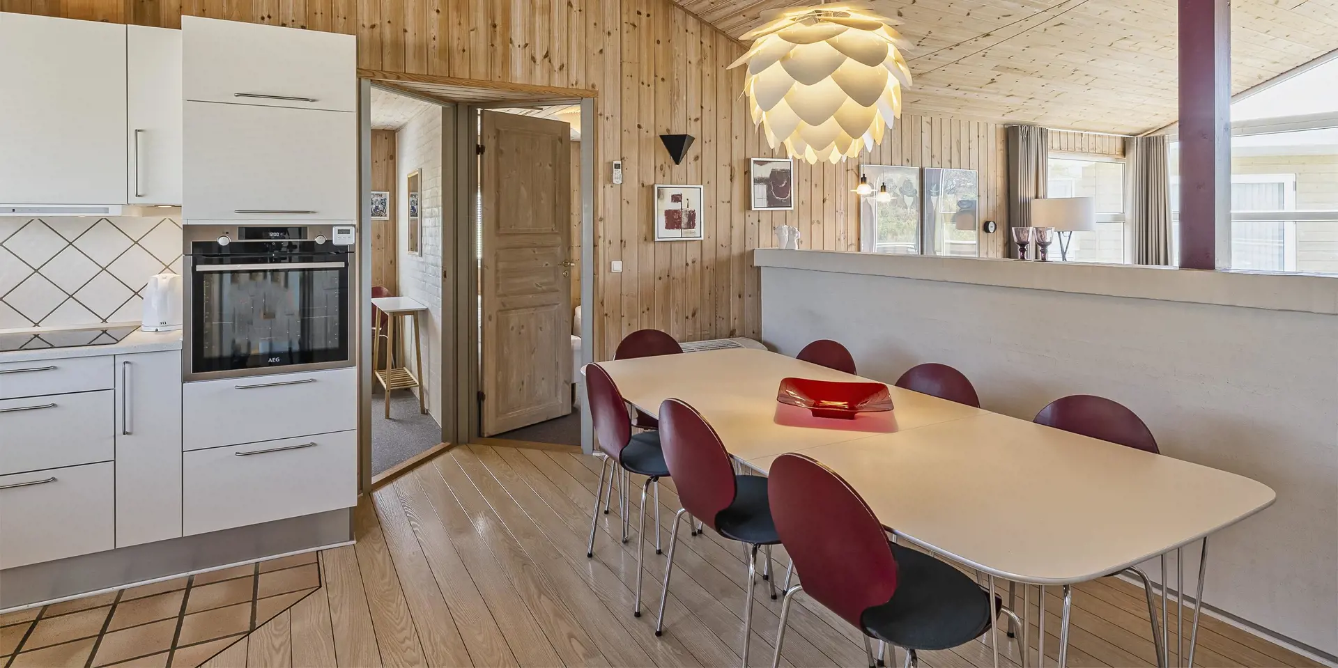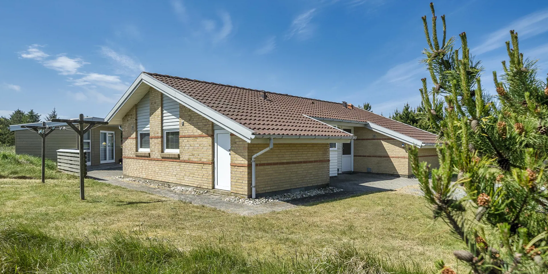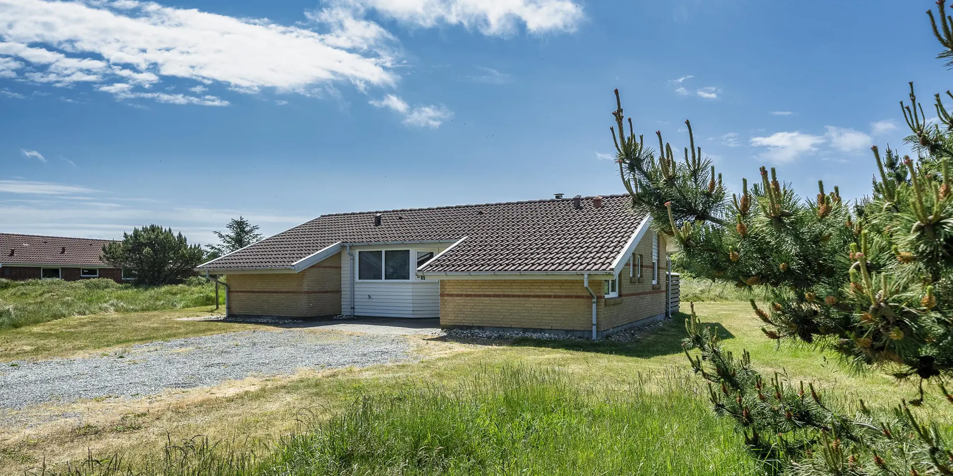 Flott eingerichtetes Ferienhaus auf einem großen naturbelassenem Rasengrundstück gelegen. Das Ferienhaus ist für 6 Personen ausgestattet. Der Strand ist etwa 1 Km vom Haus entfernt. Das Wohnzimmer verfügt über eine gemütliche Rundsitzecke und der Kamin ist hier auch untergebracht. Er gibt eine angenehme Wärme ab und man fühlt dann gleich diese tolle Gemütlichkeit. Es befindet sich eine Warmepumpe im Ferienhaus. Mit dieser Warmepumpe haben sie die Möglichkeit die Stromkosten zu senken, denn die Warmepumpe ist energiesparend. Das deutsche Fernsehprogramm empfangen Sie über Stofa, daher sind es nur 5-8 Kanäle die Sie empfangen können. Smart-Tv. Die neue Küche dient als Wohnküche, denn hier ist der Speiseplatz mit integriert. Die Küche verfügt über einen Herd mit Cerankochfeld, einem Backofen, einer Geschirrspülmaschine, einer Mikrowelle und einer Kühl- und Gefrierkombination. Das große Badezimmer hat ein WC, ein Handwaschbecken, eine Dusche und einen Whirlpool. Hier in dem großen Badezimmer sind die Waschmaschine und der Trockner untergebracht. Ein weiteres kleines neues Badezimmer hat von einem Schlafzimmer aus einen Zugang und ist mit einem WC, einem Handwaschbecken und einer Dusche ausgestattet. Insgesamt stehen den Gästen drei Schlafzimmer zur Verfügung: DB + DB + 2B. Zwei der Schlafzimmer sind mit je einem Doppelbett ausgestattet und das Dritte verfügt über zwei Einzelbetten. Das Ferienhaus hat einen Internetanschluss (W-Lan). Ein schöner Terrassenbereich steht Ihnen am Ferienhaus zur Verfügung (Teilweise geschlossen).Rauchen und Haustiere sind nicht erlaubt. Zusätzlich befindet sich ein Anschluss am Ferienhaus für El-Fahrzeuge. Gratis Eintritt für das Golf in Ho bei Blåvand für 2025. Das Ferienhaus ist 1994 erbaut worden. Renoviert 2018/2019.