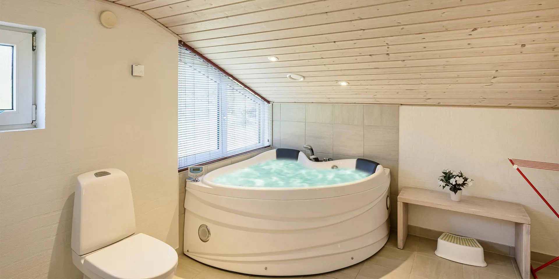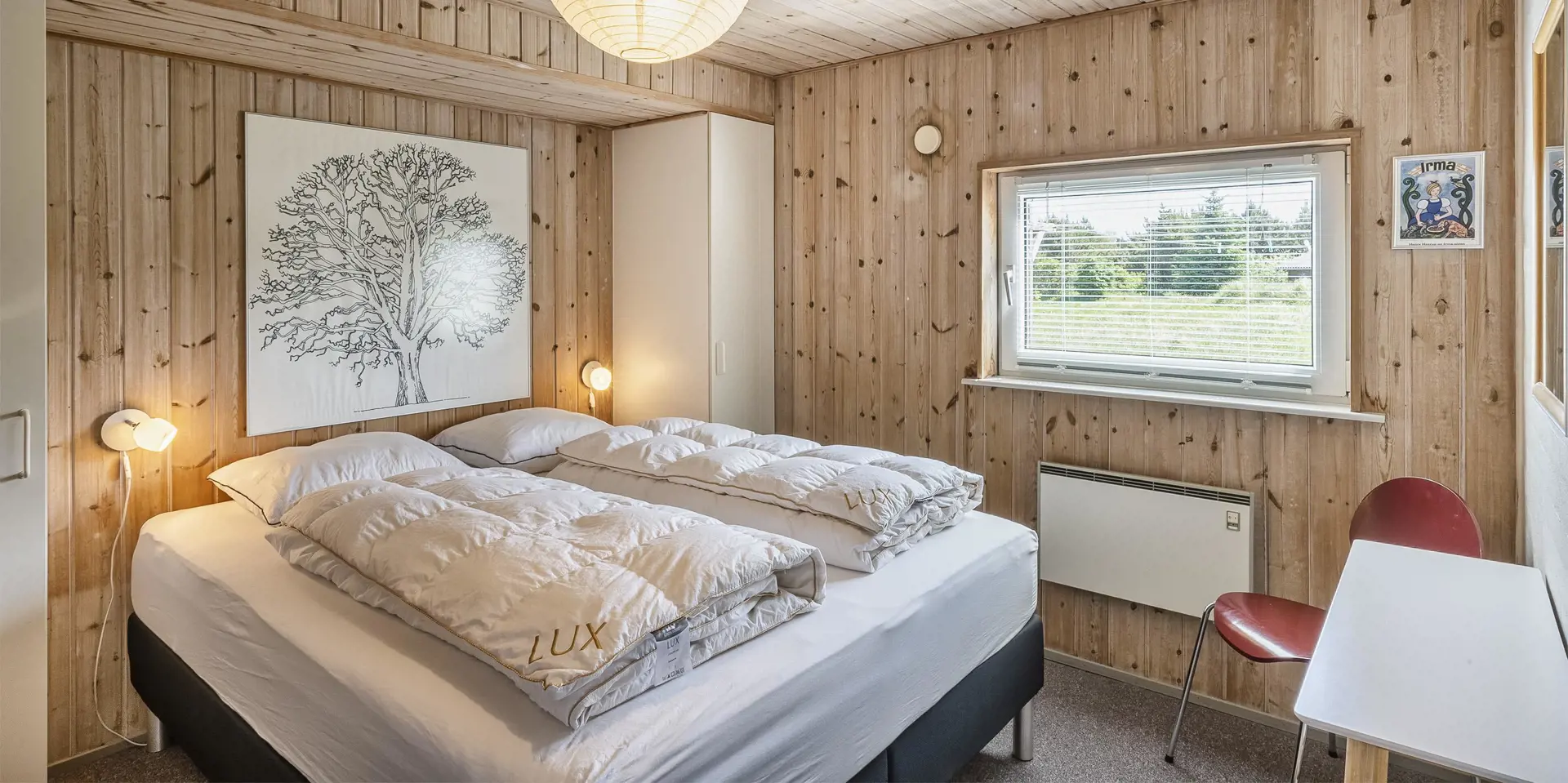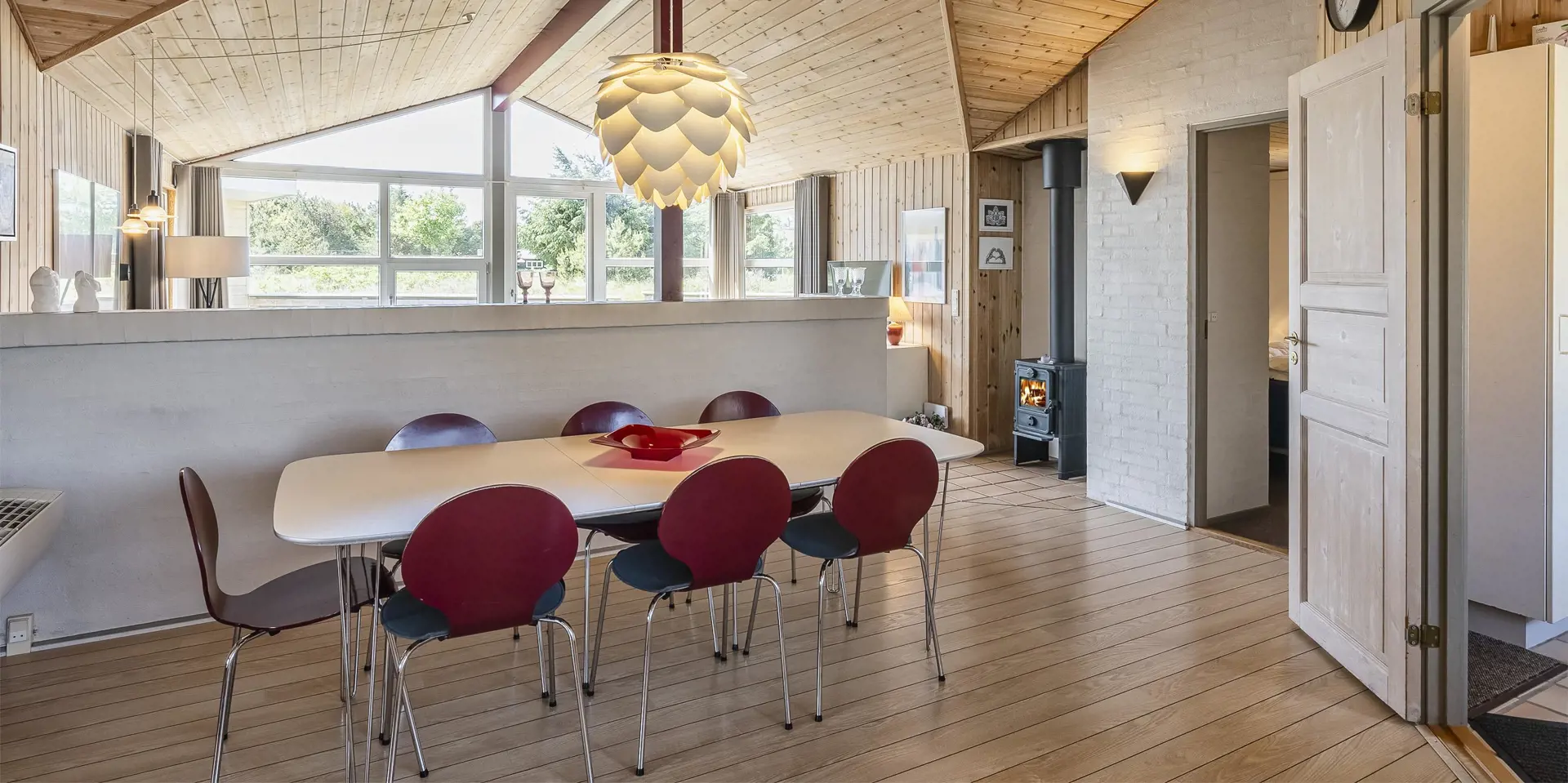 Flott eingerichtetes Ferienhaus auf einem großen naturbelassenem Rasengrundstück gelegen. Das Ferienhaus ist für 6 Personen ausgestattet. Der Strand ist etwa 1 Km vom Haus entfernt. Das Wohnzimmer verfügt über eine gemütliche Rundsitzecke und der Kamin ist hier auch untergebracht. Er gibt eine angenehme Wärme ab und man fühlt dann gleich diese tolle Gemütlichkeit. Es befindet sich eine Warmepumpe im Ferienhaus. Mit dieser Warmepumpe haben sie die Möglichkeit die Stromkosten zu senken, denn die Warmepumpe ist energiesparend. Das deutsche Fernsehprogramm empfangen Sie über Stofa, daher sind es nur 5-8 Kanäle die Sie empfangen können. Smart-Tv. Die neue Küche dient als Wohnküche, denn hier ist der Speiseplatz mit integriert. Die Küche verfügt über einen Herd mit Cerankochfeld, einem Backofen, einer Geschirrspülmaschine, einer Mikrowelle und einer Kühl- und Gefrierkombination. Das große Badezimmer hat ein WC, ein Handwaschbecken, eine Dusche und einen Whirlpool. Hier in dem großen Badezimmer sind die Waschmaschine und der Trockner untergebracht. Ein weiteres kleines neues Badezimmer hat von einem Schlafzimmer aus einen Zugang und ist mit einem WC, einem Handwaschbecken und einer Dusche ausgestattet. Insgesamt stehen den Gästen drei Schlafzimmer zur Verfügung: DB + DB + 2B. Zwei der Schlafzimmer sind mit je einem Doppelbett ausgestattet und das Dritte verfügt über zwei Einzelbetten. Das Ferienhaus hat einen Internetanschluss (W-Lan). Ein schöner Terrassenbereich steht Ihnen am Ferienhaus zur Verfügung (Teilweise geschlossen).Rauchen und Haustiere sind nicht erlaubt. Zusätzlich befindet sich ein Anschluss am Ferienhaus für El-Fahrzeuge. Gratis Eintritt für das Golf in Ho bei Blåvand für 2025. Das Ferienhaus ist 1994 erbaut worden. Renoviert 2018/2019.