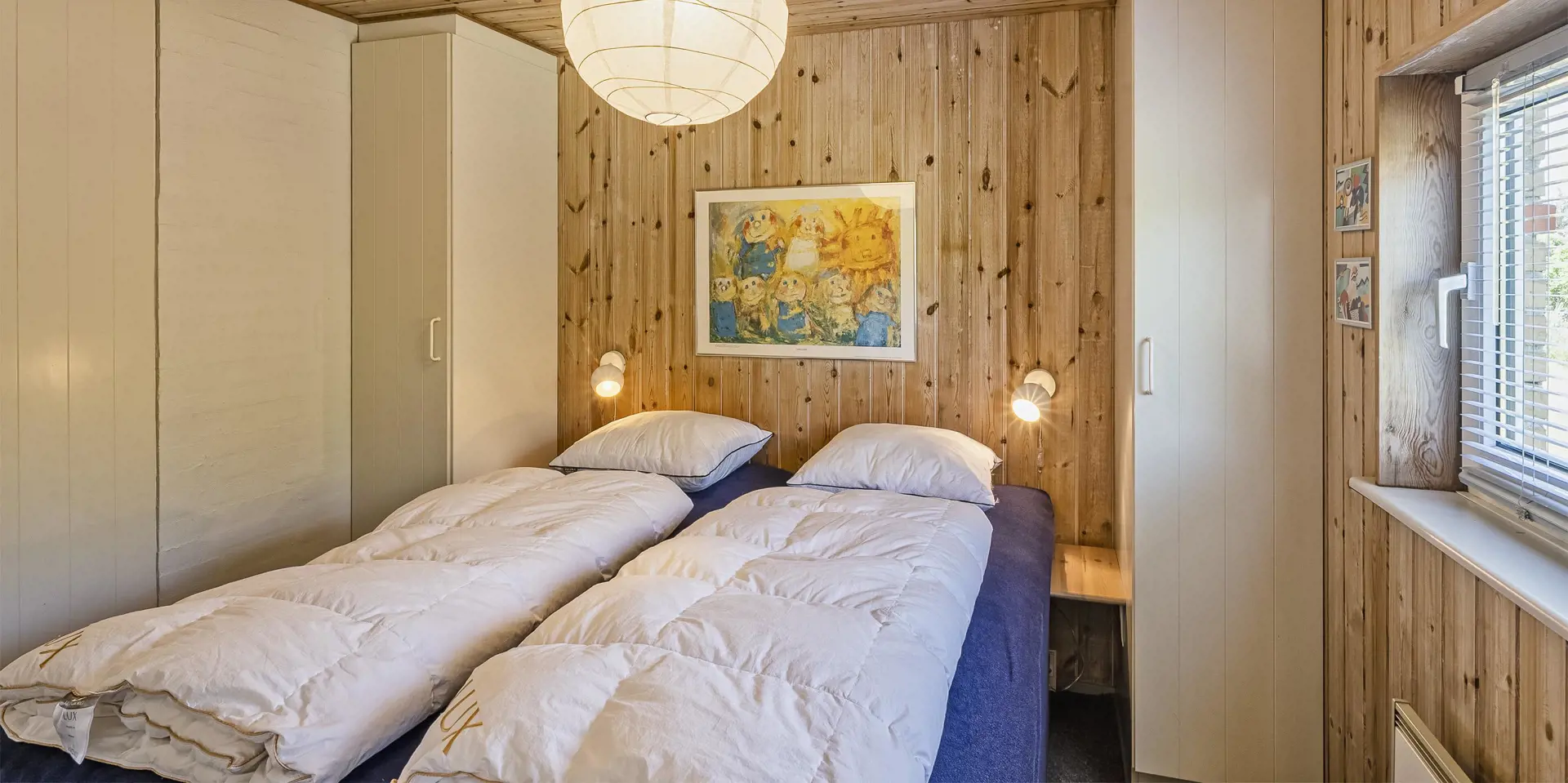 3 Schlafzimmer. 1 mit Doppelbett 180x200 cm. 1 mit Doppelbett 160x200 cm. 1 mit 2 Einzelbetten (je 90x200 cm).