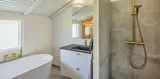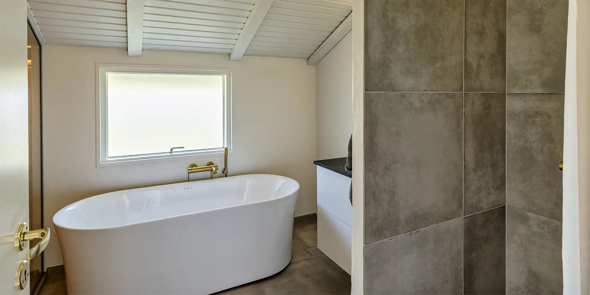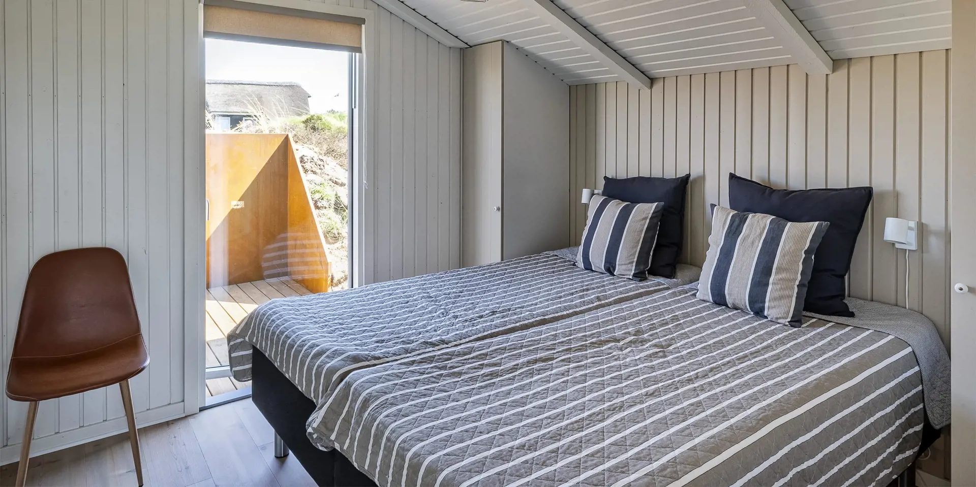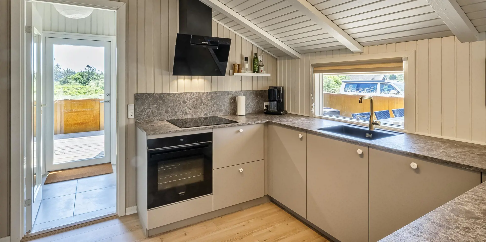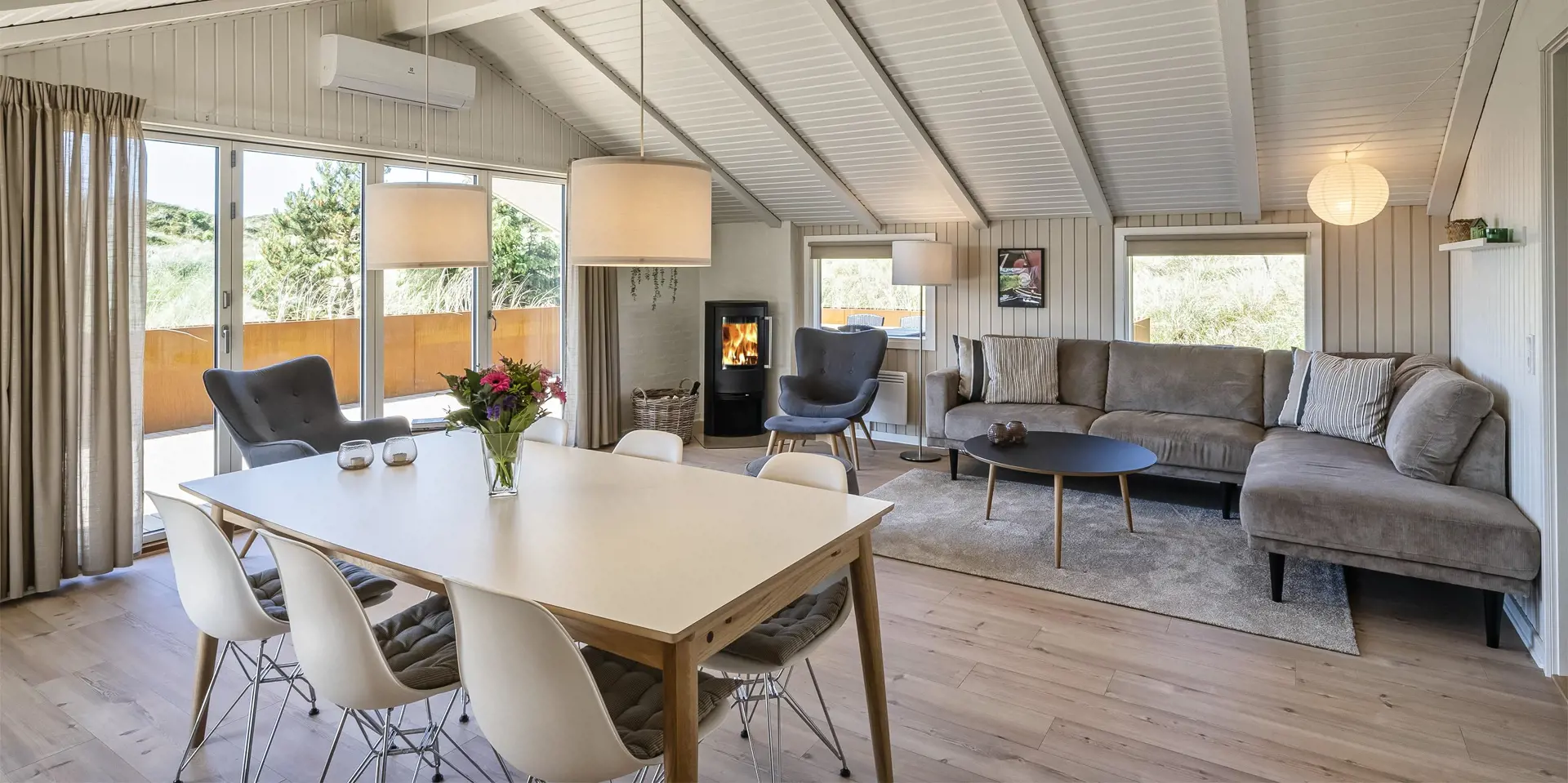 Flottes Ferienhaus auf einem Naturgrundstück und am Ende einer Sackgasse gelegen. Das Ferienhaus ist für 6 Personen ausgestattet und der Strand ist etwa 700 Meter vom Haus entfernt. Der Wohnbereich ist mit dem Essbereich und zum Küchenbereich hin offengehalten. In einer Ecke im Wohnbereich steht der Kamin. Das deutsche Fernsehprogramm empfangen Sie über Stofe ( es gibt ca. 3-5 deutsche Programme). Die Küche ist einfach gehalten aber mit allem ausgestattet, was Sie brauchen; wie zum Beispiel einem Herd mit Cerankochfeld, einem Backofen, einer Geschirrspülmaschine, einer Mikrowelle und einer Kühl- und Gefrierkombination. Das Badezimmer ist mit einem WC, einem Handwaschbecken, einer Dusche, einer Sauna und einer Luxusbadewanne mit integrierter Lichttherapie und Spa-Air-Massage ausgestattet. Desweiteren gibt es eine Fußbodenheizung im Bad. Eine Waschmaschine steht im Hauswirtschaftsraum zur Benutzung bereit. Es stehen den Gästen insgesamt drei Schlafzimmer zur Verfügung. Drei Schlafzimmer mit guten Betten (DB + DB + 2EB). Ein Schlafzimmer mit zwei Einzelbetten und die beiden anderen Schlafzimmer mit je einem Doppelbett. Es befindet sich eine Wärmepumpe im Ferienhaus. Mit dieser Wärmepumpe haben Sie die Möglichkeit die Stromkosten zu senken, da sie energiesparend ist. Der schöne neue Terrassenbereich ist großzügig gehalten und geschlossen, mit tollen Blumenkästen umgeben und bietet gute windgeschützte Ecken. Es sind keinei Haustiere erlaubt. Das Ferienhaus verfügt über einen Internetanschluss (W-Lan). Die Gäste müssen selber für Gas sorgen, wenn die Gasflasche für den Grill leer ist. Das Ferienhaus ist 1987 erbaut worden und in 2024 einer totalen Renovierung unterzogen worden.