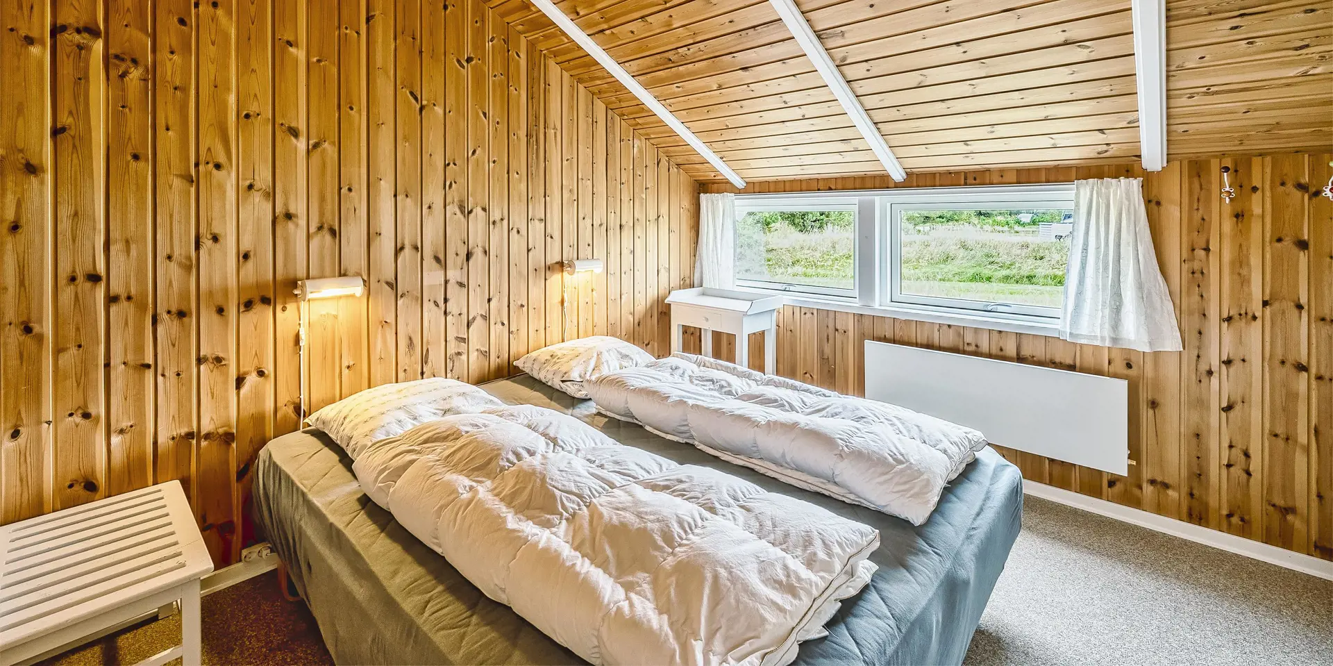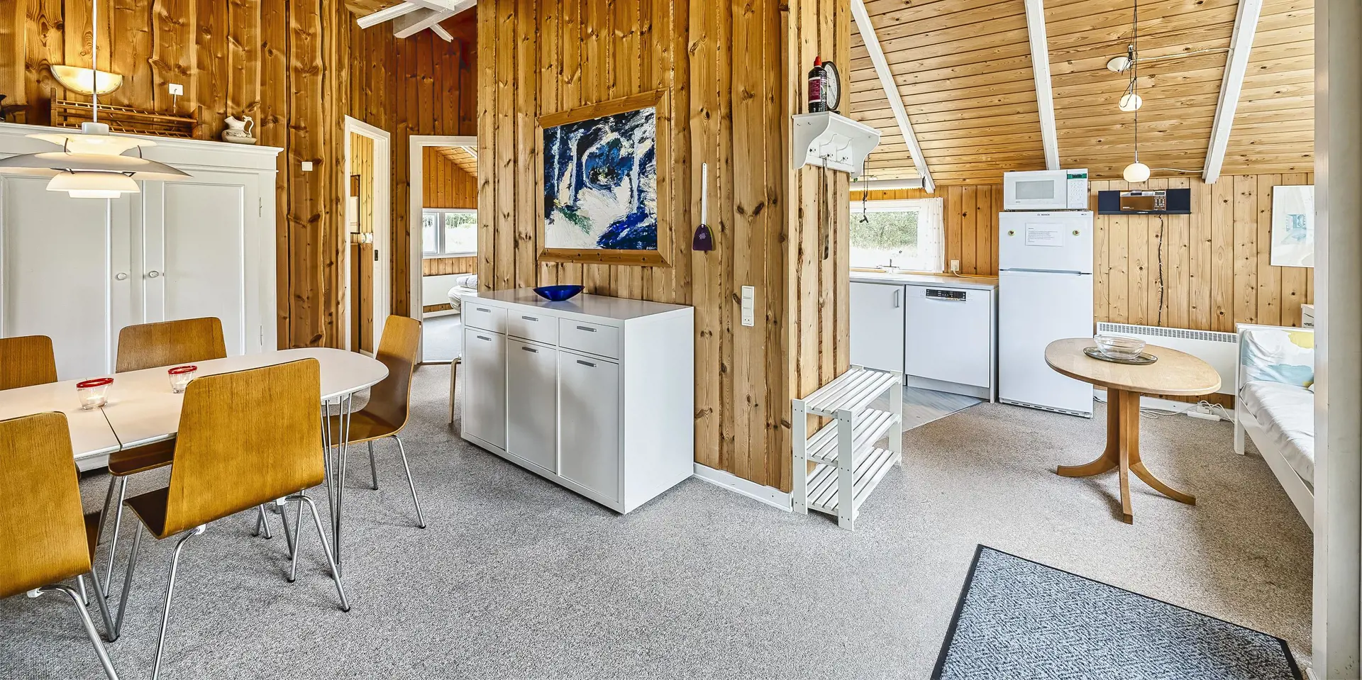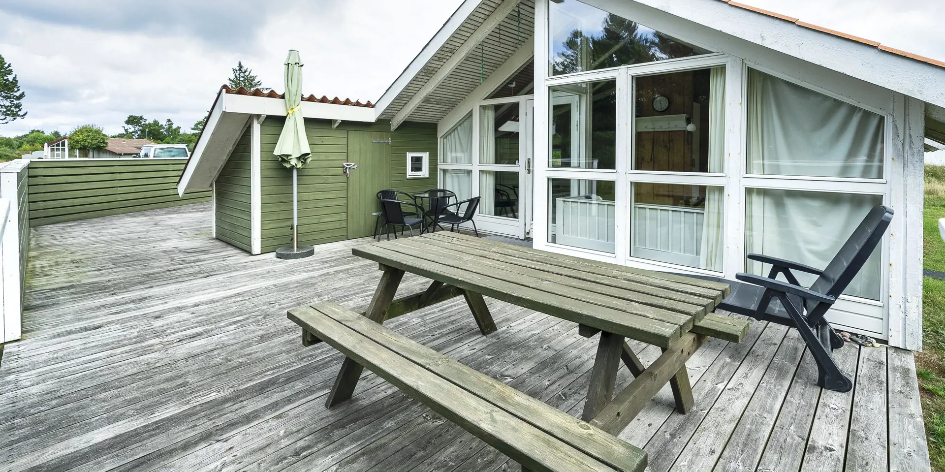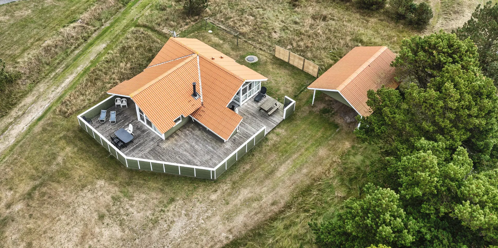 Kleines gemütliches und einfaches Ferienhaus auf einem großen, offenen und naturbelassenem Rasengrundstück gelegen. Das Ferienhaus ist ausgestattet für 6 Personen und der Strand ist ca. 1,2 Km vom Haus entfernt. Der Wohnbereich verfügt über einen Kamin und in einer Ecke ist ein kleiner Alkoven, eine sogenannte Kuschelnische. Hier können sie sich zurückziehen und ein kleines Nickerchen halten. Das deutsche Fernsehprogramm empfangen Sie über eine Parabolantenne, Internetanschluss (W-Lan), DVD-Abspielgerät und Radio sind ebenfalls vorhanden. Die Küche ist zum Ess- und Wohnzimmer hin offen gehalten. Sie verfügt über einen Herd mit Kochplatten, einem Backofen, eine Mikrowelle, einer Geschirrspülmaschine und einer Kühl- und Gefrierkombination. Das Badezimmer ist mit einem WC, einem Handwaschbecken und einer Dusche ausgestattet. Eine Waschmaschine steht im Ferienhaus für die Gäste zur Verfügung. Es sind insgesamt drei Schlafzimmer vorhanden: DB + DB + DB. Zwei davon sind mit je einem Doppelbett ausgestattet und das Dritte Schlafzimmer verfügt über ein 3/4 Doppelbett. Eine grosse Holzterrasse am Ferienhaus bietet genügend Platz für Ihr Sonnenbad oder für einen Grillabend an. Ihr Fahrzeug findet in dem Carport seinen Platz. Es sind keine Katze erlaubt. Rauchen ist nicht erlaubt. Ein kleiner Hund mit die Rückenhöhe von 30 cm ist erlaubt! Das Ferienhaus ist 1991 erbaut worden und in 2009 renoviert.