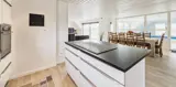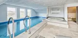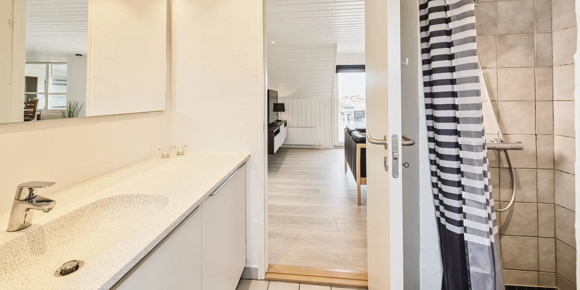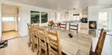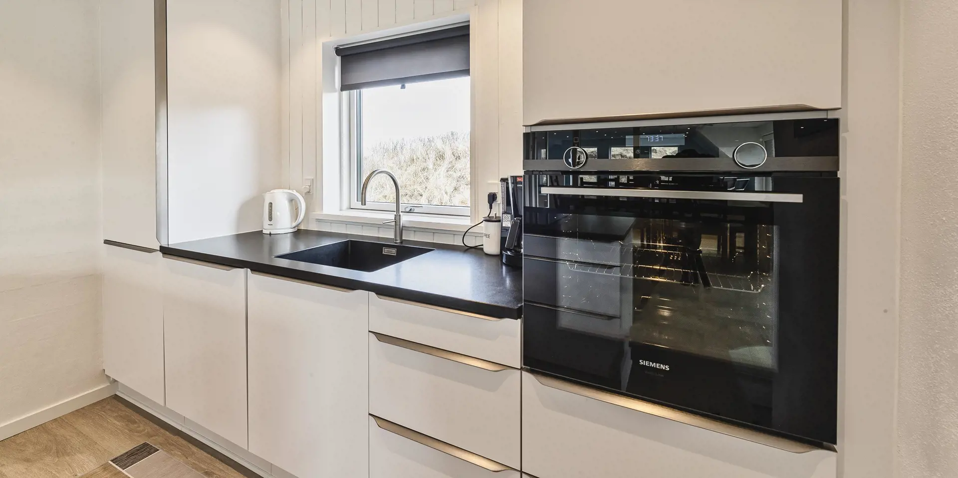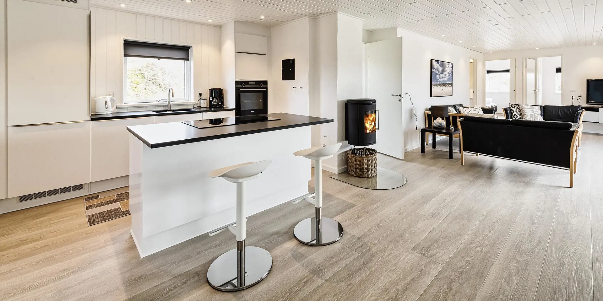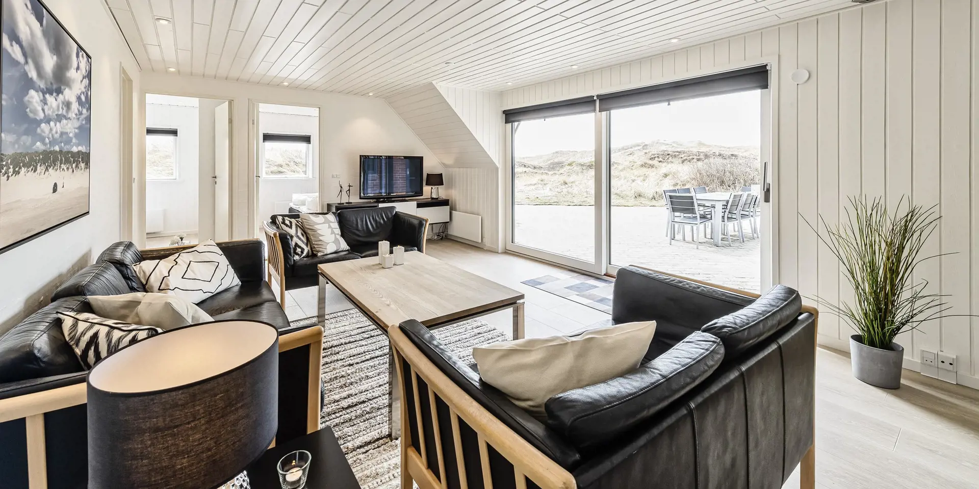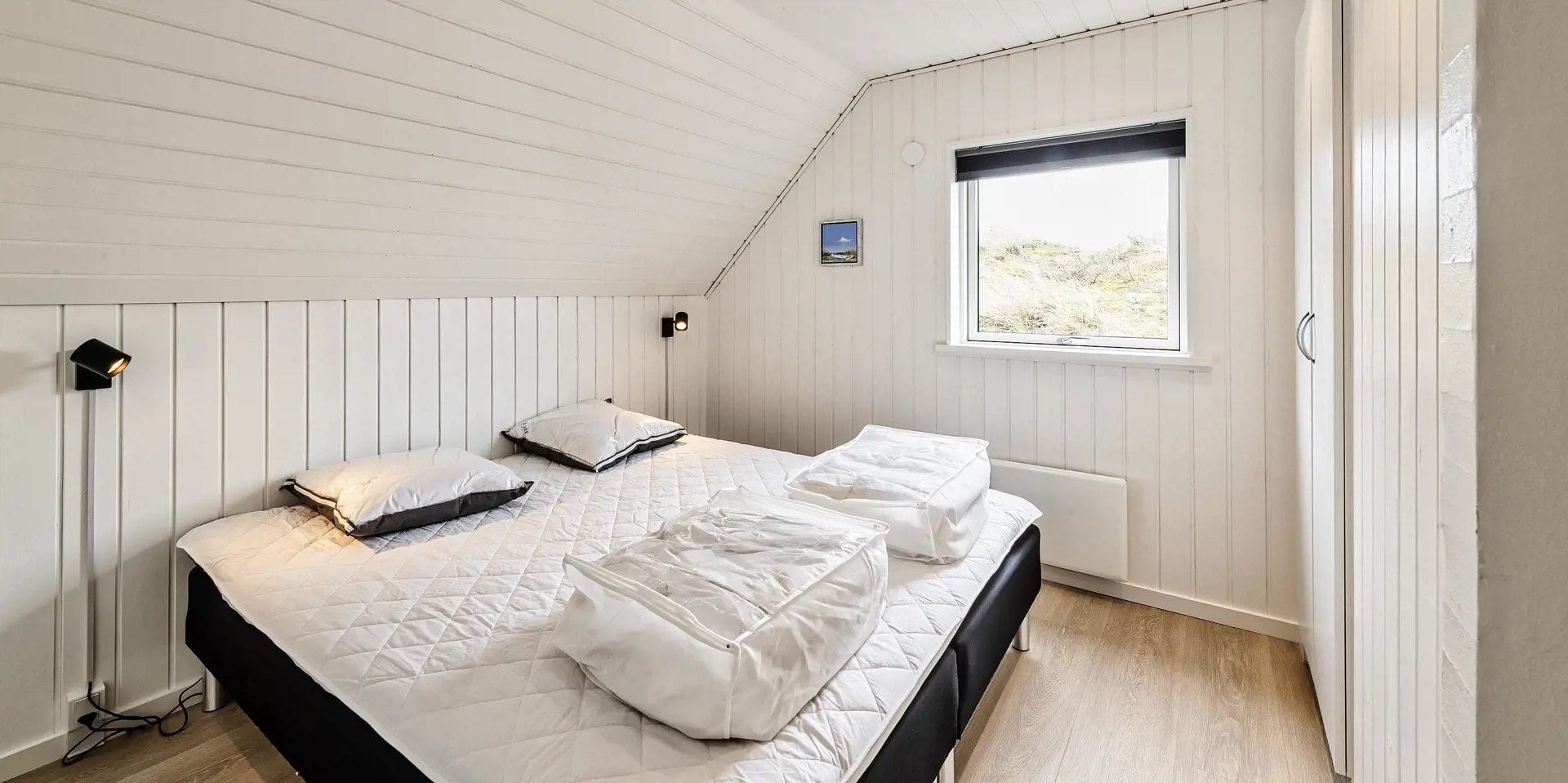 Geschmackvoll und renoviertes Poolhaus für 10 Personen, direkt auf einer Düne gelegen in Mitten einer Dünenkette. Der Bjærgevej in Vejers Strand ist eine bevorzugte Wohngegend, da der Strand sich nur 100 Meter (Dünenweg) vom Haus befindet. Das Ferienhaus ist in L-Form und in der Mitte befindet sich eine schöne gräumige Steinterrasse. Auf den zwei schönen Sonnenliegen können Sie dann den Tag geniessen. Der Wohn- und Essbreich ist mit einem schönen und hellem Lamit ausgestattet, ebenso der Küchenbereich und die Schlafzimmer. Von der gemütlichen Sitzgruppe haben Sie einen direkten Blick auf den Terrassenbereich und die Dünenkette in Richtung Strand. Gegenüber dem Esstisch befindet sich der hängende Kamin. Dieser spendet eine wohlige Wärme und Gemütlichkeit pur. Das Fernsehprogramm empfangen Sie über Stofa, daher stehen nur 5-8 deutsche Kanäle zur Verfügung. Die Essgruppe verfügt über einen grossen Holztisch und Stühle und befindet sich vor der Poolabteilung. Der Poolbereich ist mit einer grossen Fensterfront vom Ferienhaus abgeteilt und zugängig. Der Küchenbereich ist offen und sehr modern eingerichtet. Es gibt eine Kochinsel wo sich der Herd mit Induktionskochfeld und oben an der Decke eine Dunstabzugshaube befindet. Die moderne Einbauküche hat einen Backofen in arbeitshöhe, eine Geschirrspülmaschine, eine Mikrowelle und eine Kühl- und Gefrierkombination (2 Schubladen). Es gibt zwei Bäder im Ferienhaus. Beide verfügen über ein Handwaschbecken, ein WC und eine Dusche. In einem der Bäder sind die Waschmaschine und der Trockner untergebracht. Die Bäder und der Eingangsbereich sind mit Fleisen ausgestattet. In dem Flurbereich befindet sich ein Kleiderschrank. Insgesamt stehen den Gästen fünf Schlafzimmer zur Verfügung: DB + DB + DB + DB + 2B. Vier der Schlafzimmer sind mit je einem Doppelbett ausgesattet und ein Schlafzimmer verfügt über Etagenbetten (Maass 90 x 180). Der Pool hat eine Grösse von ca.7,3 x 3,3 x1,30 Meter (Længe x Breite x Tiefe) und Sie haben einen tollen Ausblick auf die Dünen wenn Sie im Pool schwimmen. Hier in der Poolabteilung befindet sich die Sauna und der Standwasser-Whirlpool ( für ca. 5 Personen) und auch Relaxliegen. Der Standwasser-Whirlpool ist ständig mit Wasser gefüllt und dann sofort bei Anreise betriebsbereit und nutzbar. Einmal die Woche kommt ein Pooltechniker vorbei und kontrolliert den Wert im Pool. Das Ferienhaus verfügt über einen Internetanschluss (W-Lan). Das Haus ist 1993 erbaut worden und in 2021 total von innen renoviert. Es max. ein Haustier erlaubt. Das Rauchen im Ferienhaus ist nicht erlaubt. Eine Parkmöglichkeit direkt am Ferienhaus ist nicht gegeben. Zum Haus gibt es einen direkten Treppenaufgang.