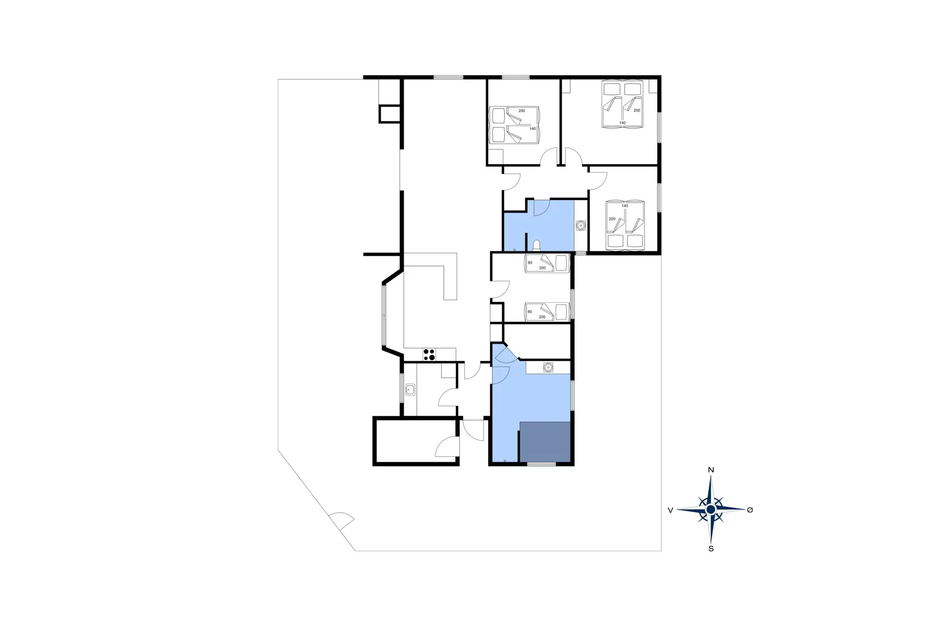 4 Schlafzimmer. 3 mit Doppelbett 180x200 cm. 1 mit 2 Einzelbetten (je 90x200 cm).