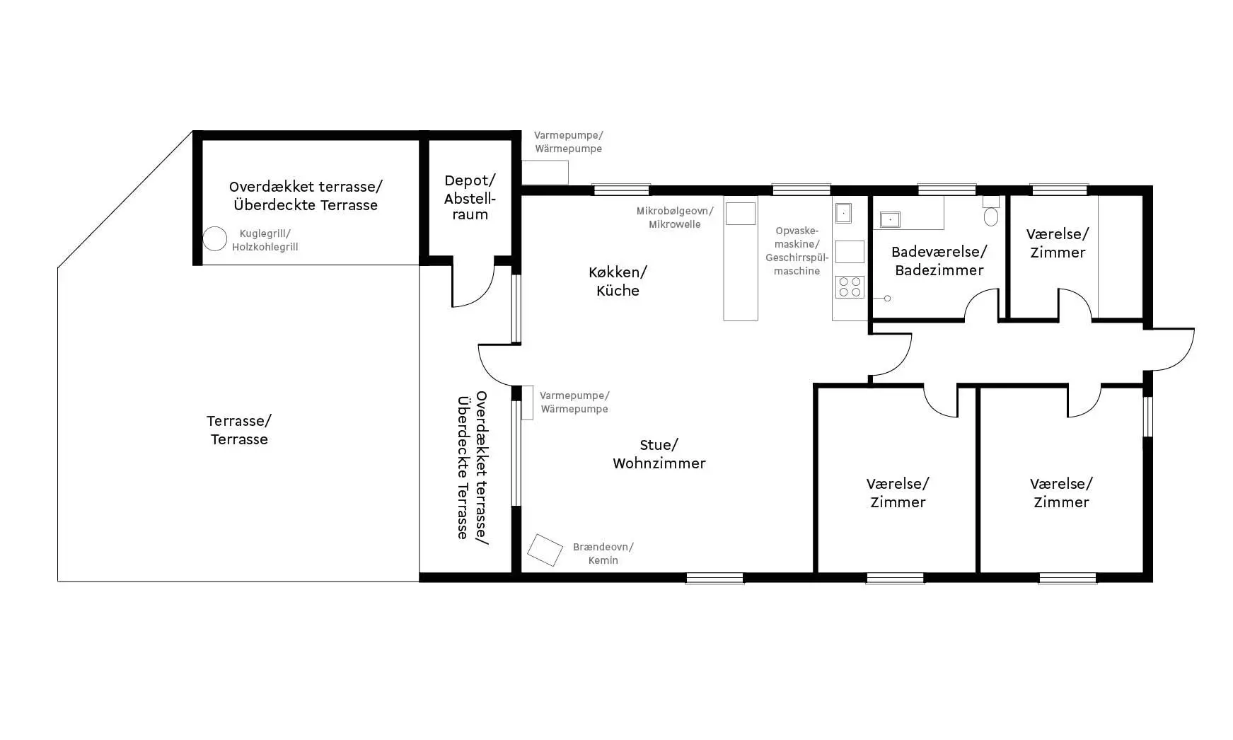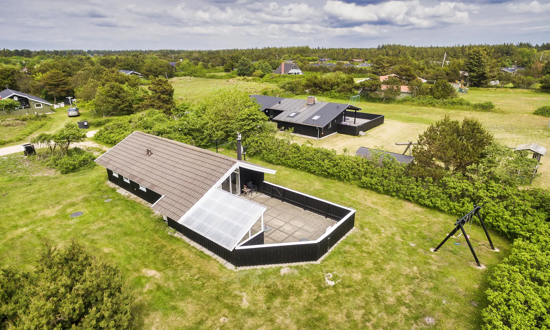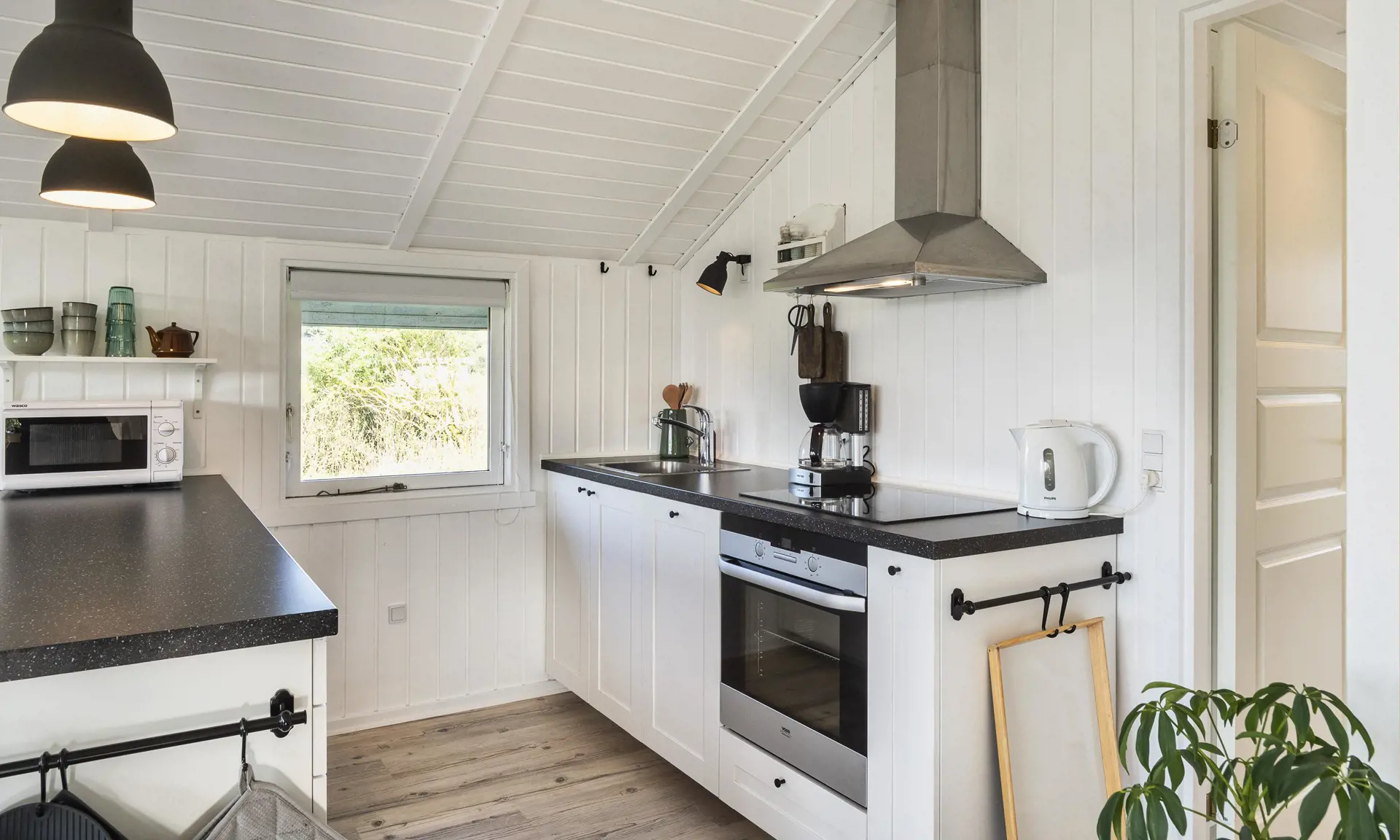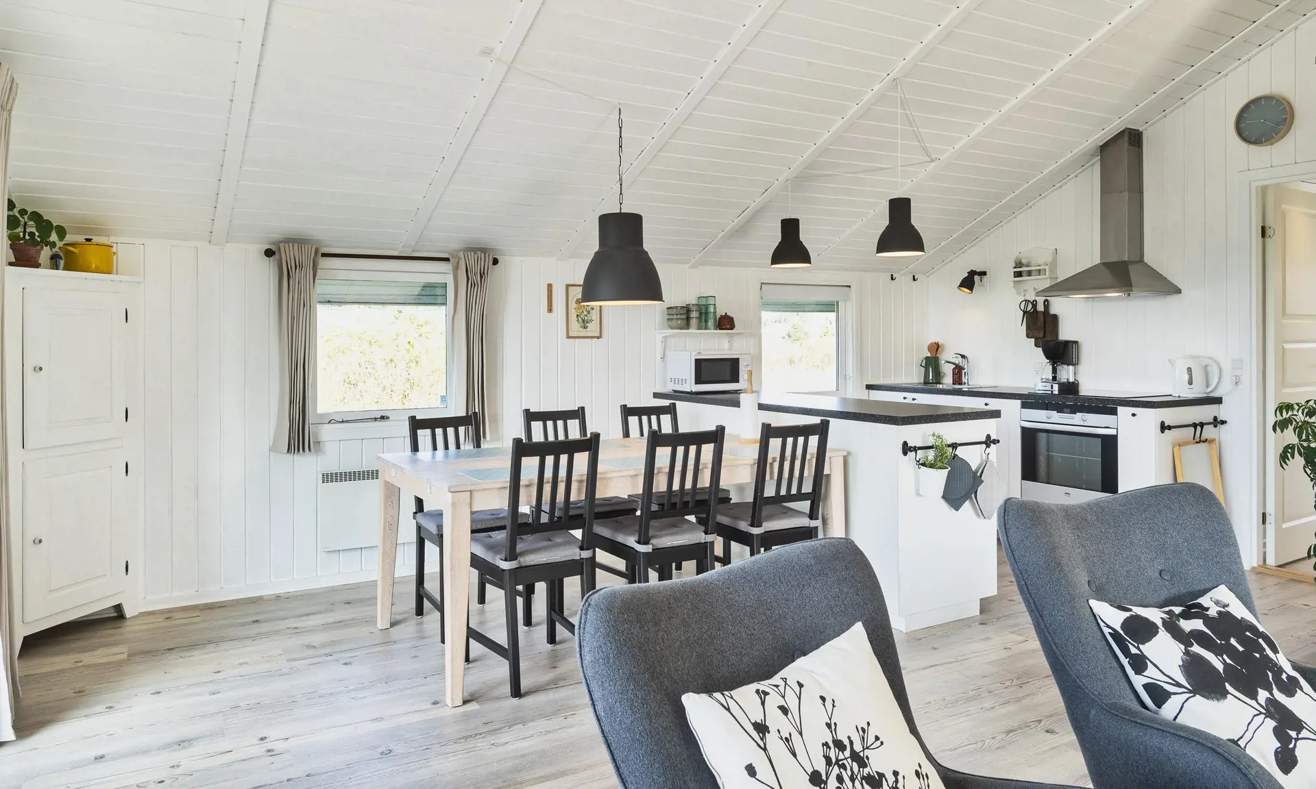 Neurenoviertes nettes Ferienhaus auf einem großen Rasengrundstück gelegen. Das Ferienhaus ist für 6 Personen ausgestattet. Der Strand ist ca. 1 Km vom Ferienhaus entfernt. Der Wohn- und Essbereich ist mit der neue Küche integriert. Dieser gesamte Bereich ist mit einem schönen Laminat verlegt worden. In der einen Ecke im Wohnbereich ist der Kamin, gegenüber der großen Sitzecke, aufgestellt. Es befindet sich eine Warmepumpe im Ferienhaus. Mit dieser Warmepumpe haben sie die Möglichkeit die Stromkosten zu senken, denn die Warmepumpe ist energiesparend. Das deutsche Fernsehprogramm empfangen Sie über eine Parabolantenne. DVD-Player. Die Küche verfügt über einen Herd mit Induktionskochfeld, einem Backofen, einer Mikrowelle, eine Geschirrspüler und einem Kühlschrank mit einem kleinen Gefrierfach. Das Badezimmer ist gefliest und ausgestattet mit Fussbodenheizung, einem WC, einem Handwaschbecken und einer Dusche. Eine Waschmaschine ist hier auch untergebracht. Insgesamt stehen Ihnen drei Schlafzimmer zur Verfügung: DB + 2B + 2B. Ein Schlafzimmer ist mit einem Doppelbett ausgestattet, ein weiteres Schlafzimmer mit zwei Einzelbetten und das Dritte Schlafzimmer verfügt über Etagenbetten. Das Ferienhaus verfügt über einen Internetanschluss (W-Lan). Das Rauchen im Ferienhaus ist nicht erlaubt. Es sind max. zwei Haustiere erlaubt. Der Terrassenbereich ist geschlossen. Schaukel und Kugelgrill(Weber). Hier können die Vierbeiner mal Luft schnappen ohne das sie gleich stiften gehen können. Das Ferienhaus ist 1983 erbaut worden.