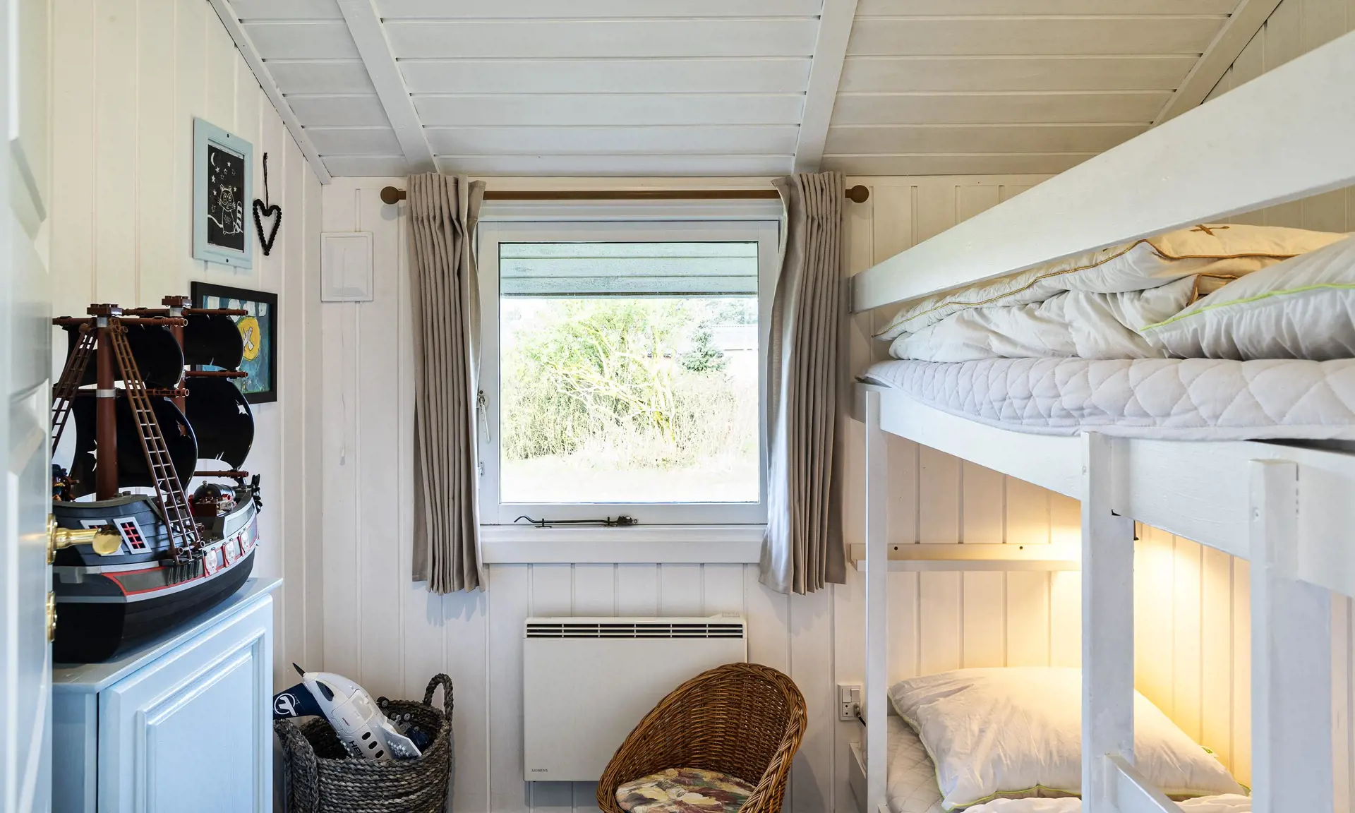 3 Schlafzimmer. 1 mit Doppelbett 180x200 cm. 1 mit 2 Einzelbetten (je 90x200 cm). 1 mit Etagenbett.