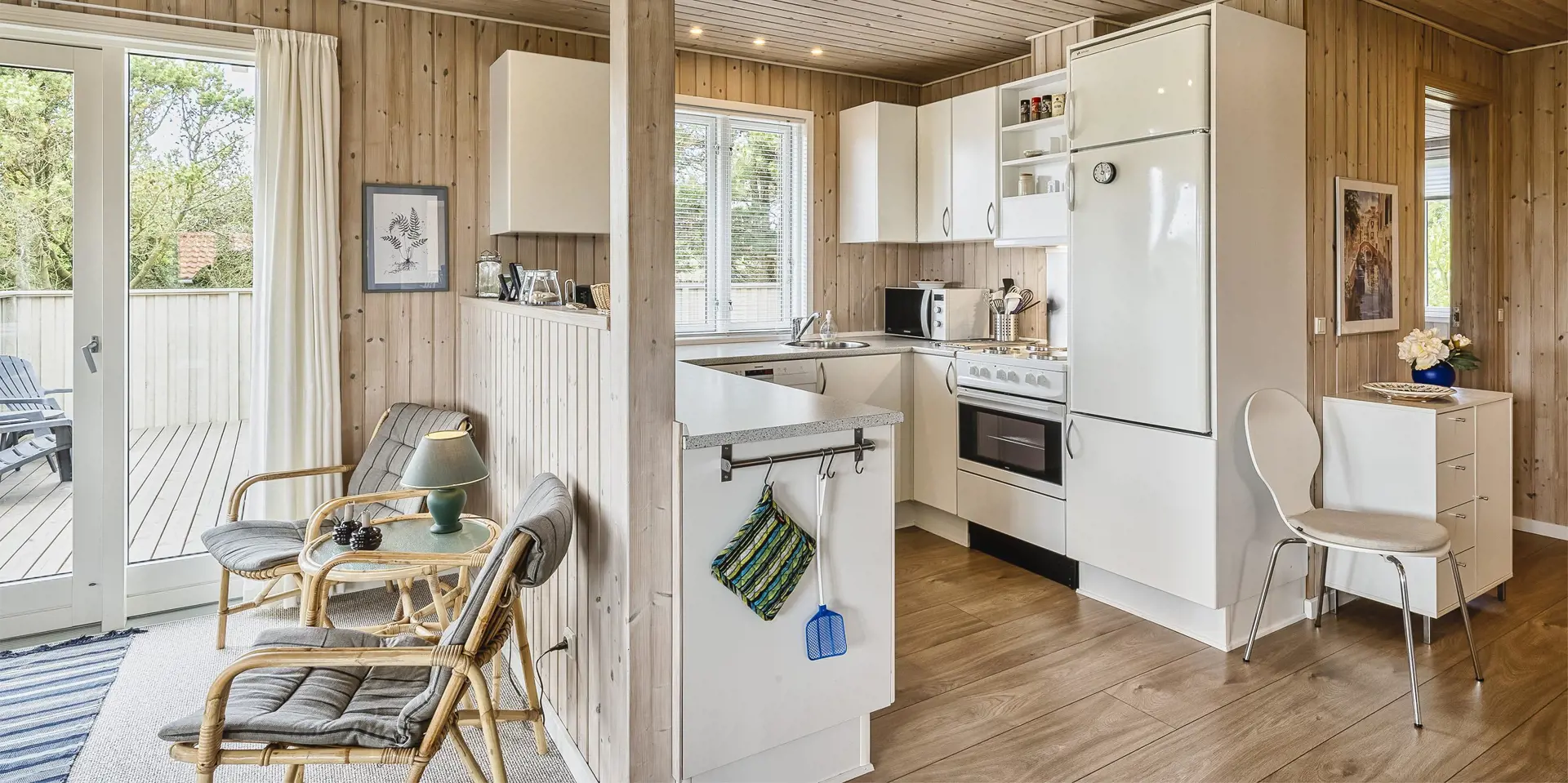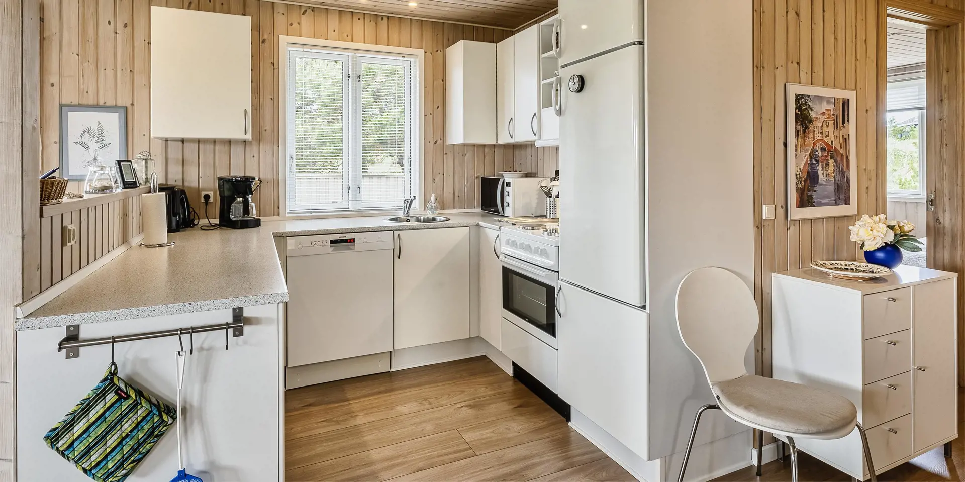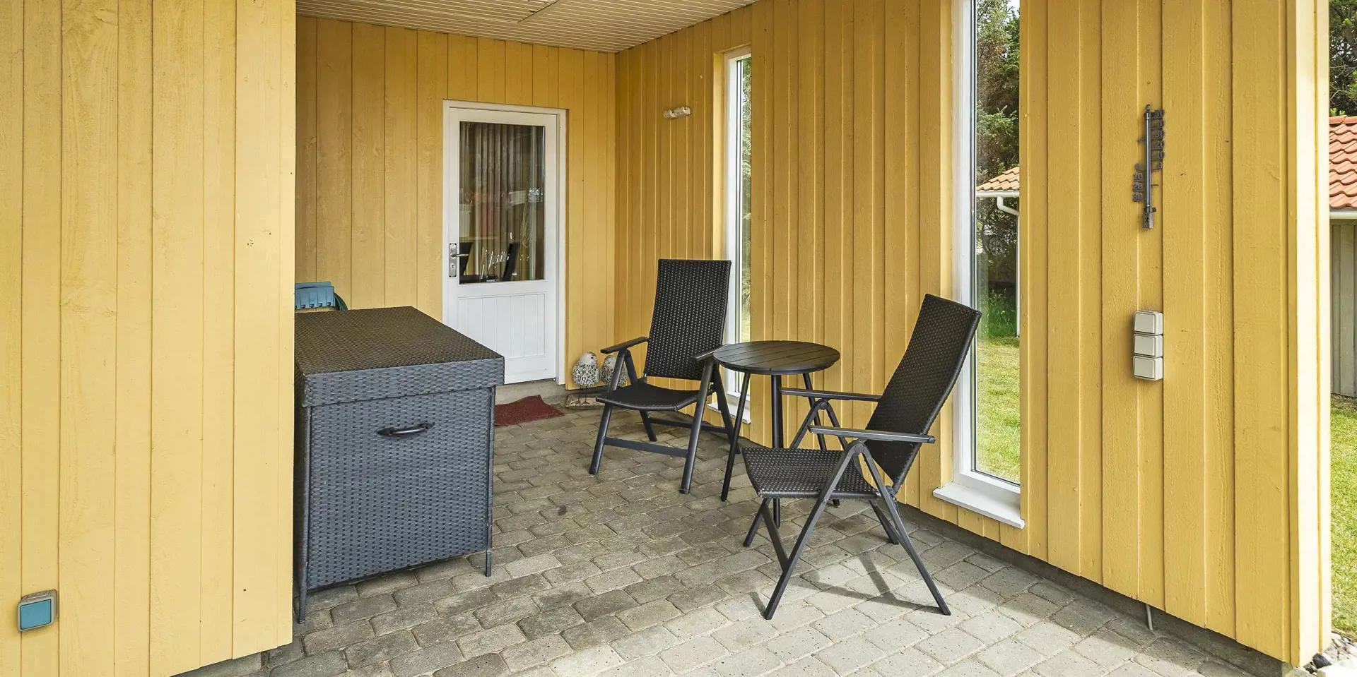 Schönes und gemütliches Ferienhaus auf einem natürlichem Rasengrundstück gelegen. Das Ferienhaus ist für 4 Personen ausgestattet und der Strand ist ca. 500 Meter vom Ferienhaus entfernt. Das Wohnzimmer ist mit einer gemütlichen hellen Sitzgarnitur ausgestattet und verfügt über einen Kamin. Der Speiseplatz ist auch hier im Wohnberich aufgestellt. Das deutsche Fernsehprogramm empfangen Sie über eine Parabolantenne. Ein DVD-Abspielgerät steht den Gästen auch zur Verfügung. Der Küchenbereich ist mit einem Herd mit Kochplatten, einem Backofen, einer Geschirrspülmaschine, einer Mikrowelle und einer Kühl- und Gefrierkombination ausgestattet. Das große Badezimmer verfügt über ein WC, ein Handwaschbecken und eine Dusche. Eine Waschmaschine ist hier im Badezimmer untergebracht. Den Gästen stehen zwei Schlafzimmer zur Verfügung: DB + 2B. Beide Schlafzimmer sind mit je einem Doppelbett ausgestattet. Das Ferienhaus verfügt über einen Internetanschluss (W-Lan, 30/30). Wärmepumpe. Es stehen Ihnen zwei Terrassenbereiche zur Verfügung. Deweiteren befindet sich eine Sandkiste und ein Schaukelstativ für die kleinen Gäste auf dem Grundstück bereit. Ihr Fahrzeug findet in dem Carport seinen Platz. Es sind keine Haustiere erlaubt. Das Rauchen ist nicht gestattet. Das Ferienhaus ist 1992 erbaut worden und in 1999 renoviert.