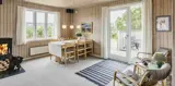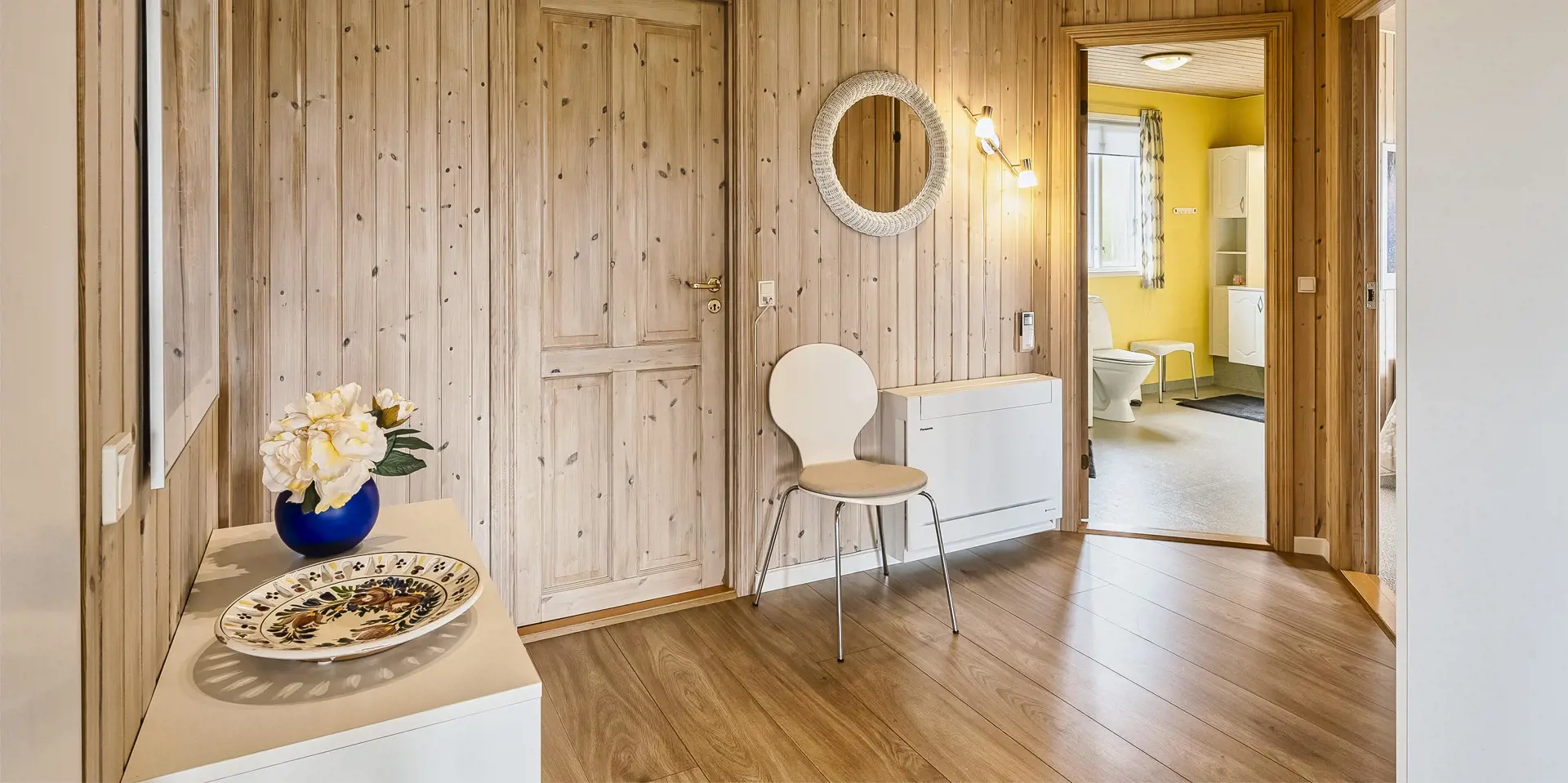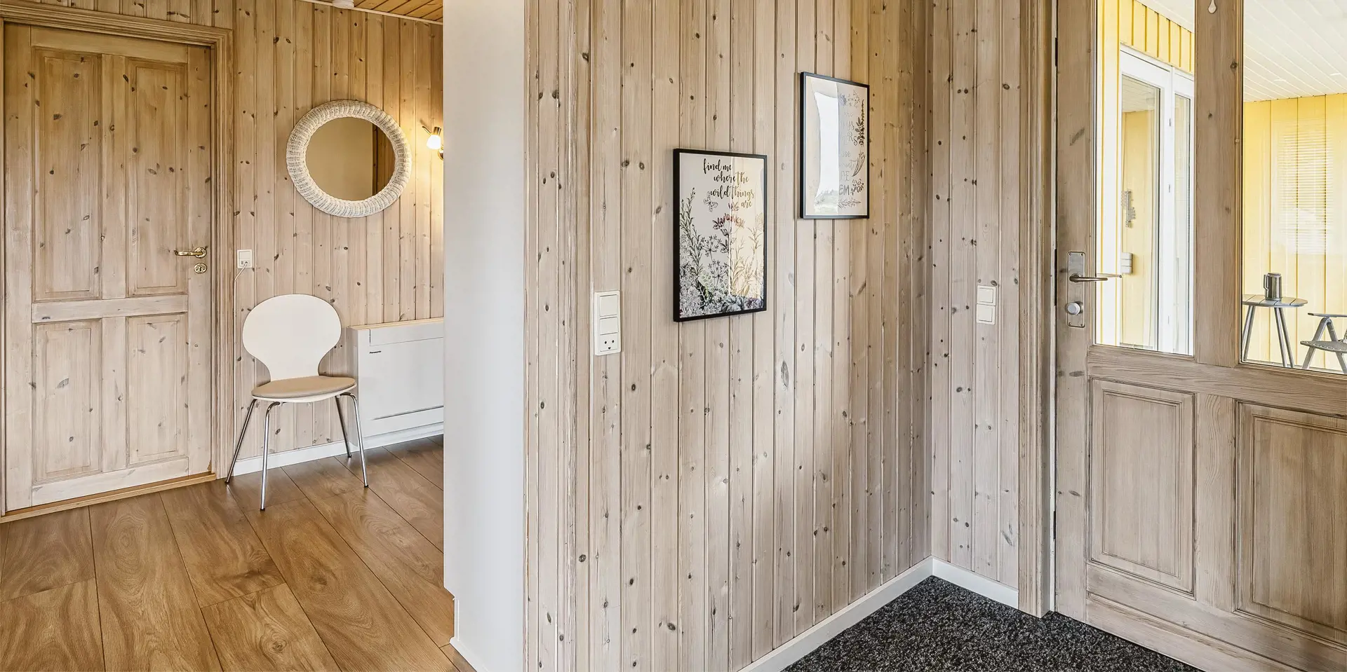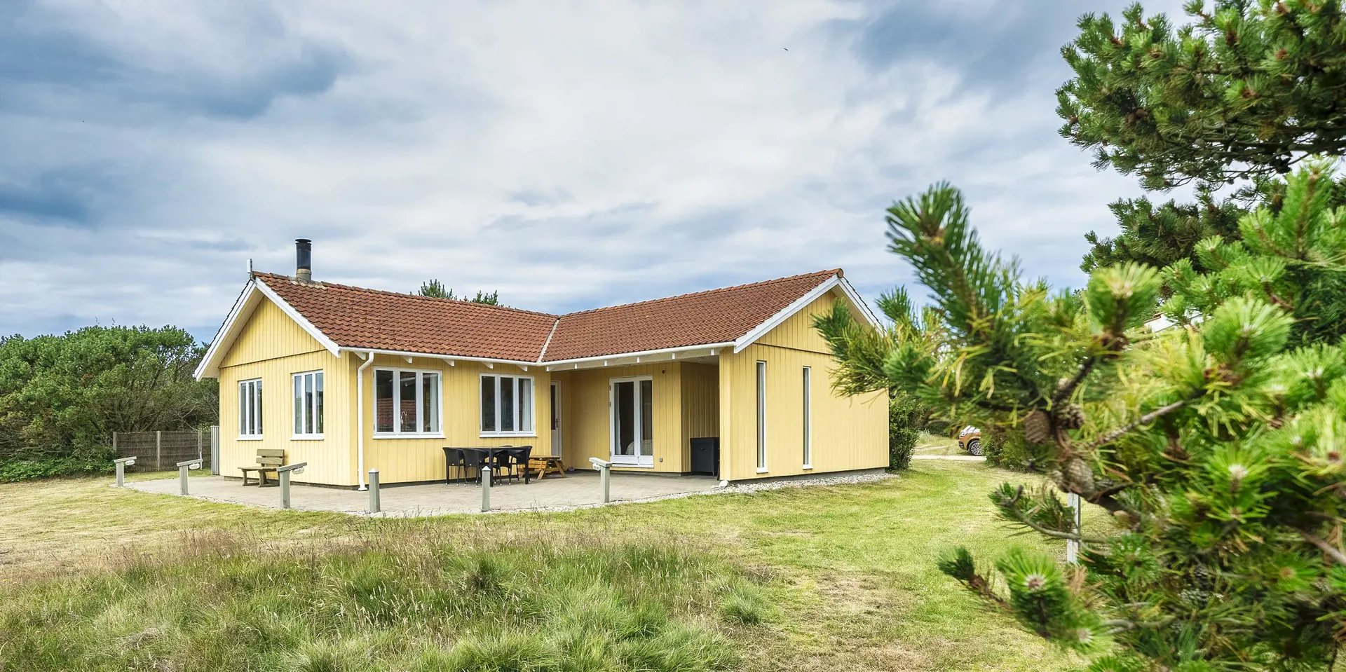 Schönes und gemütliches Ferienhaus auf einem natürlichem Rasengrundstück gelegen. Das Ferienhaus ist für 4 Personen ausgestattet und der Strand ist ca. 500 Meter vom Ferienhaus entfernt. Das Wohnzimmer ist mit einer gemütlichen hellen Sitzgarnitur ausgestattet und verfügt über einen Kamin. Der Speiseplatz ist auch hier im Wohnberich aufgestellt. Das deutsche Fernsehprogramm empfangen Sie über eine Parabolantenne. Ein DVD-Abspielgerät steht den Gästen auch zur Verfügung. Der Küchenbereich ist mit einem Herd mit Kochplatten, einem Backofen, einer Geschirrspülmaschine, einer Mikrowelle und einer Kühl- und Gefrierkombination ausgestattet. Das große Badezimmer verfügt über ein WC, ein Handwaschbecken und eine Dusche. Eine Waschmaschine ist hier im Badezimmer untergebracht. Den Gästen stehen zwei Schlafzimmer zur Verfügung: DB + 2B. Beide Schlafzimmer sind mit je einem Doppelbett ausgestattet. Das Ferienhaus verfügt über einen Internetanschluss (W-Lan, 30/30). Wärmepumpe. Es stehen Ihnen zwei Terrassenbereiche zur Verfügung. Deweiteren befindet sich eine Sandkiste und ein Schaukelstativ für die kleinen Gäste auf dem Grundstück bereit. Ihr Fahrzeug findet in dem Carport seinen Platz. Es sind keine Haustiere erlaubt. Das Rauchen ist nicht gestattet. Das Ferienhaus ist 1992 erbaut worden und in 1999 renoviert.