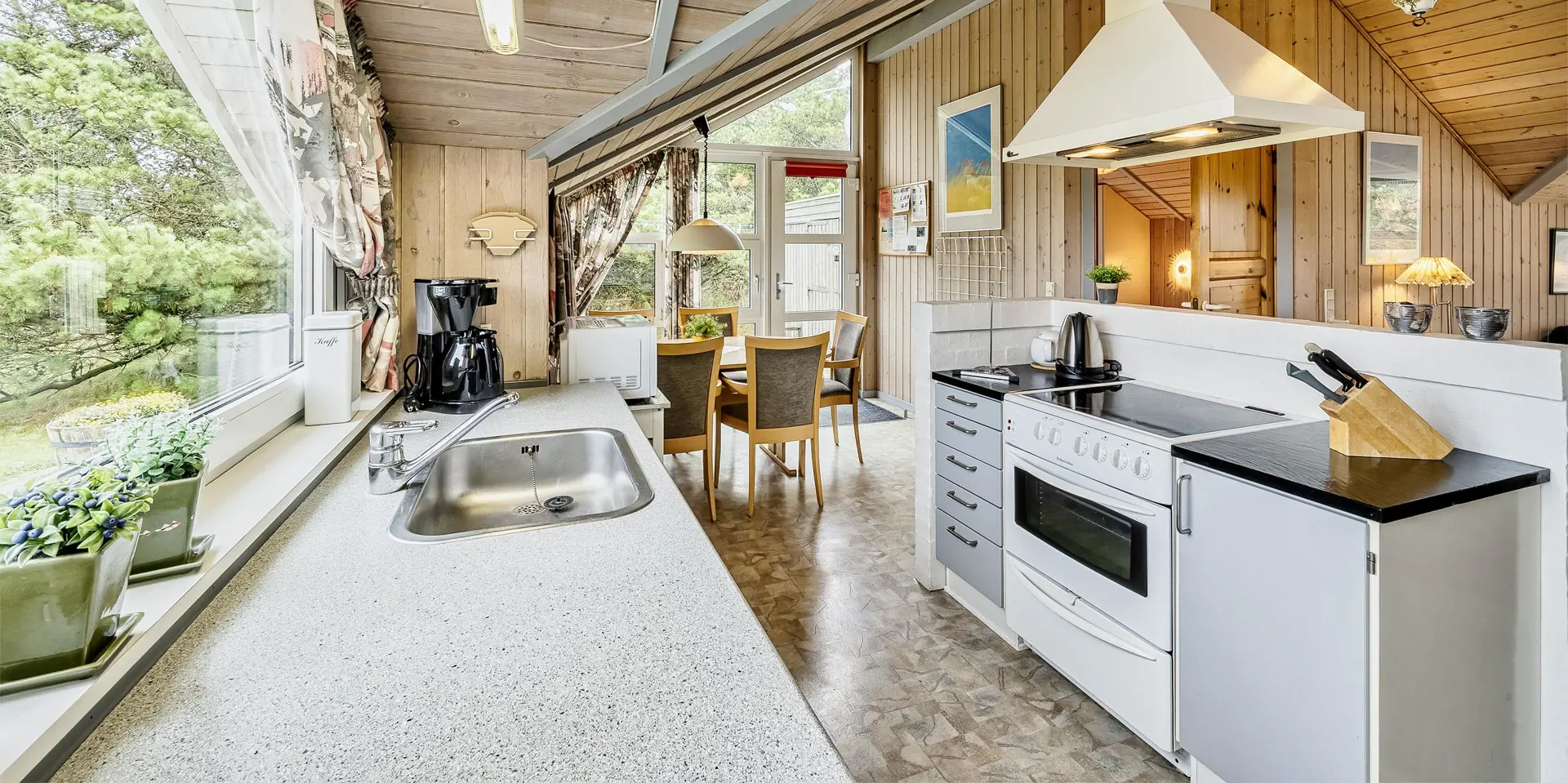 Nett eingerichtetes Ferienhaus mit Namen ”Bel Tempo” auf einem naturbelassenem Grundstück mit Blick auf einen See im Jafdalsvej gelegen. Das Ferienhaus ist für 4 bis 6 Personen ausgestattet. Der Strand ist ca. 1 Km vom Ferienhaus entfernt. Das Wohnzimmer hat eine gemütliche Ledergarnitur und einen Kamin. Hinter der Sitzgarnitur befindet sich ein Alkoven. Hier haben 2 Personen einen weiteren Schlafplatz. Der Alkoven kann mit eine Gardine zugezogen werden. Das deutsche Fernsehprogramm empfangen Sie über eine Parabolantenne. Der Küchenbereich ist offen zum Speiseplatz. Über dem Abwaschbecken ist ein großes Fenster und daneben eine Terrassentür. Dadurch kommt viel Licht in den Küchenbereich. Die Küche ist ausgestattet mit einem Herd mit Cerankochfeld, einem Backofen, einer Geschirrspülmaschine und einem Kühlschrank. Das Badezimmer hat ein WC, ein Handwaschbecken, eine Dusche, eine Sauna und einen Whirlpool. Desweiteren ist hier ein Waschmaschine und ein Trockner untergebracht. Insgesamt stehen den Gästen zwei Schlafzimmer zur Verfügung: DB + DB. Beide sind mit je einem Doppelbett ausgestattet. Ein Terrassenbereich am Ferienhaus gibt Ihnen Platz für ein Sonnenbad oder auch einfach nur um Ihren Kaffee zu geniessen. Für Ihr Fahrzeug ist ein Carport auf dem Grundstück aufgestellt. Es sind keine Haustiere erlaubt. Das Rauchen ist nicht gestattet. Das Ferienhaus ist 1996 erbaut worden.