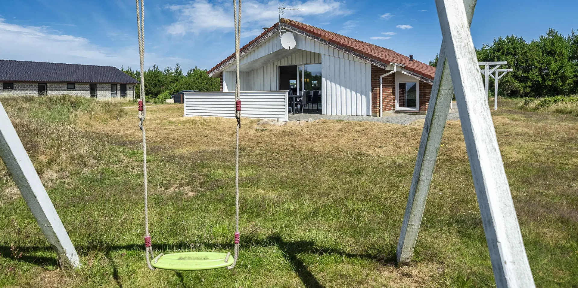 Gemütliches Ferienhaus auf einem offenem und naturbelassenem Grundstück. Das Ferienhaus ist für 8 Personen ausgestattet. Der Strand ist ca. 1000 Meter vom Ferienhaus entfernt. Das komplette Ferienhaus ist mit einem Laminatboden verlegt, ausser die Bäder. Das Wohnzimmer verfügt über eine große Rundsitzecke mit direktem Blick auf den Kamin. Das deutsche Fernsehprogramm empfangen Sie über eine Parabolantenne. Zusätzlichgibt es ein DVD-Abspielgerät im Haus. Das Ferienhaus verfügt über einen Internet-Anschluss (W-Lan). Der Speiseplatz ist zum Wohnbereich offen und gegenüber der Küche platziert. Die Küche verfügt über einen Herd mit Cerankochfeld, einem Backofen, einer Geschirrspülmaschine, einer Mikrowelle und einer Kühl- und Gefrierkombination. Das große Badezimmer ist mit einem WC, einem Handwaschbecken, einer Dusche ausgestattet. Ebenso befinden sich die Sauna und der Whirlpool in dem grossen Badezimmer. Das Gäste WC verfügt über ein Handwaschbecken und ein WC. Ebenso sind die Waschmaschine und der Trockner in dem Gäste WC untergebracht. Den Gästen stehen insgesamt vier Schlafzimmer zur Verfügung: DB + DB + DB + 2B. Drei Schlafzimmer verfügen je über ein Doppelbett (2 x 180 x 200 und 1 x 160 x 200) und das vierte Schlafzimmer haben zwei Einzelbetten (2 x 90 x 200). Ein Teil des Terrassenbereiches am Hause ist überdacht. Es sind keine Haustiere erlaubt. Das Rauchen im Ferienhaus ist nicht gestattet. Eine Sandkiste und ein Schaukelstativ stehen für die kleinen Gäste auf dem Grundstück zum Spielen bereit. Gratis Eintritt für das Badeland Oksbøl und Badeland und Bowling in Varde in 2026. Das Ferienhaus ist 1992 erbaut worden.