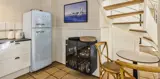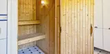 Der im Wohnzimmer hängende Kamin sogt hier für gemütliche und angenehme Wärme. Vom Wohnbereich gelangt man in die offene Wohnküche, die mit einem Herd mit Cerankochfeld und Backofen, einer Geschirrspülmaschine und einer Kühl- und Gefrierkombination ausgestattet ist. Deutsches Fernsehprogramm ist über eine Parabol-Antenne zu empfangen. Das grosse Badezimmer verfügt über eine Dusche, ein WC und einem Handwaschbecken, das genügend Ablagefläche für Ihre Badutensilien bietet. Eine Sauna ist hier auch integriert. Die Waschmaschine und der Trockner befinden sich ebenfalls hier im Bad.