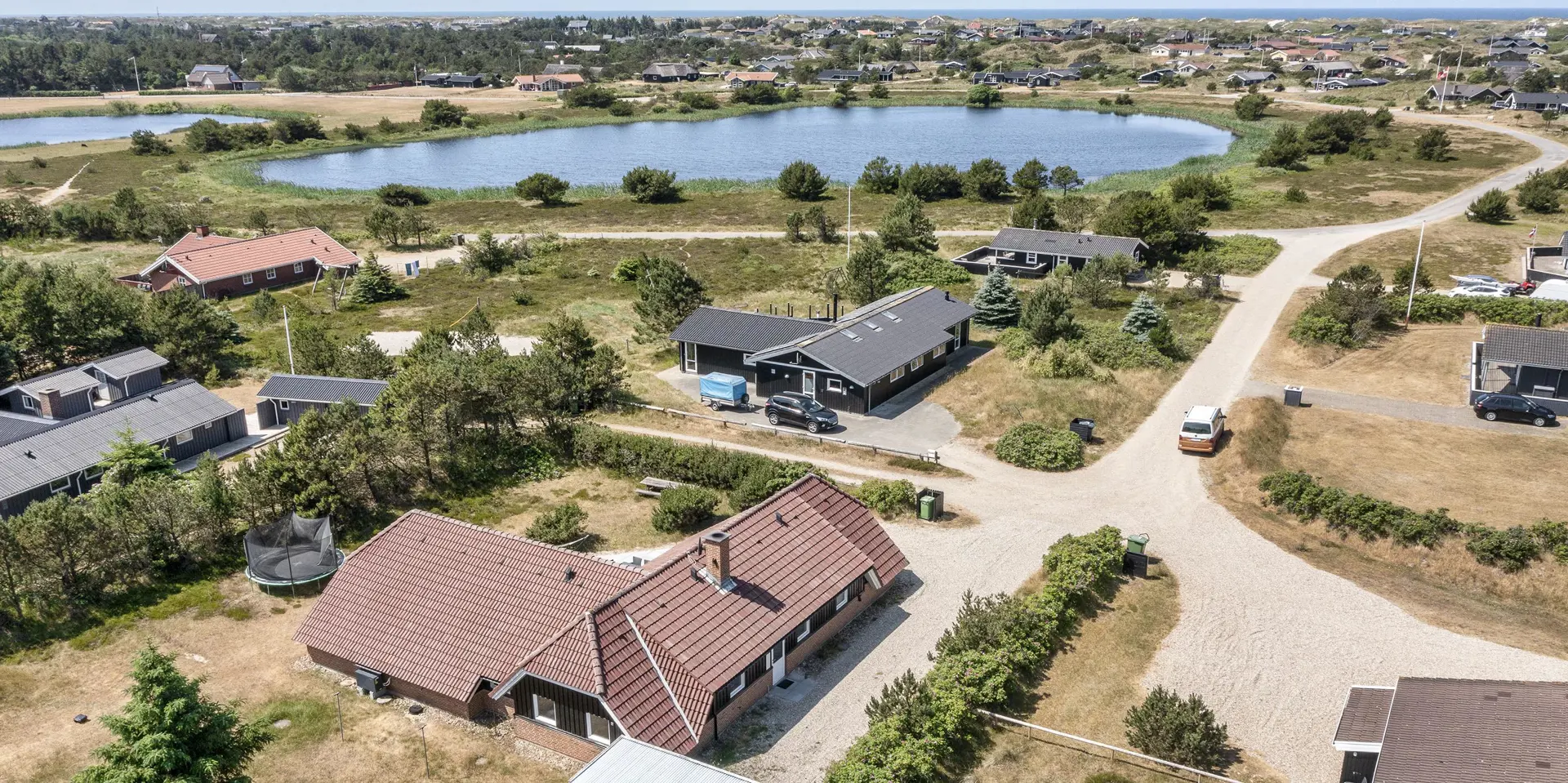 Nett eingerichtetes Poolhaus auf einem großen naturbelassenem Rasengrundstück gelegen und ist für 10 Personen ausgestattet. Der Strand ist 900 Meter vom Ferienhaus entfernt. Das Ferienhaus befindet sich in einer Sackgasse und grenzt an den Fußweg, wo man von Vejers nach Grærup wandern kann, ohne dass dort Autos vorbei fahren. Hirsche und das Rotwild können Sie auch öfter beobachten, wenn sie aus dem Wald kommen. Die Tiere lieben es von den Gästen mit Obst und Gemüse verwöhnt zu werden. Der Wohnbereich ist zum Essplatz offengehalten und in der Mitte der beiden Bereiche ist der Kamin aufgestellt. Ausserdem gibt es eine Wärmepumpe im Haus. Mit dieser Wärmepumpe haben Sie die Möglichkeit die Stromkosten zu senden, denn sie ist energiesparend. Das Fernsehprogramm empfangen Sie über Smart TV und über eine YouSee App. An dem Tresen vom Küchenbereich, stehen Ihnen einige Barhocker zum Sitzen zur Verfügung. Der Küchenbereich ist mit einem Herd mit Cerankochfeld, einem Backofen, einer Geschirrspülmaschine, einer Mikrowelle und einer Kühl- und Gefrierkombination ausgestattet. Es sind insgesamt zwei neurenovierte Bäder in Ferienhaus. Beide Badezimmer verfügen über ein WC, ein Handwaschbecken und eine Dusche. Fünf Schlafzimmer stehen für die Gäste bereit: DB + DB + DB + DB + 2B. Vier davon sind mit je einem Doppelbett ausgestattet und eines verfügt über zwei Einzelbetten. Der Poolbereich ist separat und der Zugang ist vom Essplatz. Durch die großen Glasscheiben haben Sie einen direkten Blick in den Poolbereich und auf das Schwimmbecken, das hat eine Größe vom ca. 7,25 meter x 3,20 meter x 1,30 Meter Tiefe. Eine Sauna befindet sich im Poolbereich. Desweiteren ist hier der Standwasser-Whirlpool (für ca. 6 Personen)in den Boden eingelassen. Eine Waschmaschine mit Trockner ist in einem der Bäder untergebracht und steht den Bewohnern zur Verfügung. Auf dem großen Grundstück stehen ein Schaukelstativ und ein Trampolin für die Kleinen Gäste bereit. Großzügiger Terrassenbereich vorhanden. Es sind max. drei Hausiere erlaubt. Katzen und das Rauchen im Hause sind nicht erlaubt. Das Ferienhaus verfügt über einen Internetanschluss (W-Lan). Ladestation für E-Fahrzeuge vorhanden ( Type 2). Baujahr des Hauses ist 1992 und renoviert im Jahr 2023.