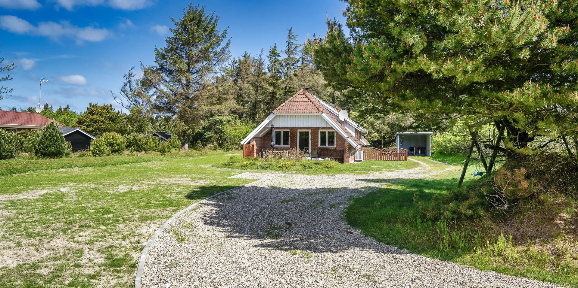 Nett eingerichtetes Ferienhaus auf einem großen Rasengrundstück und geschützt, umgeben von Bäumen. Das Ferienhaus ist für 6 Personen ausgestattet. Der Strand ist ca. 2 km vom Haus entfernt. Der Wohnbereich ist mit dem Essbereich und der Küche offen gehalten und mit einem Laminat auslegt. Im Wohnbereich steht eine gemütliche Rundsitzecke und der Morsø-Kamin. Es befindet sich eine Warmepumpe im Ferienhaus. Mit dieser Warmepumpe haben sie die Möglichkeit die Stromkosten zu senken, denn die Warmepumpe ist energiesparend. Das deutsche Fernsehprogramm empfangen Sie über eine Parabolantenne, Chromecast und ein DVD-Abspielgerät steht Ihnen auch zur Verfügung. Der Küchenbereich ist modern und mit einem Herd mit Cerankochfeld, einem Backofen, einer Geschirrspülmaschine, einer Mikrowelle und einem Kühlschrank mit einem großem Gefrierfach ausgestattet. Das Badezimmer verfügt über ein WC, ein Handwaschbecken, eine Dusche und eine Sauna. Eine Waschmaschine und ein Trockner stehen Ihnen auch zur Benutzung bereit. Insgesamt gibt es drei Schlafzimmer im Haus: DB + DB + 2B. Zwei der Schlafzimmer sind mit je einem Doppelbett ausgestattet und das Dritte verfügt über zwei Einzelbetten. Internetanschluss (W-Lan). Es gibt zwei Terrassenbereiche. Für die Kleinen Gäste des Hauses befindet sich auf dem Grundstück eine Sandkiste und eine Schaukel. Ihr Fahrzeug findet in dem Carport seinen Platz. Es sind max. drei Haustiere erlaubt. Das Rauchen ist nicht gestattet. Das Ferienhaus wurde 1986 erbaut.