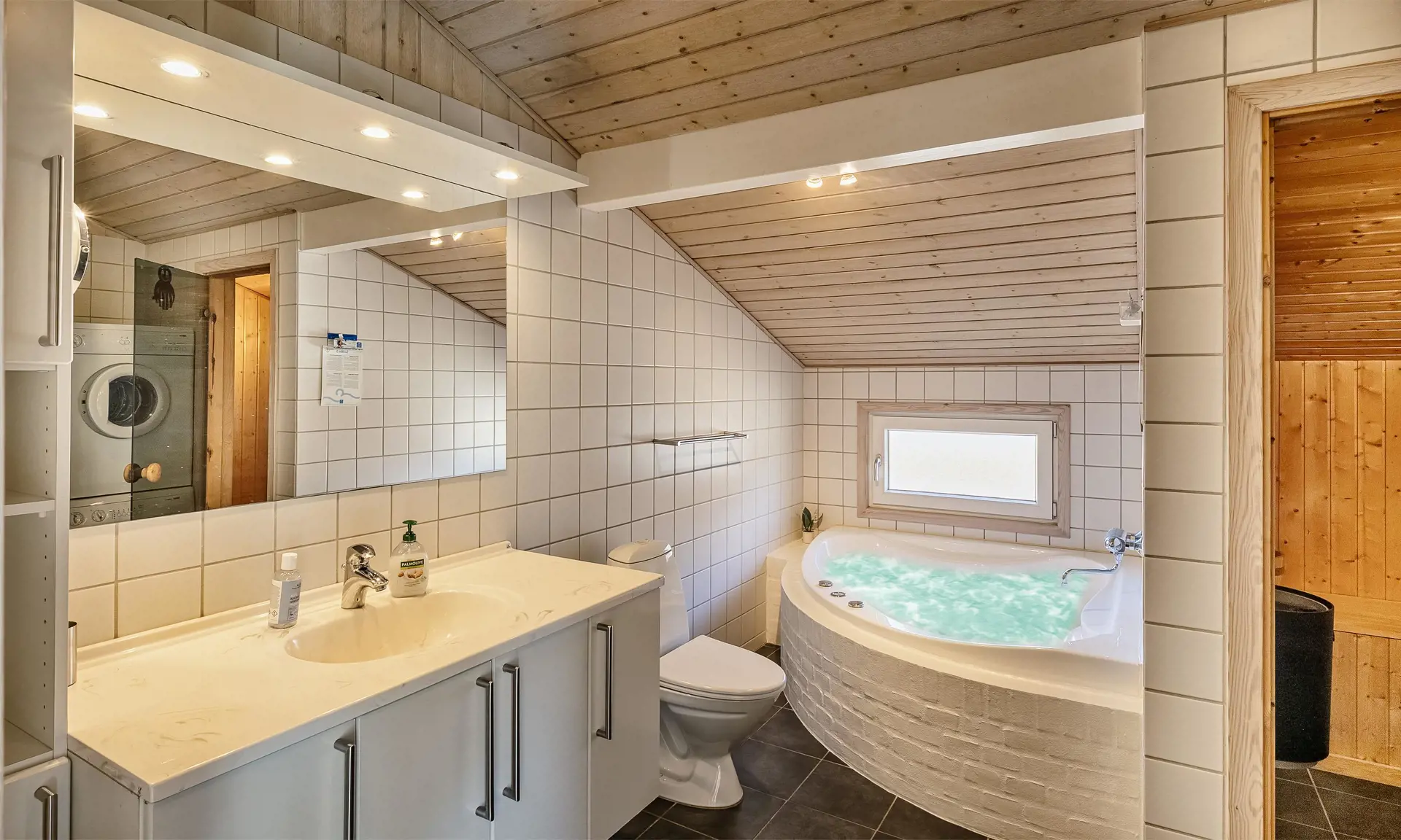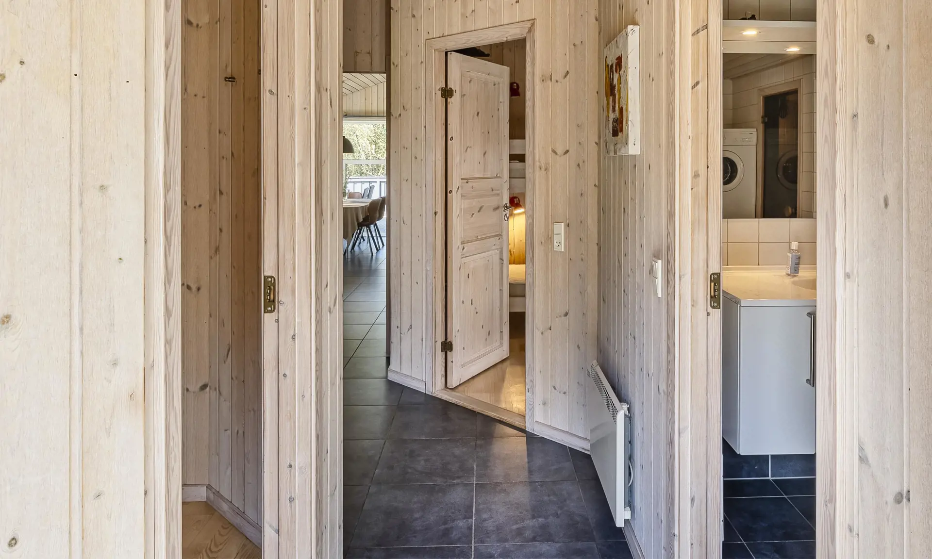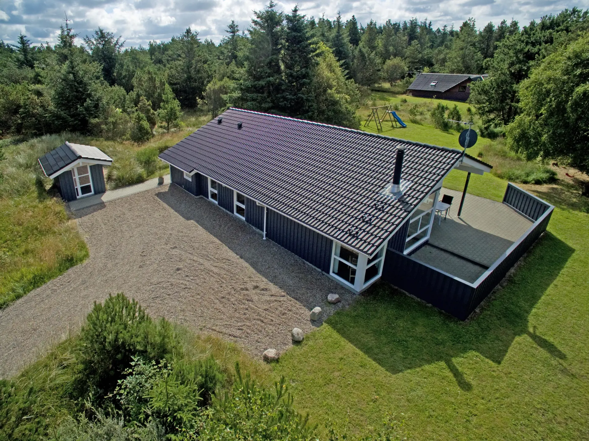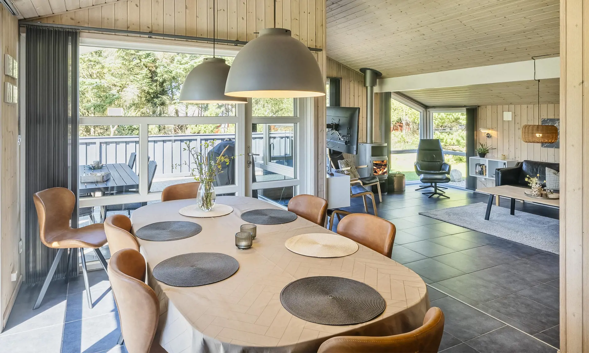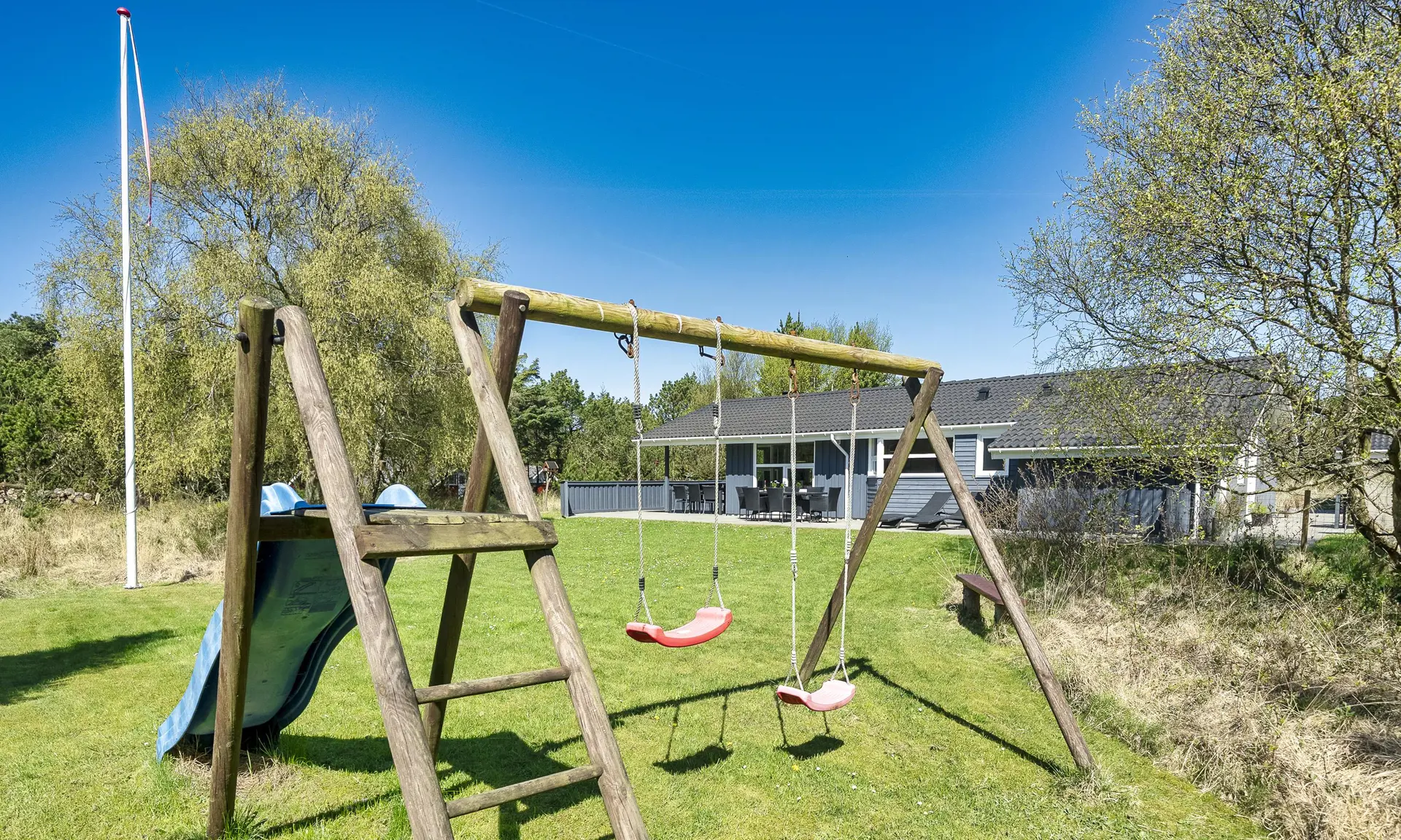 Sehr modernes und geschmackvoll eingerichtetes Ferienhaus auf einem 3.100 m2 großem Rasengrundstück gelegen. Das Ferienhaus ist für 6 bis 8 Personen ausgestattet. Der Strand liegt etwa 1 km vom Haus entfernt. Das komplette Ferienhaus ist gefliest bis auf die Bereiche in den Schlafzimmern, die sind mit einem Laminat versehen. Alles in diesem Haus ist farblich gut abgestimmt und die Einrichtung ist sehr stilvoll ausgesucht. Großes modernes Wohnzimmer mit einer gemütlichen Sitzgarnitur ausgestattet. Das Fernsehprogramm empfangen Sie über Stofa, daher sind nur 5-8 deutsche Kanäle zu empfangen. Der Kamin ist hier im hinteren Wohnbereich aufgestellt. Über eine kleine Stufe gelangen Sie dann in den Essbereich mit der offenen Wohnküche. Die Küche verfügt über einen Herd mit Cerankochfeld, einem Backofen in Arbeitshöhe, einer Geschirrspülmaschine, einer Mikrowelle und einer Kühl- und Gefrierkombination. Es stehen zwei Bäder im Hause für die Gäste zur Verfügung. Das kleinere ist mit einem WC, einem Handwaschbecken und einer Dusche ausgestattet. Hier steht Ihnen auch genügend Ablagefläche für Ihre Badutensilien zur Verfügung. Das große Badezimmer hat ein WC, ein Handwaschbecken, eine Dusche, eine Sauna und einen Whirlpool. Die Waschmaschine und der Trockner sind hier in dem großen Badezimmer untergebracht. Insgesamt stehen den Gästen drei Schlafzimmer zur Verfügung: DB + DB + 4B. Zwei der Schlafzimmer sind mit je einem Doppelbett ausgestattet und das Dritte verfügt über zwei Einzelbetten und ein Etagenbett. Im Hauptschlafzimmer gibt es elektrische Hebbetten. Hinterm Haus steht Ihnen eine großzügige mit Fliesen belegte Terrasse für Ihre Grillabende oder Ihr Sonnenbad zur Verfügung. Ein kleiner Bereich davon ist sogar überdacht. Für die kleinen Gäste ist ein Schaukelstativ mit einer Rutsche und Klettergerüst aufgestellt. Der Garten ist eingezäunt. Das Ferienhaus verfügt über einen Internetanschluss (W-Lan). Es sind max. zwei Haustiere erlaubt. Das Rauchen ist nicht gestattet. Das Ferienhaus wurde 2006 erbaut.