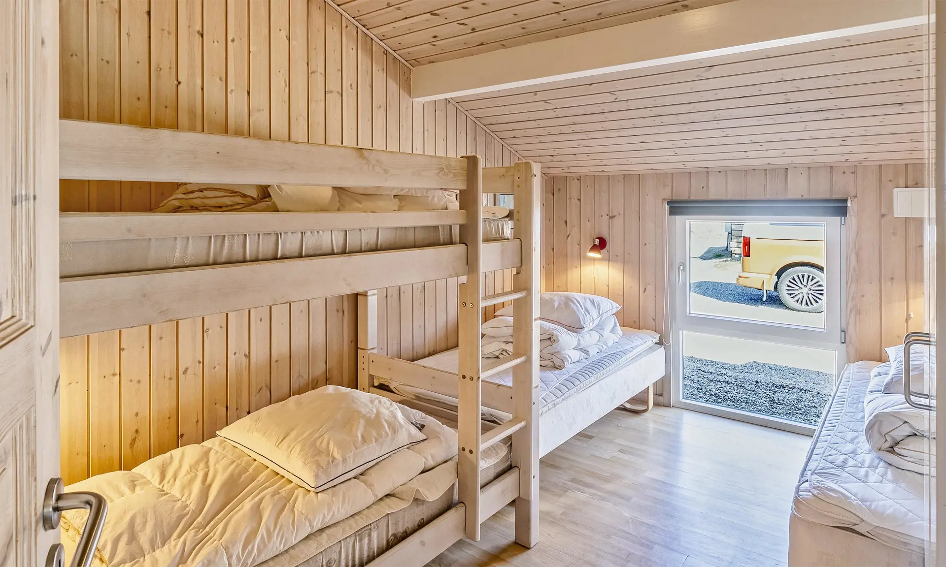 3 Schlafzimmer. 1 mit Doppelbett 180x200 cm. 1 mit Doppelbett 160x200 cm. 1 mit 2 Einzelbetten und 1 Etagenbett.