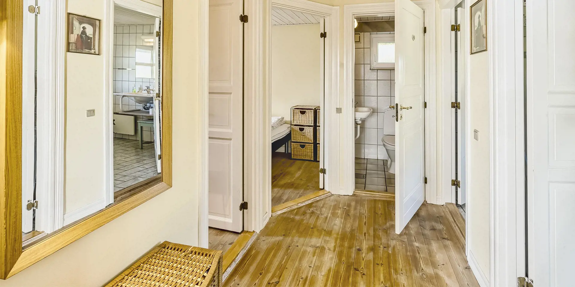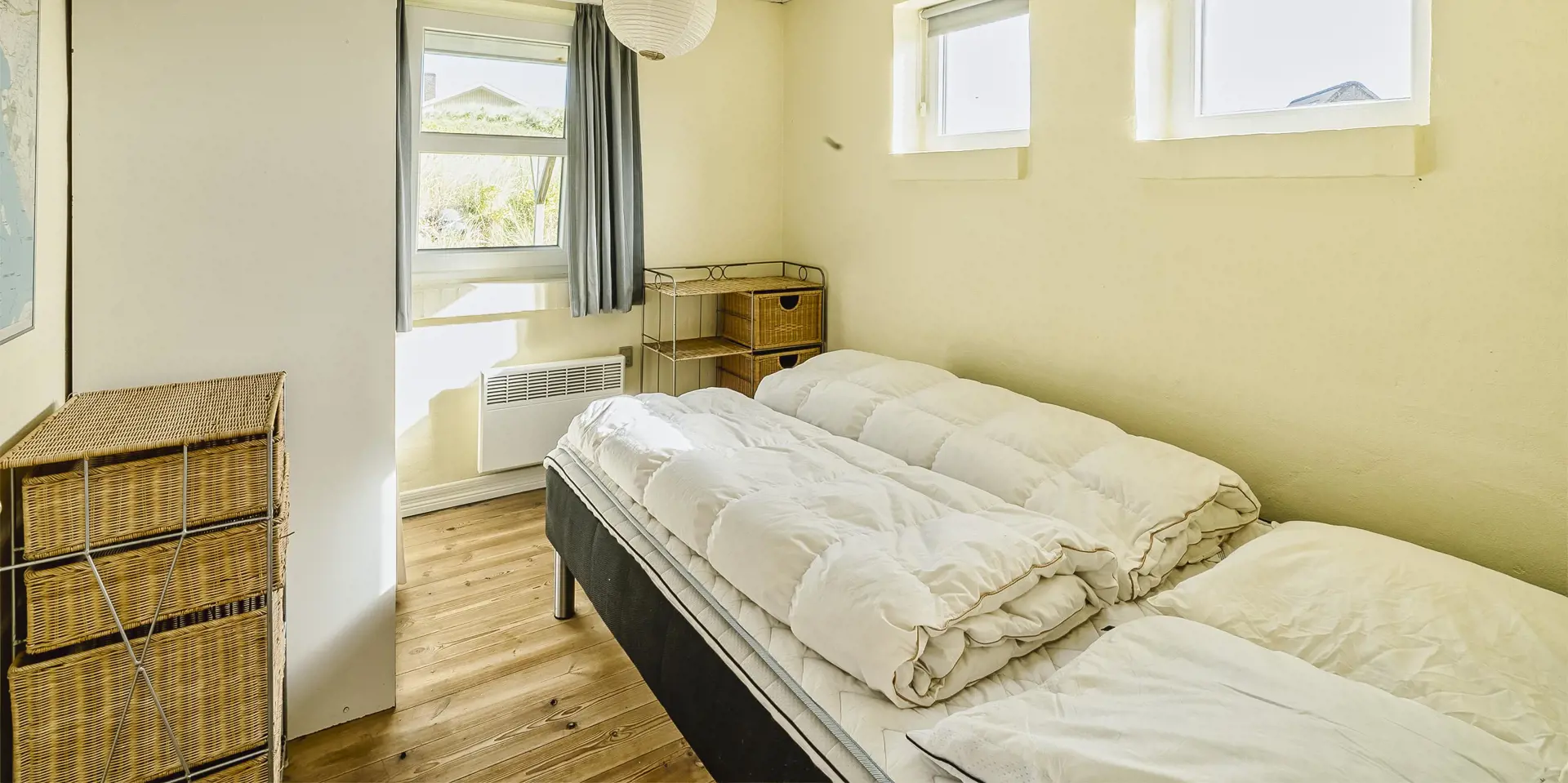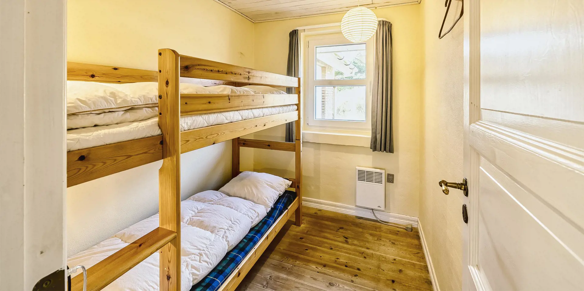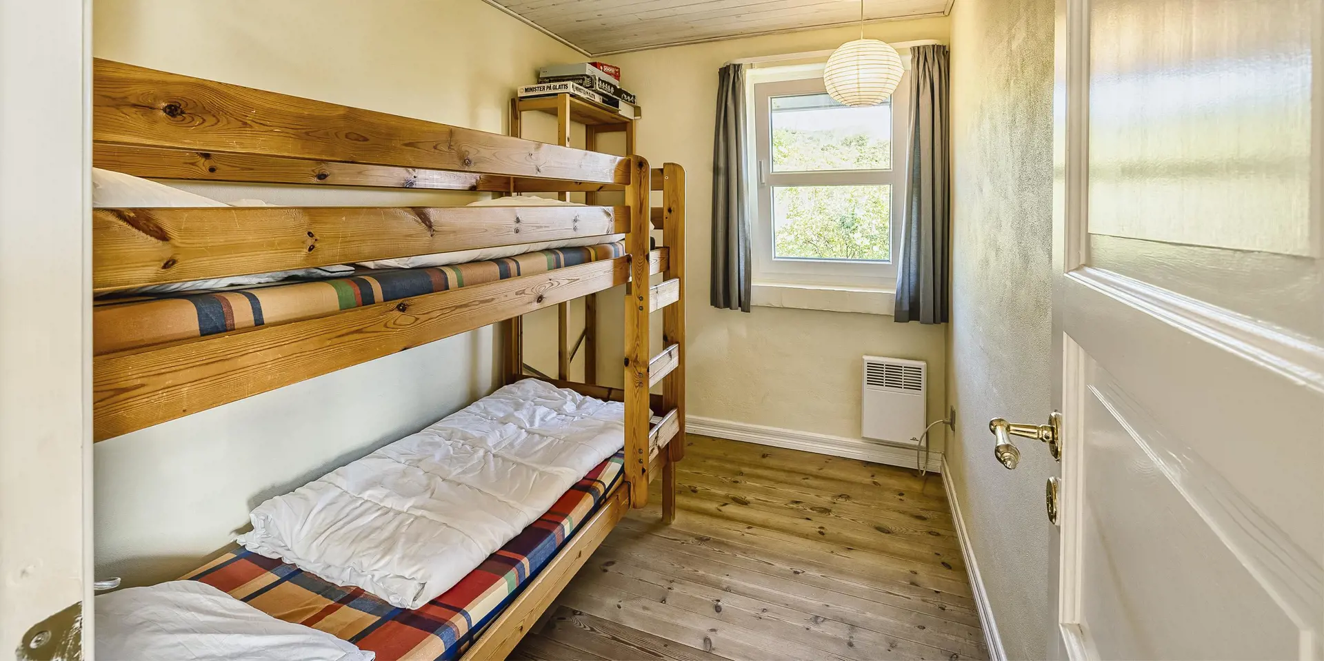 4 Schlafzimmer. 1 mit Doppelbett 180x200 cm. 1 mit kleines Doppenbett 120x200. 2 mit Etagenbetten.