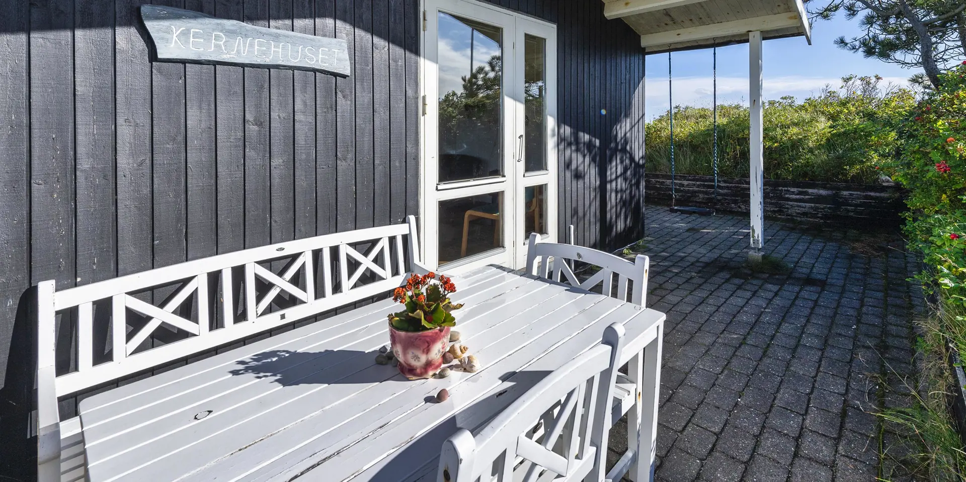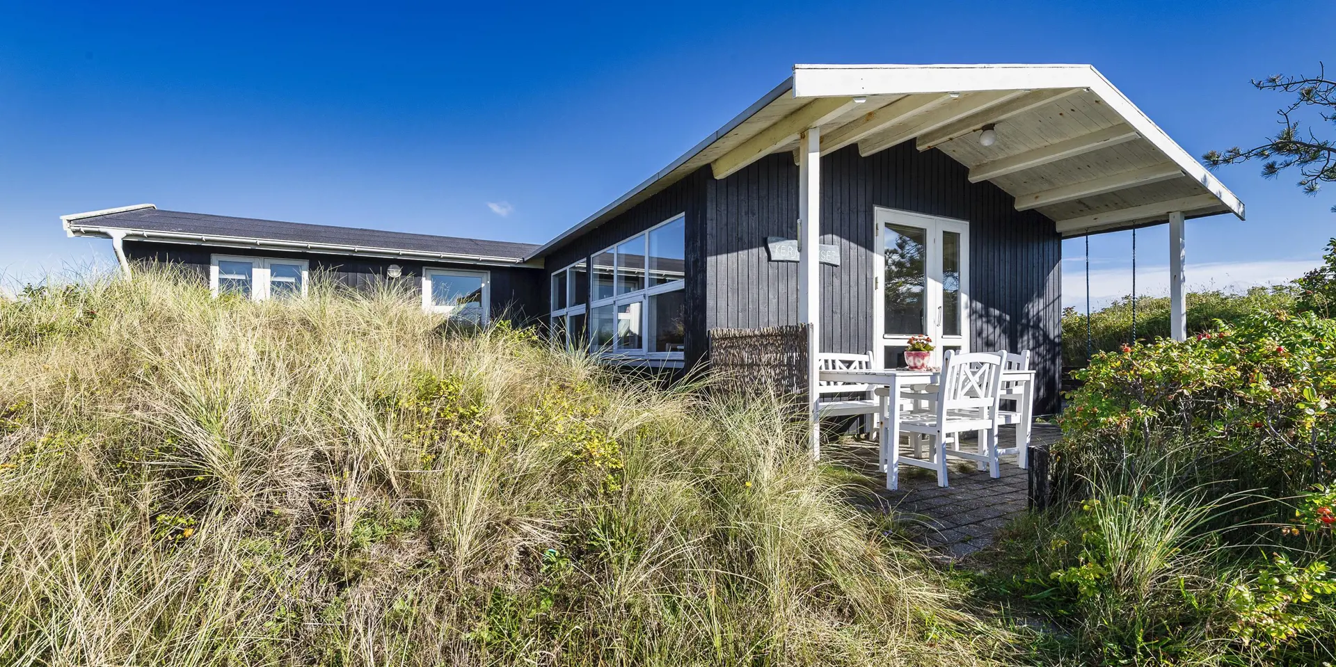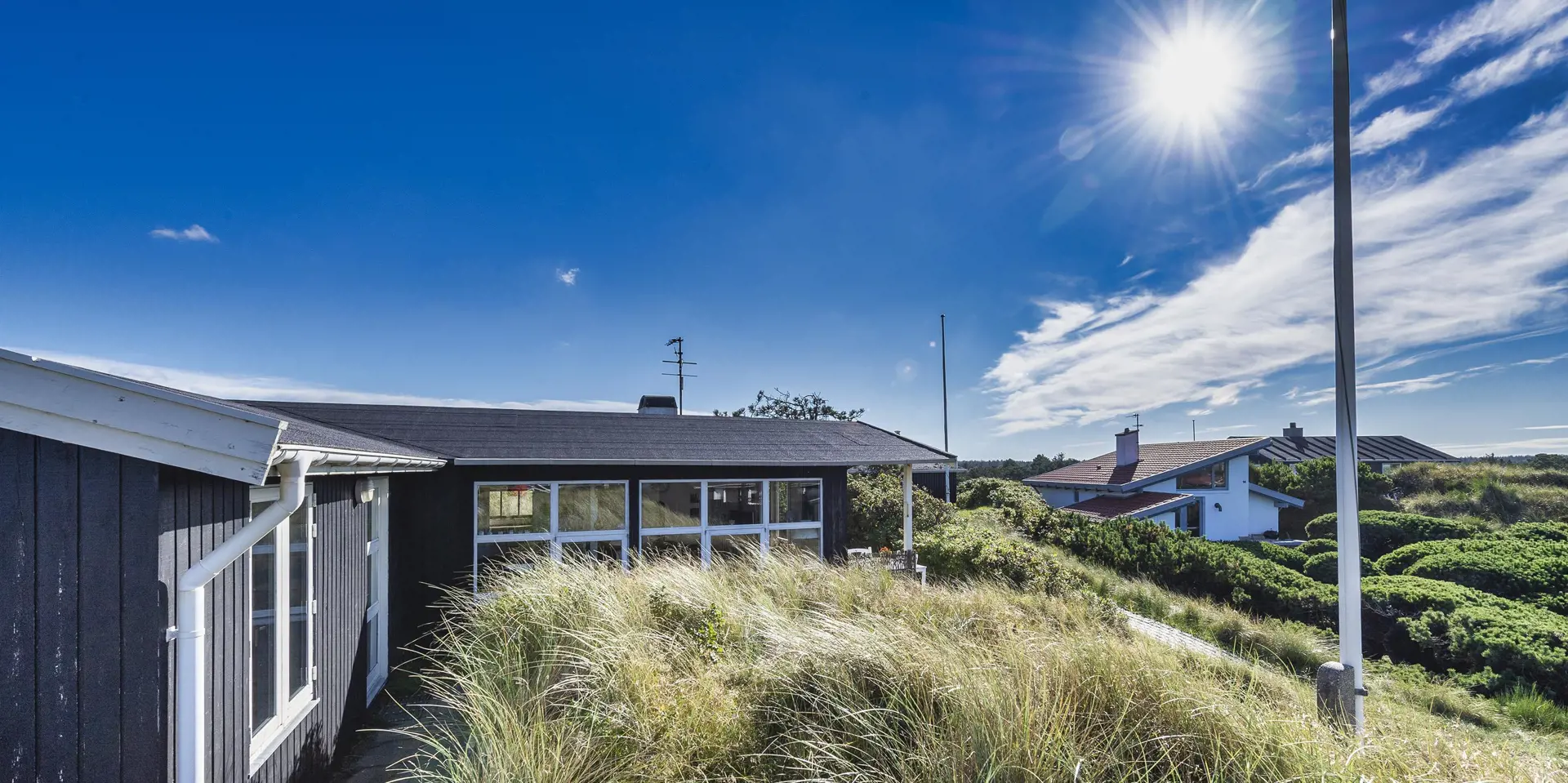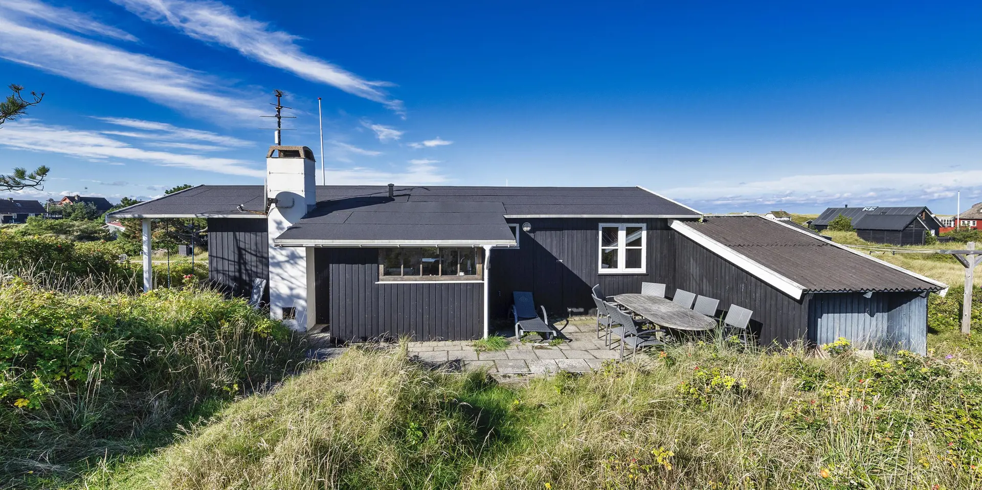 Hübsches Ferienhaus mit dem Namen ”Kernehuset” auf einer Düne in Mitten der Dünenlandschaft gelegen. Das Ferienhaus ist für 7 Personen ausgestattet. Über einen kleinen Treppenaufstieg gelangen Sie zum Ferienhaus. Es ist modern und geschmackvoll eingerichtet. Der Strand ist etwa 400 Meter vom Haus entfernt. Der Wohn- und Essbereich ist gemütlich eingerichtet und mit einem tollen Holzfußboden verlegt. Hier im Wohnbereich ist auch der Kamin aufgestellt. Das deutsche Fernsehprogramm empfangen Sie über eine Parabolantenne. Die Küche ist mit einem Herd mit Cerankochfeld, einem Backofen, einer Geschirrspülmaschine, einer Mikrowelle und einer Kühl- und Gefrierkombination ausgestattet. Das Badezimmer hat ein WC, ein Handwaschbecken und eine Dusche. Eine Waschmaschine steht Ihnen auch zur Verfügung. Insgesamt stehen Ihnen vier Schlafzimmer zur Verfügung: 2B + 2B + 2B + B. Drei der Schlafzimmer sind mit je zwei Einzelbetten ausgestattet und das vierte hat nur ein Einzelbett. Waschmaschine befindet sich im Schuppen. Das Ferienhaus verfügt über einen Internetanschluss (W-Lan). Zwei Terrassenbereiche am Ferienhaus stehen Ihnen für Ihre Entspannung oder einen Grillabend zur Verfügung. Bei einer Terrasse ist sogar ein kleiner Teil überdacht. Es sind keine Haustiere erlaubt. Das Rauchen ist nicht gestattet. Das Ferienhaus ist 1964 erbaut worden und in 1991 renoviert.