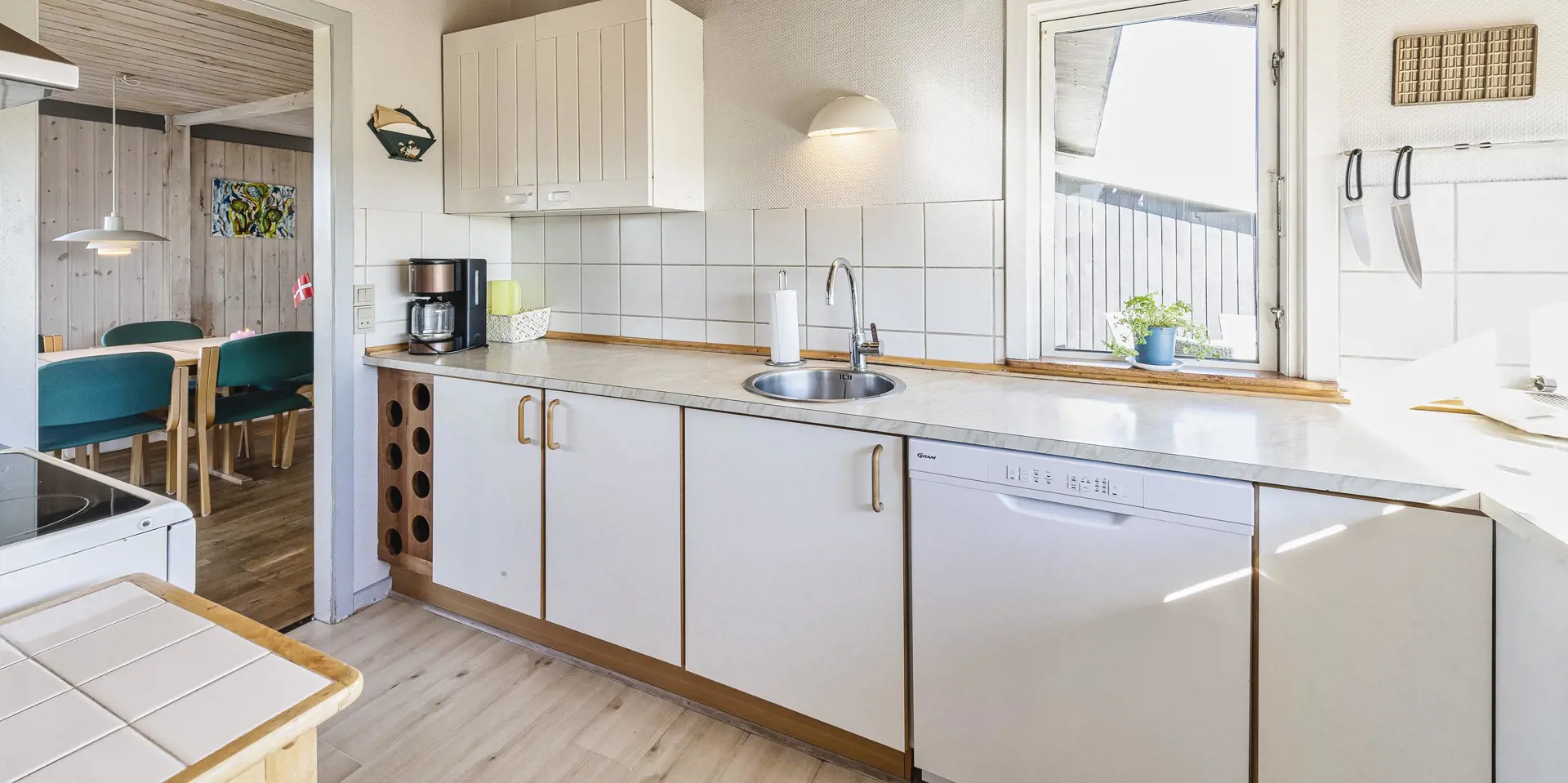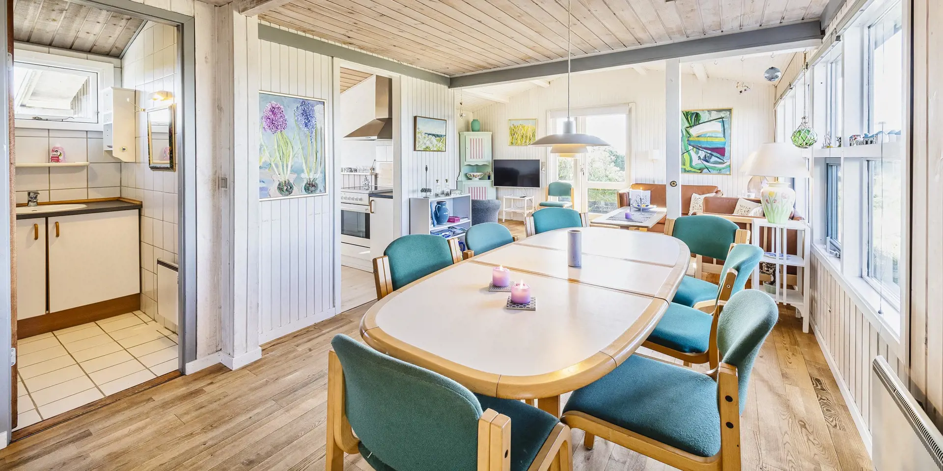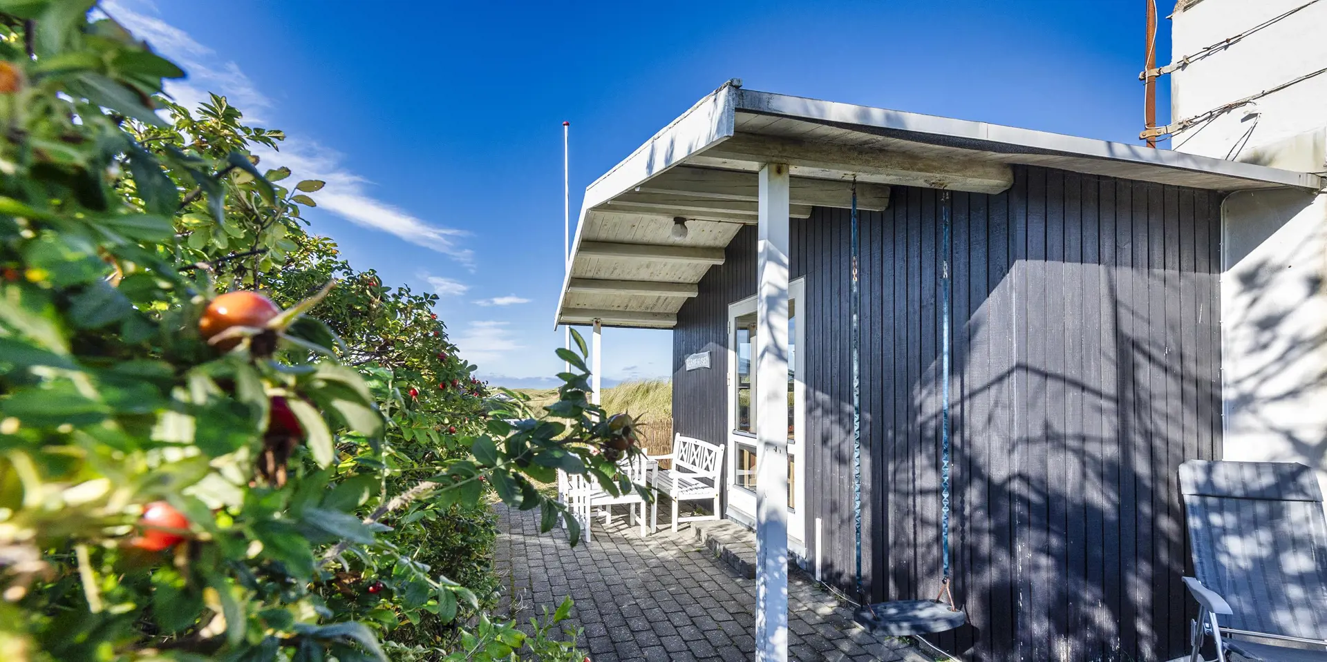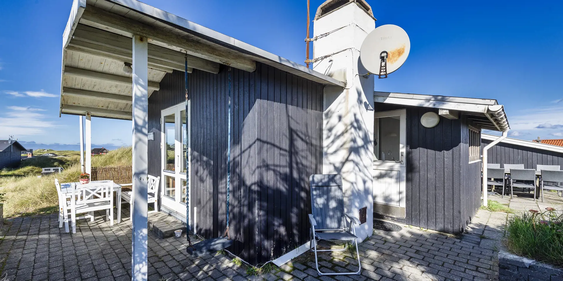 Hübsches Ferienhaus mit dem Namen ”Kernehuset” auf einer Düne in Mitten der Dünenlandschaft gelegen. Das Ferienhaus ist für 7 Personen ausgestattet. Über einen kleinen Treppenaufstieg gelangen Sie zum Ferienhaus. Es ist modern und geschmackvoll eingerichtet. Der Strand ist etwa 400 Meter vom Haus entfernt. Der Wohn- und Essbereich ist gemütlich eingerichtet und mit einem tollen Holzfußboden verlegt. Hier im Wohnbereich ist auch der Kamin aufgestellt. Das deutsche Fernsehprogramm empfangen Sie über eine Parabolantenne. Die Küche ist mit einem Herd mit Cerankochfeld, einem Backofen, einer Geschirrspülmaschine, einer Mikrowelle und einer Kühl- und Gefrierkombination ausgestattet. Das Badezimmer hat ein WC, ein Handwaschbecken und eine Dusche. Eine Waschmaschine steht Ihnen auch zur Verfügung. Insgesamt stehen Ihnen vier Schlafzimmer zur Verfügung: 2B + 2B + 2B + B. Drei der Schlafzimmer sind mit je zwei Einzelbetten ausgestattet und das vierte hat nur ein Einzelbett. Waschmaschine befindet sich im Schuppen. Das Ferienhaus verfügt über einen Internetanschluss (W-Lan). Zwei Terrassenbereiche am Ferienhaus stehen Ihnen für Ihre Entspannung oder einen Grillabend zur Verfügung. Bei einer Terrasse ist sogar ein kleiner Teil überdacht. Es sind keine Haustiere erlaubt. Das Rauchen ist nicht gestattet. Das Ferienhaus ist 1964 erbaut worden und in 1991 renoviert.