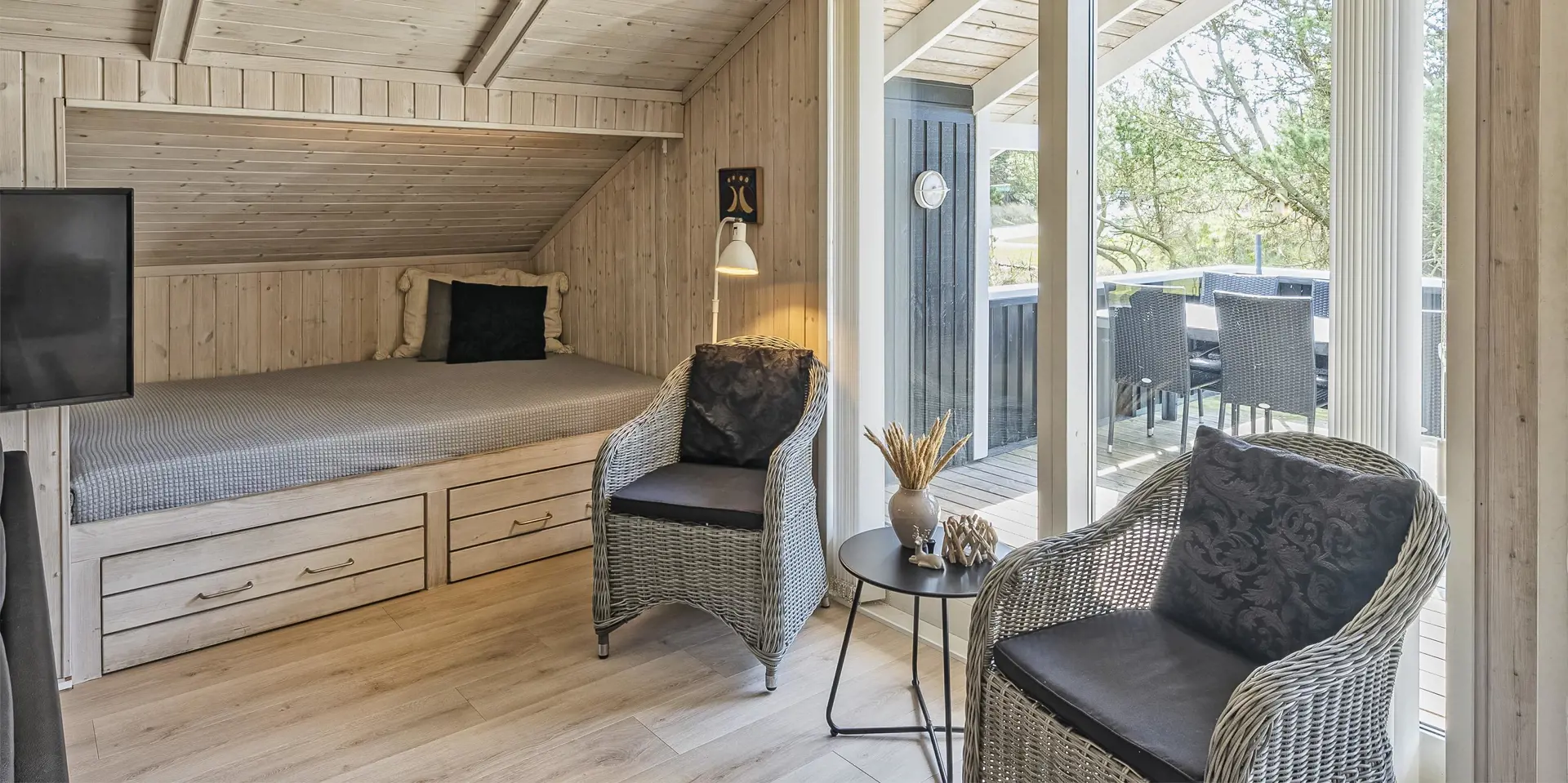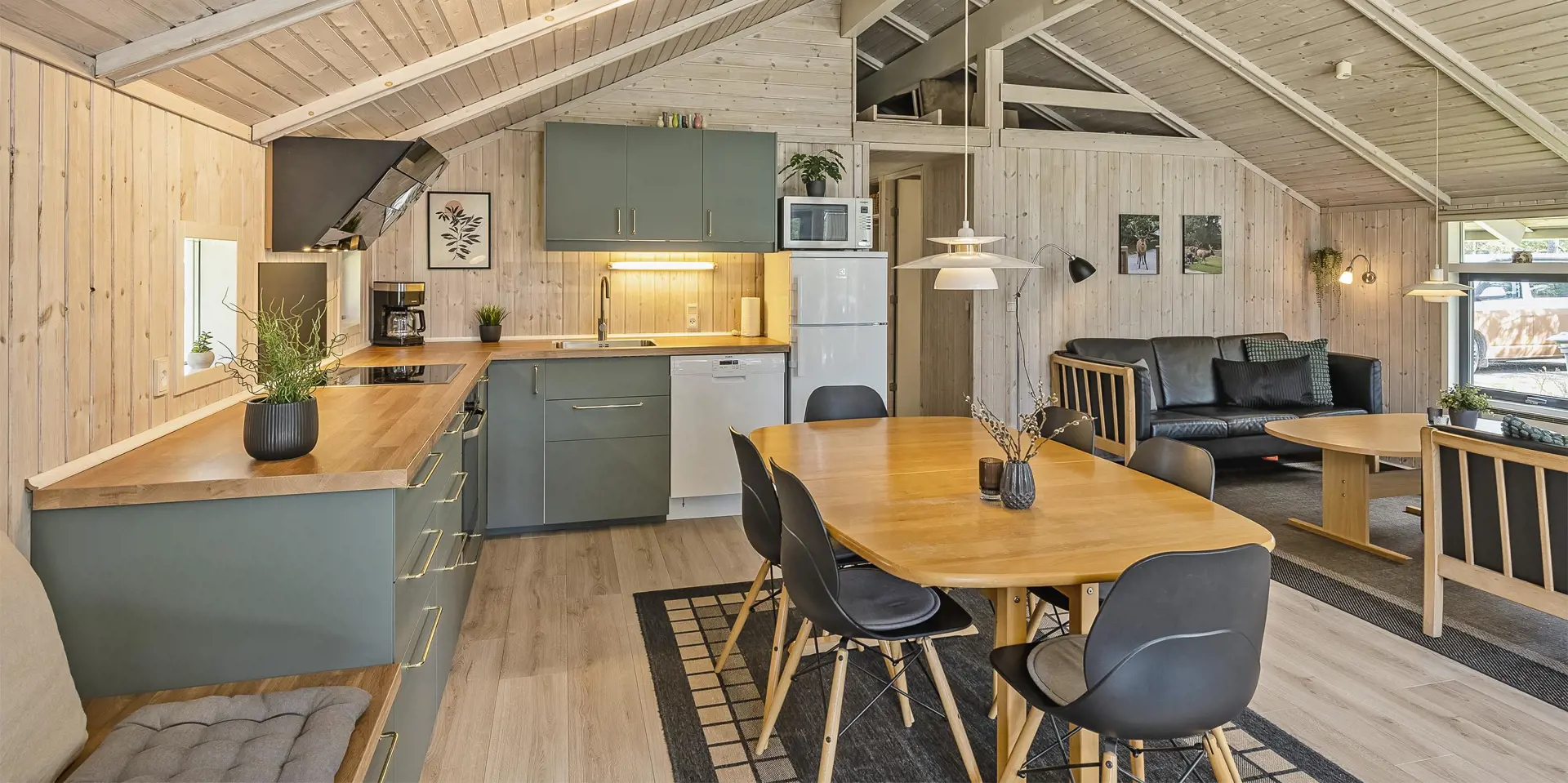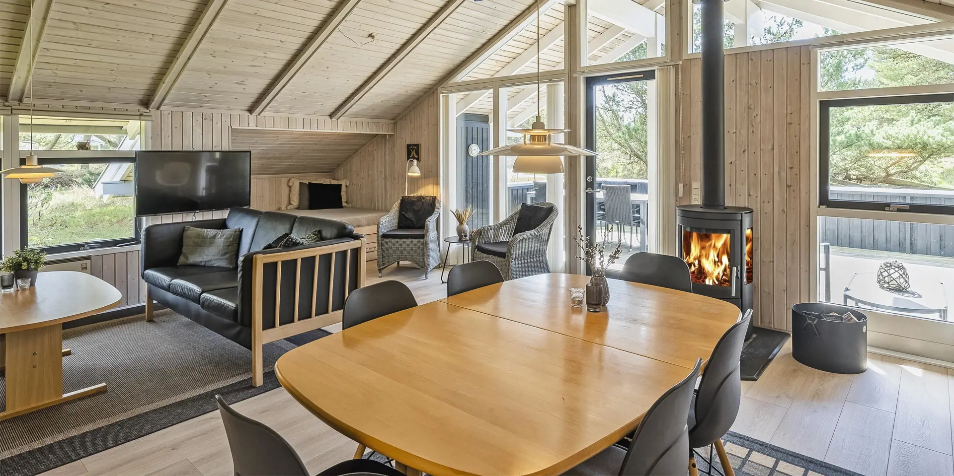 Dieses Familien freundliche Ferienhaus bietet Platz für 6 Personen und ca. 1,5 Km vom Strand entfernt. Auf dem grossen offenen Grundstück haben Ihre Kinder einen eigenen Spielplatz mit Schaukelstativ, Sandkasten und Bolzplatz. Das komplette Ferienhaus ist mit Holzfußboden ausgestattet. Im Wohn- und Essbereich befindet sich der Kaminofen und eine kleine kuschelige Ecke / Alkoven genannt, wo man sein Buch lesen kann und trotzdem dem Geschehen im Hause mit folgen kann. Deutsche Fernsehprogramme können über eine Parabolantenne empfangen werden.Des weiteren gibt es Smart TV, Stofa TV und Yuosee App um fern zu sehen.Die neue Küche ist mit einem Herd mit Cerankochfeld, einem Backofen, einer Geschirrspülmaschine und einer Kühl/ Gefrierkombination ausgestattet. Vier Schlafzimmer: DB + DB + 2B + 2B. sind 2 Schlafzimmer mit jeweils einem Doppelbett und 2 Schlafzimmer mit jeweils 2 Einzelbetten vorhanden. Ein separater Abstellraum bietet viel Platz für die Dinge, die nicht täglich im Gebrauch sind. Ein Gäste WC mit Dusche und Handwaschbecken vorhanden. Das große Badezimmer verfügt über eine Dusche, ein WC, ein Handwaschbecken und die Waschmaschine ist hier auch untergebracht.Eines der Badezimmer verfügt über eine Fussbodenheizung. Zusatzlich gibt es eine Wärmepumpe im Ferienhaus. Mit dieser Wärmepumpe können sie Strom sparen, da sie energiesparend ist. Die geschlossene Terrasse ist hübsch angelegt und ein kleiner Teil ist sogar überdacht.