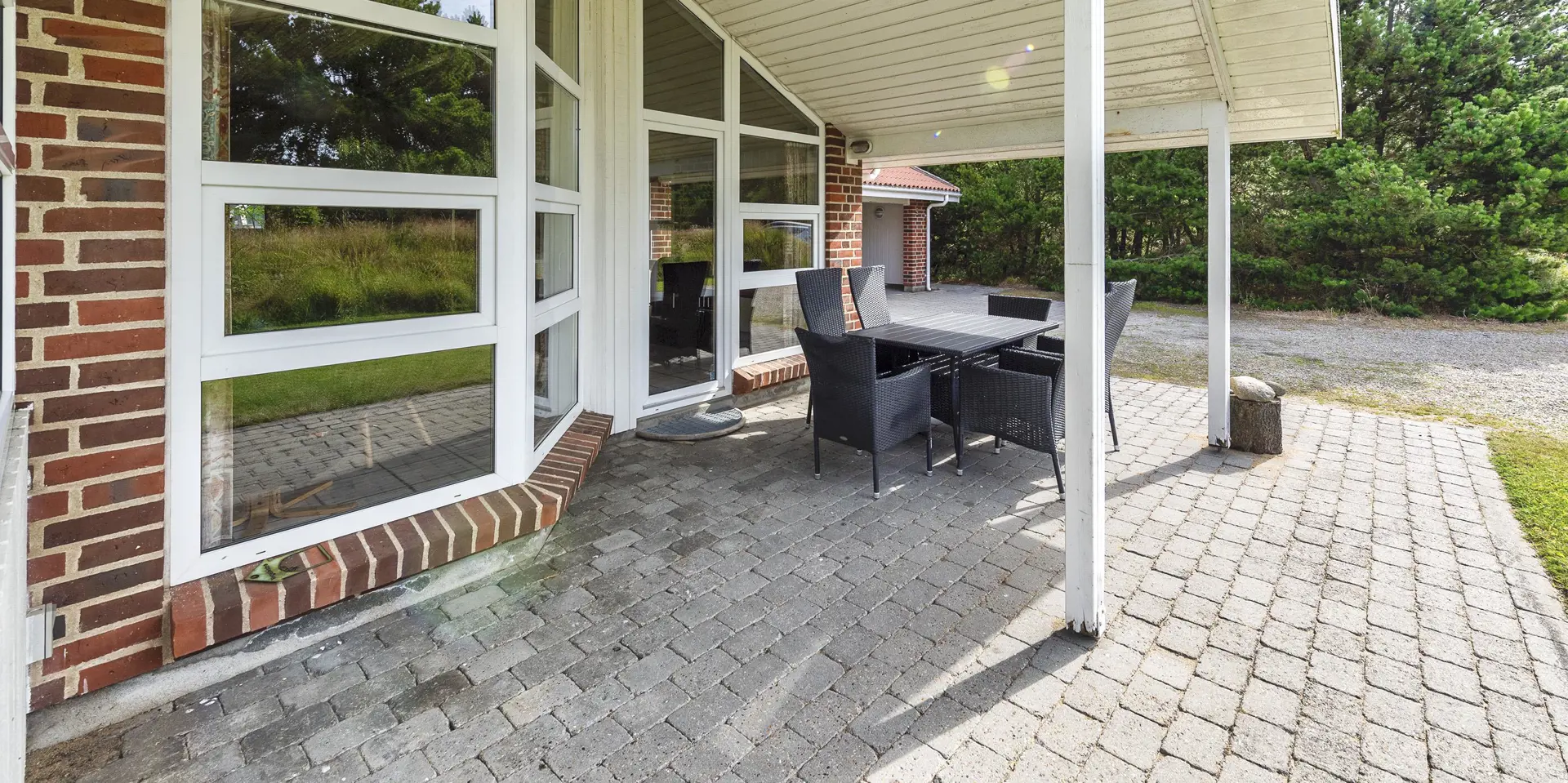 Lichtdurchflutetes Ferienhaus mit Carport das sich direkt am Haus befindet. Das Ferienhaus ist für 6 Personen ausgestattet und liegt auf einem schönen Naturgrundstück. Der Strand ist ca. 1,2 Km vom Ferienhaus entfernt. Der Wohnbereich ist großzügig gehalten und mit dem Essbereich offen verbunden. Der komplette Wohn-, Ess- und Küchenbereich ist gefliesst. Wärmepumpe. Der Kamin ist hier im Wohn- und Essbereich untergebracht. Das deutsche Fernsehprogramm empfangen Sie über eine Parabolantenne. Die offene Küche verfügt über einen Herd mit Kochplatten, einem Backofen, einer Geschirrspülmaschine, einer Mikrowelle und einer Kühl- und Gefrierkombination. Das Badezimmer ist mit einem WC, einem Handwaschbecken, einer Dusche und einer Sauna ausgestattet. Desweiteren sind hier die Waschmaschine und der Trockner aufgestellt. Eine ausreichende Ablagefläche für Ihre Badutensilien steht Ihnen auch zur Verfügung. Es gibt insgesamt drei Schlafzimmer im Ferienhaus: DB + DB + 2B. Das Ferienhaus verfügt über einen Internetanschluss (W-Lan). Fussbodenheizung im Bad, Wohnzimmer und Küche. 1 Haustier ist erlaubt. Ein großzügiger Terrassenbereich steht zur Verfügung und davon ist sogar ein Teil überdacht. Hier können Sie Ihre Grillabende im ”Trockenen” abhalten. Das Rauchen ist nicht gestattet. Das Ferienhaus wurde 1997 erbaut.