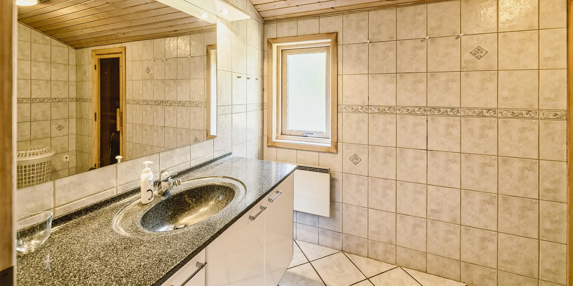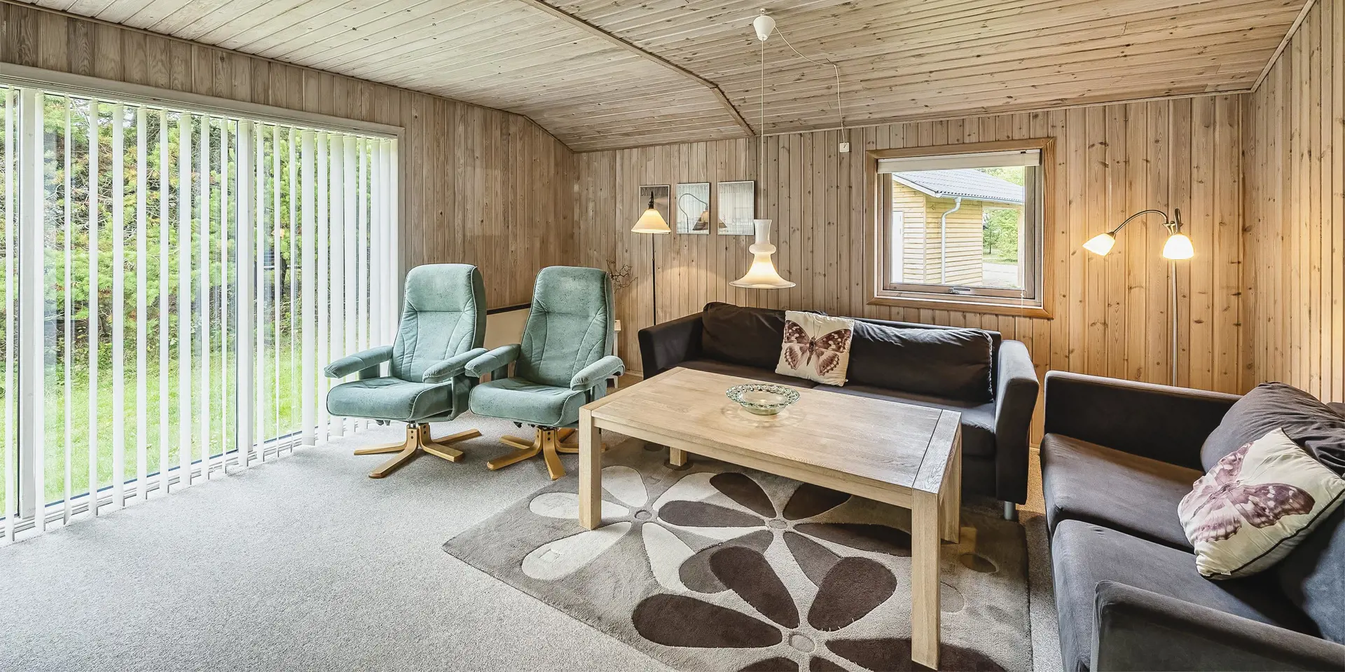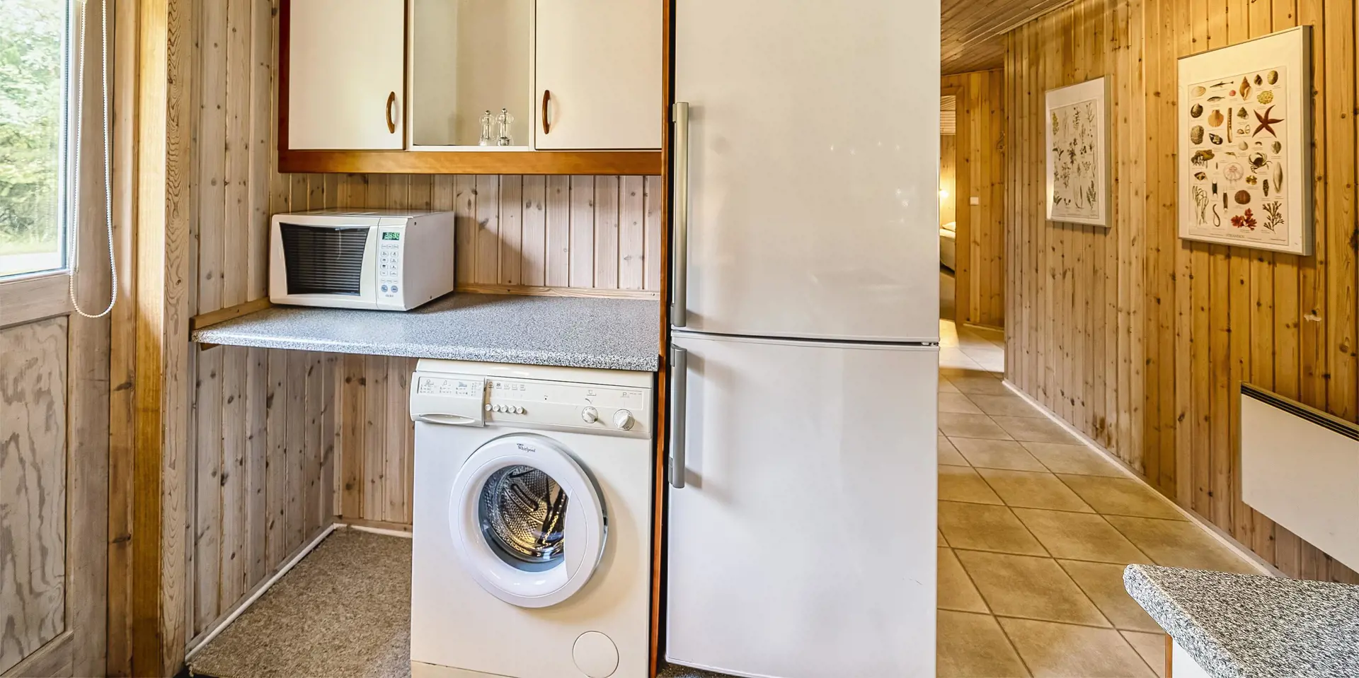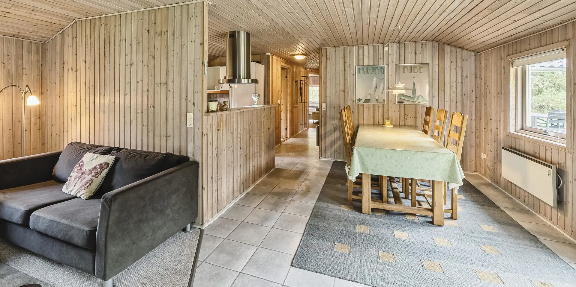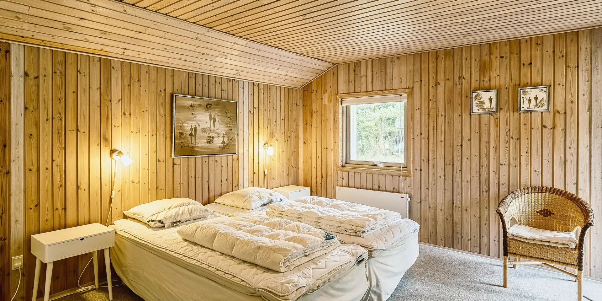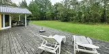Schönes Ferienhaus auf einem großen Rasengrundstück gelegen, rundum bewachsen mit Bäumen und Büschen. Das Ferienhaus ist für 6 Personen ausgestattet. Der Strand ist ca. 2 km vom Haus entfernt. Gemütlicher Wohnbereich mit einem Fernsehgerät. Das deutsche Fernsehprogramm empfangen Sie über Stofa, daher sind es nur 5-8 Kanäle die Sie empfangen können. Der Kamin ist im Bereich des Speiseplatzes aufgestellt, beheizt aber den ganzen Raum bis hin zum Wohnbereich und auch den Küchenbereich. Der Speiseplatz ist gegenüber der Küche platziert. Die Küche ist einfach und verfügt über einen Herd mit Kochplatten, einem Backofen, einer Geschirrspülmaschine, einer Mikrowelle und einer Kühl- und Gefrierkombination. Die Waschmaschine ist auch in der Küche untergebracht. Das geflieste Badezimmer hat ein WC, ein Handwaschbecken, eine Dusche und eine Sauna. Es stehen Ihnen insgesamt drei Schlafzimmer zur Verfügung: DB + 2B + 2B. Ein Schlafzimmer hat ein Doppelbett und die beiden anderen Schlafzimmer sind mit je zwei Einzelbetten ausgestattet. Für die kleinen Gäste steht ein Schaukelstativ auf dem Grundstück zum Spielen bereit. Sollten mal ein paar Regentropfen fallen, so haben Sie die Möglichkeit Möglichkeit Ihren Grillabend im Trockenen zu verbringen, da ein Teil der Terrasse überdacht ist. Das Ferienhaus verfügt über einen Internetanschluss (W-Lan). Es befindet sich eine Warmepumpe im Ferienhaus. Mit dieser Warmepumpe haben sie die Möglichkeit die Stromkosten zu senken, denn die Warmepumpe ist energiesparend. Das Rauchen im Ferienhaus ist nicht erlaubt. Es ist max. ein Haustier erlaubt. Dieser darf aber absolut nicht alleine im Ferienhaus bleiben, dies ist der Wunsch des Eigentümers. Das Ferienhaus ist 1966 erbaut worden und in 1998 renoviert.