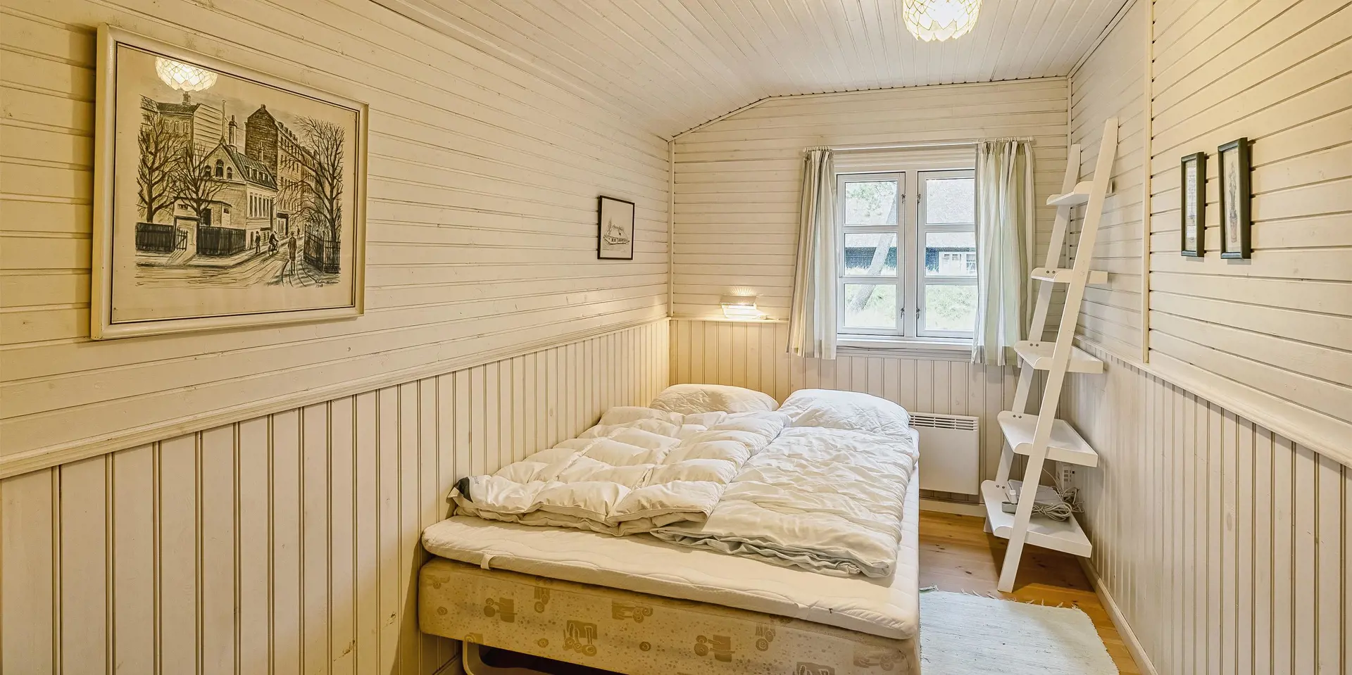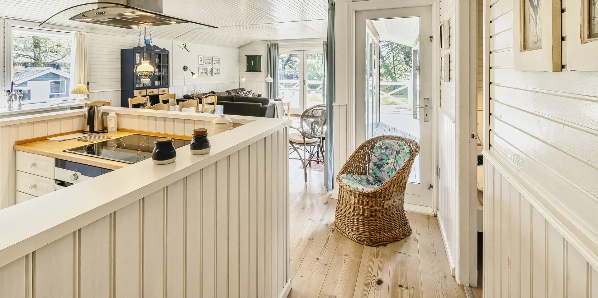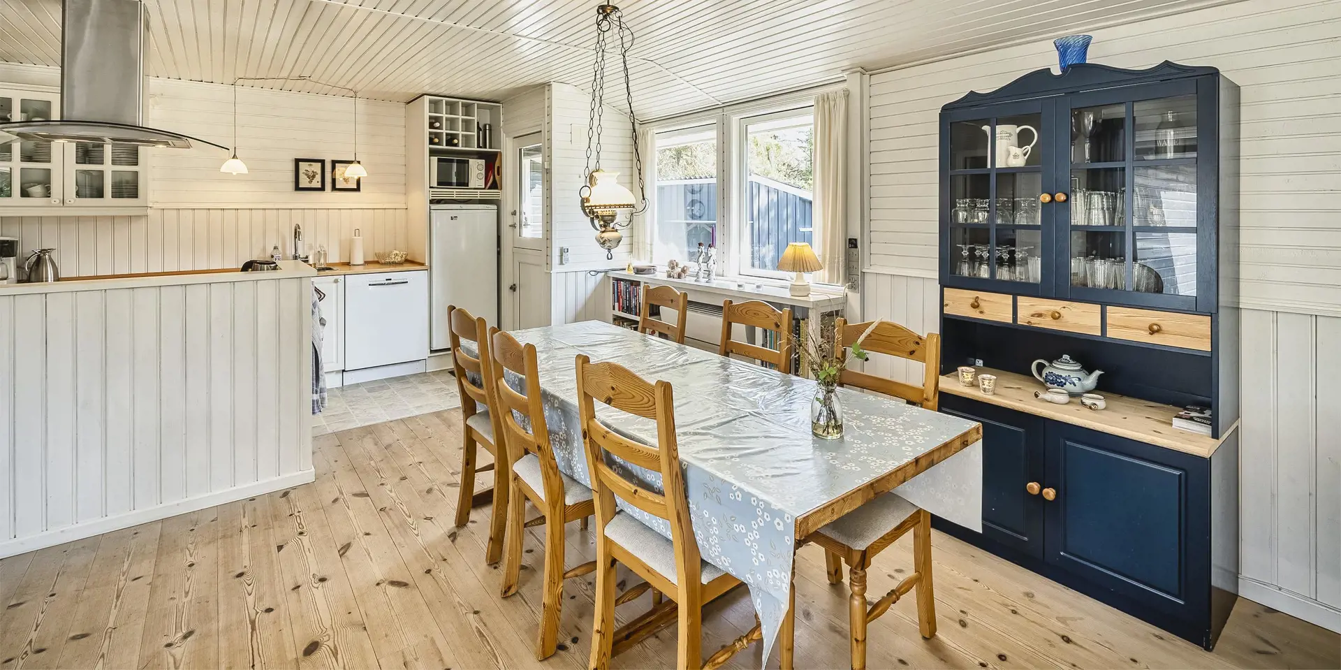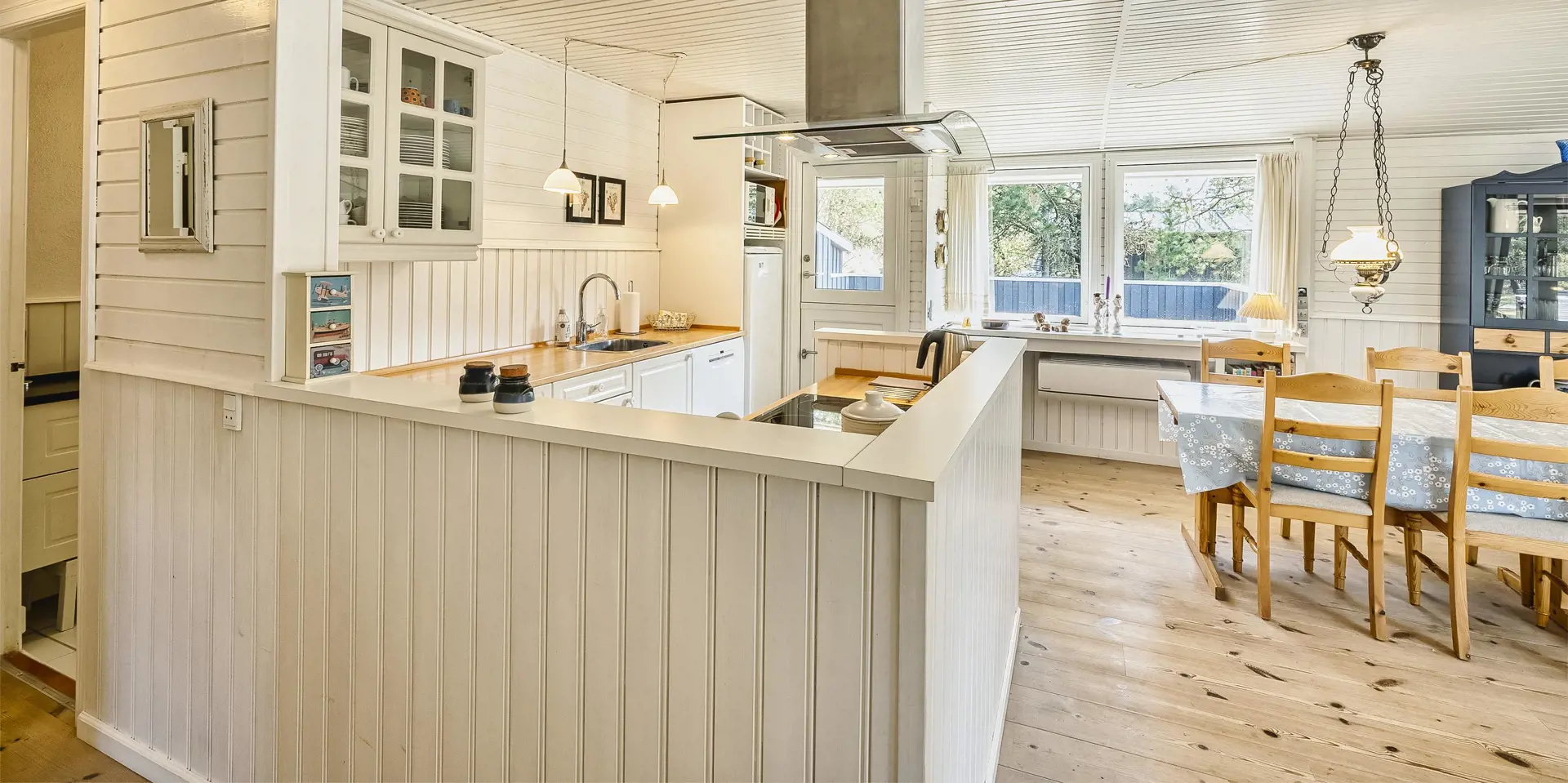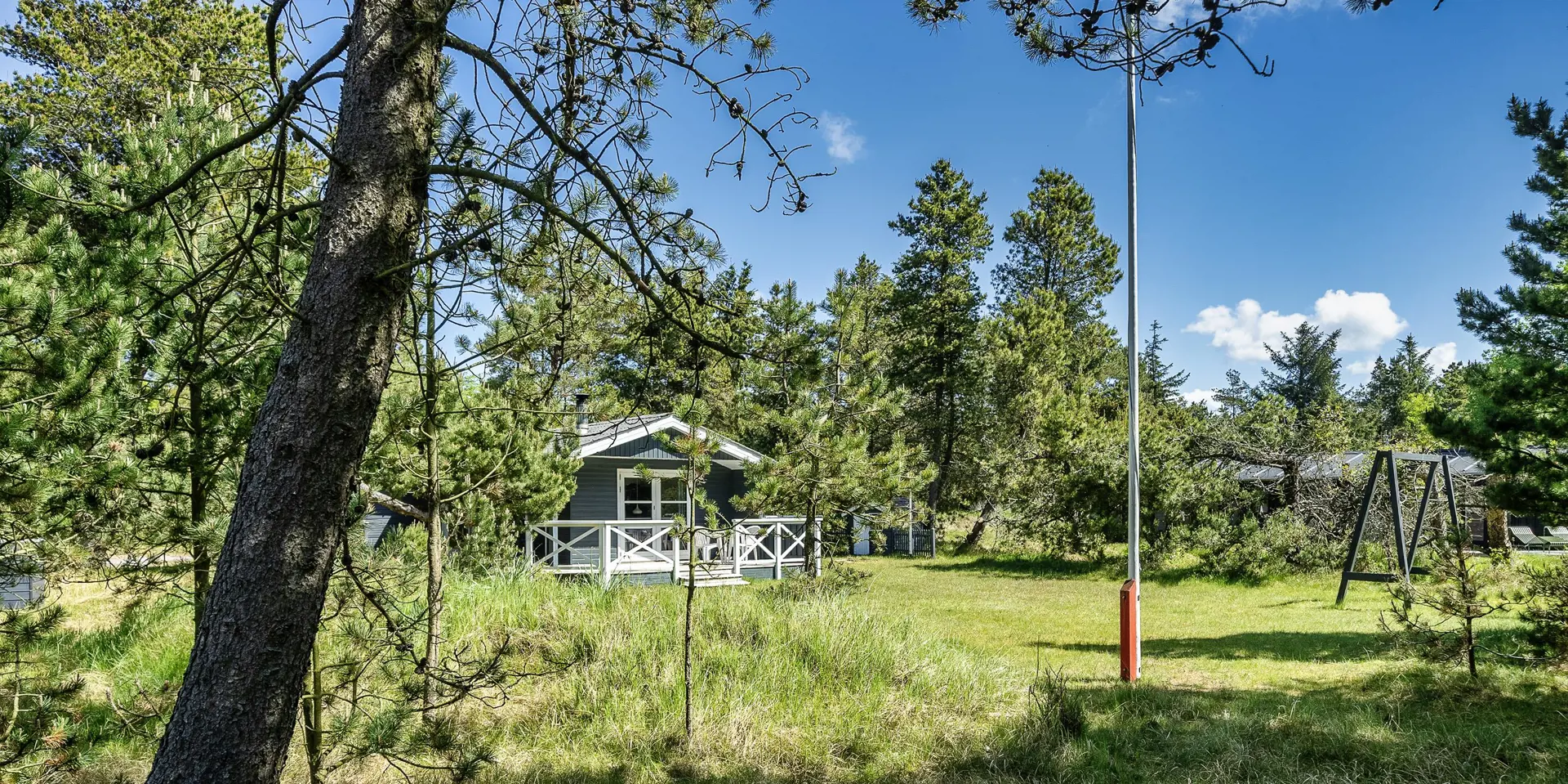 Gemütliches Ferienhaus am Ende einer Sackgasse und auf einem naturbelassenen Grundstück gelegen. Das Ferienhaus ist für 4-6 Personen ausgestattet. Der Strand ist ca. 2 Km vom Haus entfernt. In den Wohn- und Schlafzimmern ist ein schöner Holzfußboden verlegt. In dem Wohnzimmer ist ein Kamin aufgestellt und sorgt für eine wohlige Wärme und die dänische “hygge” Gemütlichkeit. Es befindet sich eine Warmepumpe im Ferienhaus. Mit dieser Warmepumpe haben sie die Möglichkeit die Stromkosten zu senken, denn die Warmepumpe ist energiesparend. Das deutsche Fernsehprogramm empfangen sie über eine Parabolantenne. Der Küchenbereich ist zum Wohn- und Essbereich offen gehalten und verfügt über einen Herd mit Cerankochfeld, einem Backofen, einer Geschirrspülmaschine, einer Mikrowelle und einem Kühlschrank. Das Badezimmer ist hell ausgestattet und hat ein WC, ein Handwaschbecken und eine Dusche. Insgesamt stehen den Gästen drei Schlafzimmer zur Verfügung. Alle drei Schlafzimmer verfügen über ein doppelbett.( 1x 140x200, 1x 160x200 und 1x 180x200). Eine Waschmaschine steht Ihnen auch zur Verfügung. Für die kleinen Gäste befindet sich auf dem Grundstück eine Sandkiste, ein Schaukelstativ und ein kleines Kinderspielhaus. Es sind zwei schöne Terrassenbereiche am Haus. Der eine Bereich ist sogar sehr geschützt. Das Ferienhaus verfügt über einen Internetzugang (W-Lan). Es sind 2 Haustiere erlaubt. Das Ferienhaus ist 1968 erbaut worden.