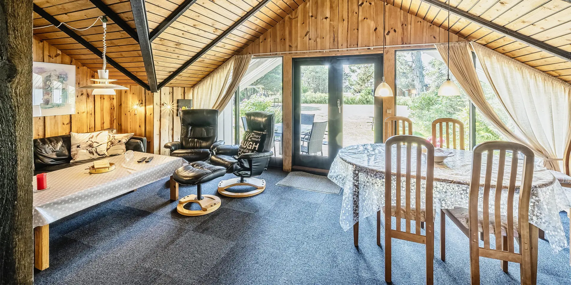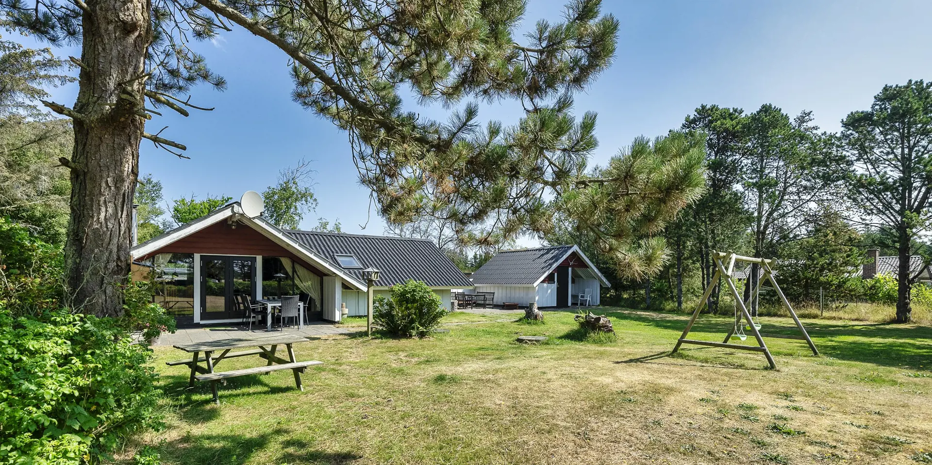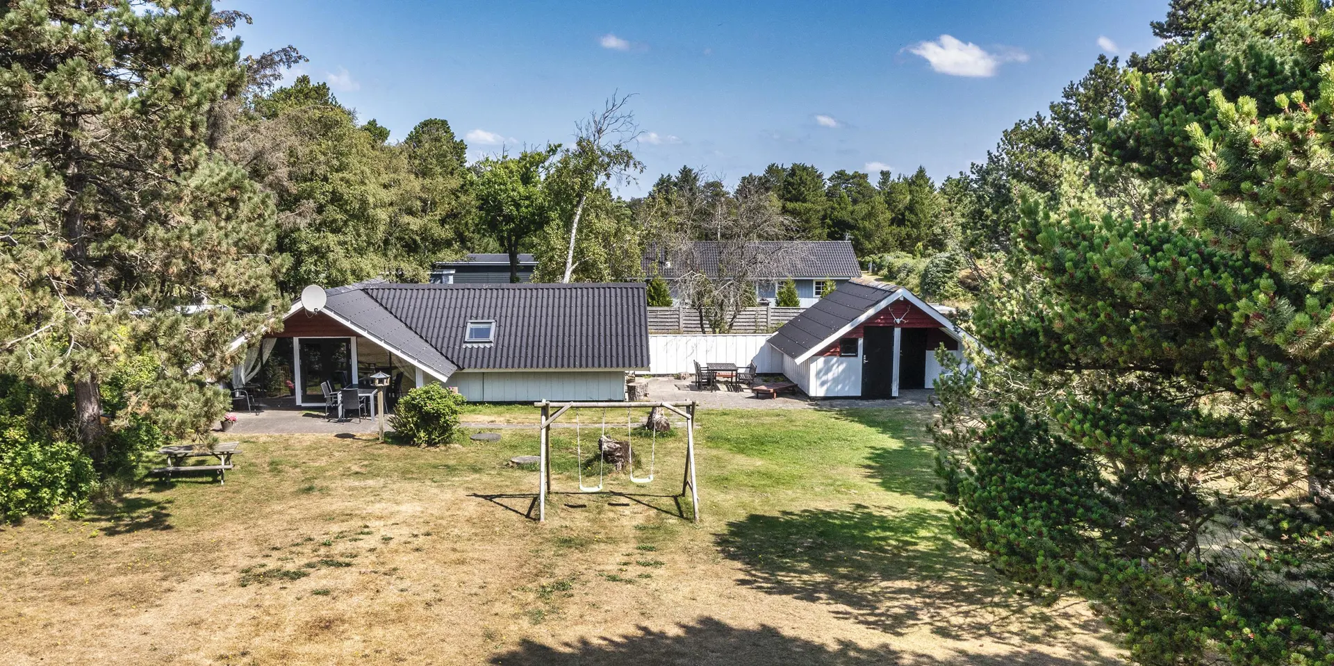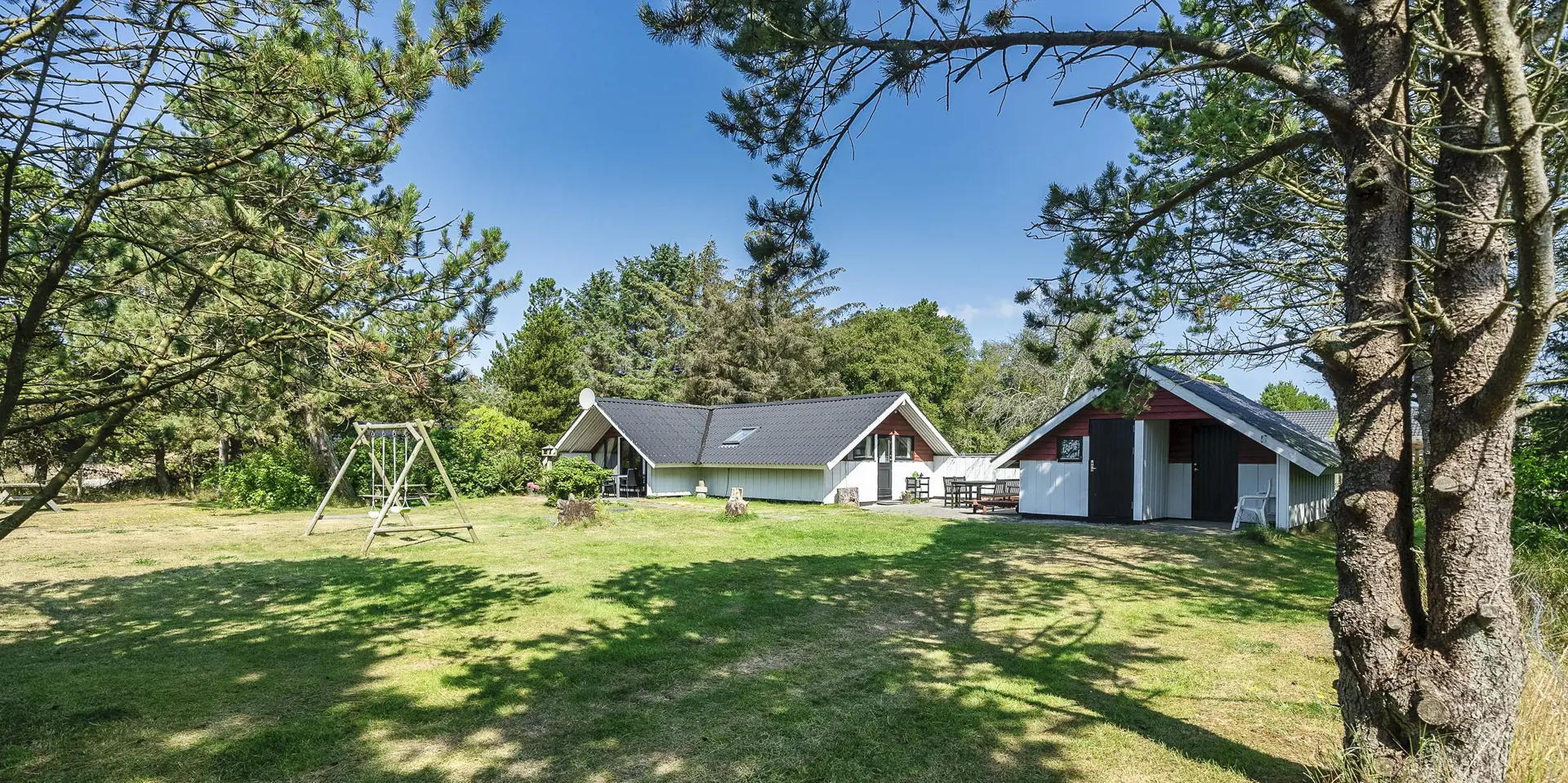 Einfaches älteres Ferienhaus auf einem großen geschlossenem Naturgrundstück gelegen. Das Ferienhaus ist für 6 Personen ausgestattet. Der Strand ist ca. 1,6 Km vom Haus entfernt. Das Wohnzimmer ist mit dem Essplatz zusammen und offen zum Küchenbereich. Im Wohn- und Essbereich ist ein Kamin aufgestellt sowie eine Wärmepumpe. Das deutsche Fernsehprogramm empfangen sie über eine Parabolantenne, ausserdem gibt es auch Smart TV. Die Küche ist einfach in der Ausstattung und verfügt über einen Herd mit Kochplatten, einem Backofen, einer Mikrowelle und einer Kühl- und Gefrierkombination. Das Badezimmer verfügt über ein WC, ein Handwaschbecken und eine Dusche. Es gibt insgesamt drei Schlafzimmer im Ferienhaus: 2B + 2B + 2B. Ein Schlafzimmer hat zwei Einzelbetten und die beiden anderen verfügen über je ein Etagenbett. Zwei Terrassenbereiche am Haus laden zum entspannen ein. Das besondere bei diesem Ferienhaus ist, das das Grundstück komplett eingezäunt ist. Hier haben Ihre Vierbeiner Platz zum Toben und spielen ohne, das sie stiften gehen können. Auch die Kleinen Gäste haben genügend Platz zum Spielen. Das Grundstück ist eingezäunt. Das Ferienhaus verfügt über einen Internetanschluss (W-Lan). Das Rauchen im Ferienhaus ist nicht erlaubt. Es sind max. drei Haustiere erlaubt. Das Ferienhaus wurde 1977 erbaut.