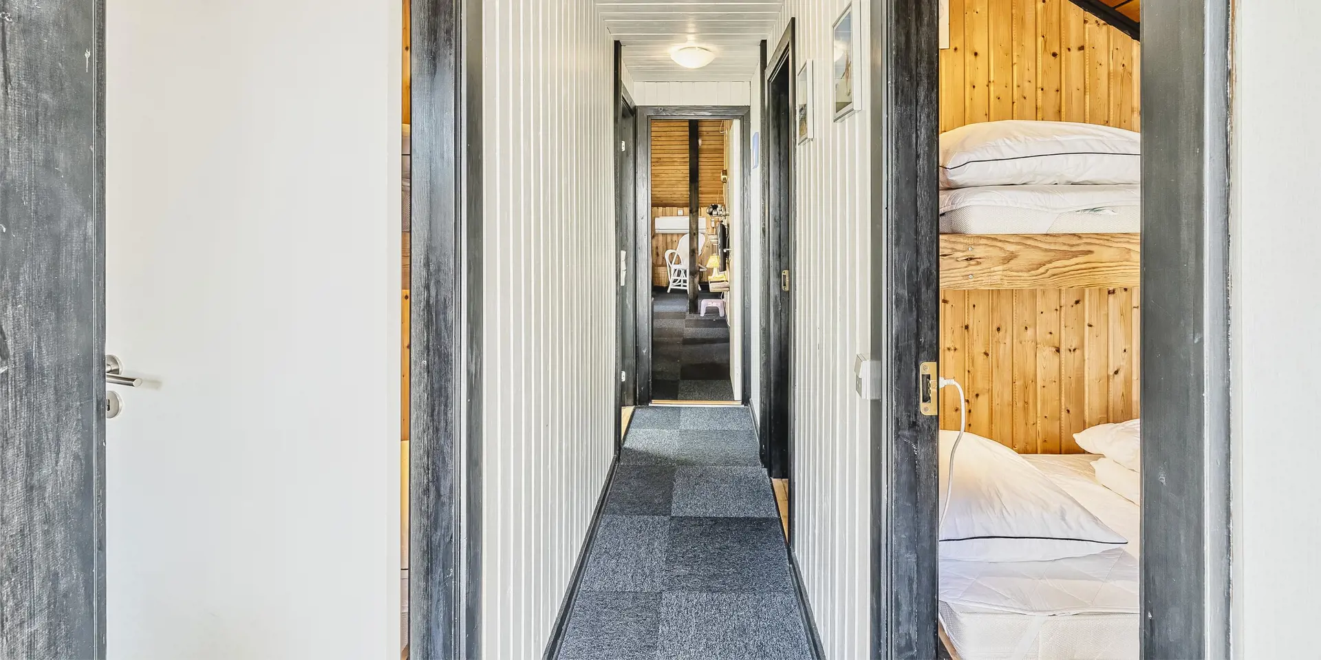 3 Schlafzimmer. 1 mit 2 Einzelbetten (je 90x200 cm). 2 mit Etagenbetten.