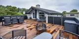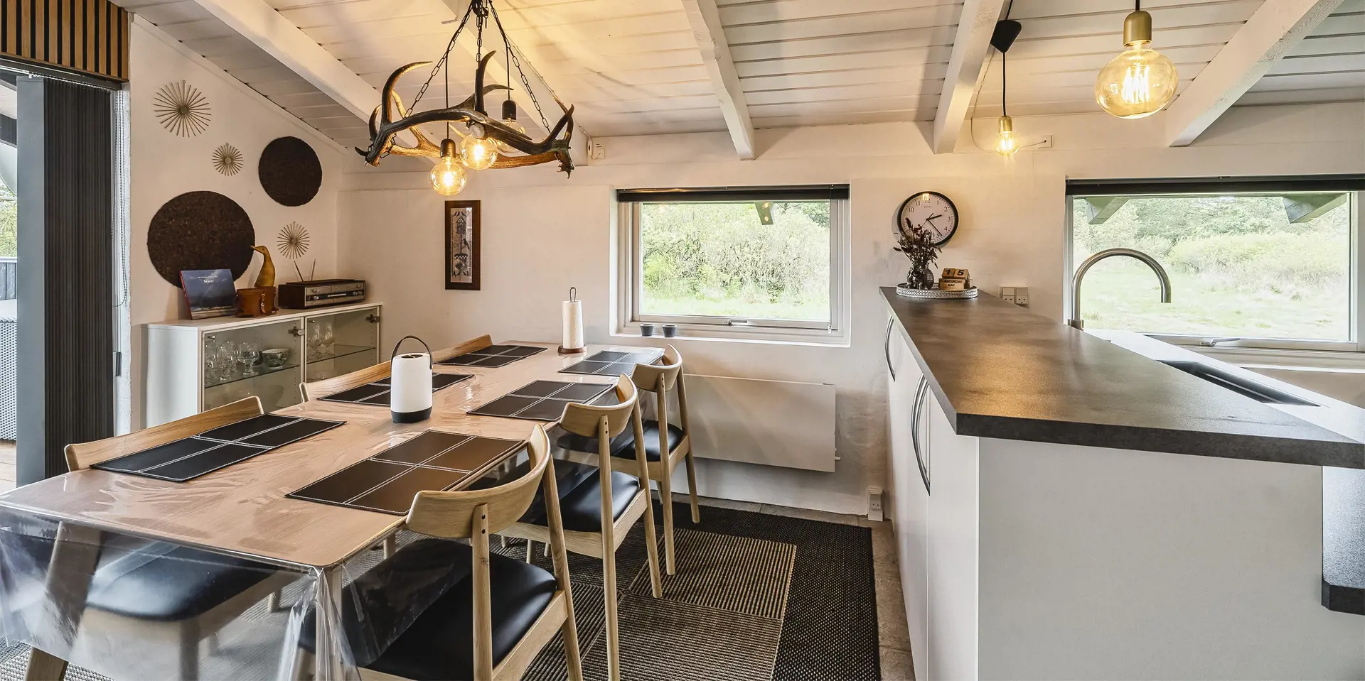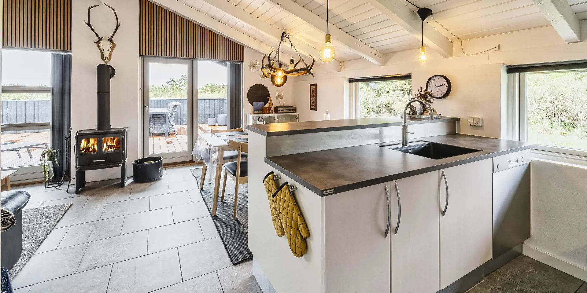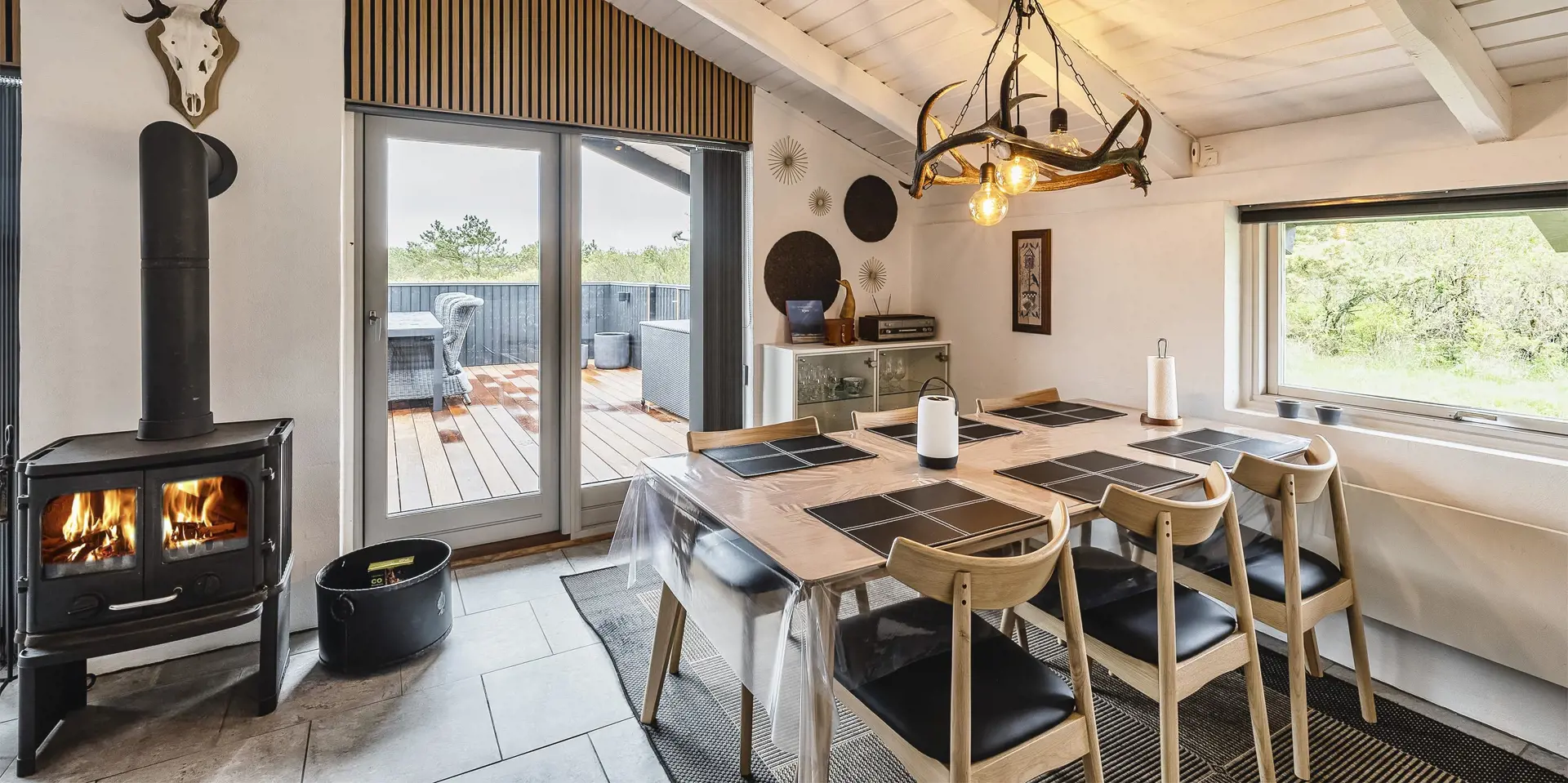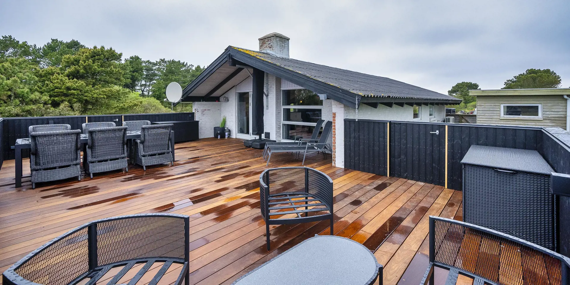 Helles, gemütliches Ferienhaus für 5 Personen auf einem grosszügigen, offenen und gepflegtem Naturgrundstück gelegen. Der Strand ist ca. 1 Km vom Ferienhaus entfernt. Das Wohnzimmer ist mit dem Essbereich und der Küche offen gehalten. Hier zwischen Wohnecke und Essbereich steht ein Kamin. Das deutsche Fernsehprogramm empfangen Sie über eine Parabolantenne. In dem Küchenbereich befinden sich ein Herd mit Cerankochfeld, ein Backofen, eine Mikrowelle, eine Geschirrspülmaschine und eine Kühl- und Gefrierkombination. Das neue hübsche Badezimmer (von 2015) verfügt über ein WC, ein Handwaschbecken und einer Dusche. Die Waschmaschine ist hier auch untergebracht. Es gibt insgesamt drei Schlafzimmer im Ferienhaus: DB + DB + B. . Der Terrassenbereich am Ferienhaus ist geschlossen und ein kleiner Teil ist sogar überdacht. Auf dem Grundstück befindet sich ein Schaukelstativ für die kleinen Gäste und ein Carport bietet Platz für Ihr Fahrzeug. Am Carport direkt ist ein Schuppen, den Sie mit nutzten können z. B. für das Unterstellen von Fahrrädern. Das Ferienhaus verfügt über einen Internetanschluss. Wärmepumpe. Das Rauchen im Ferienhaus ist nicht erlaubt. 1 Haustiere ist erlaubt. Für dieses Haus fallen zusätzlich Wasserkosten an. Das Ferienhaus ist in 1983 erbaut worden und wurde laufend renoviert.