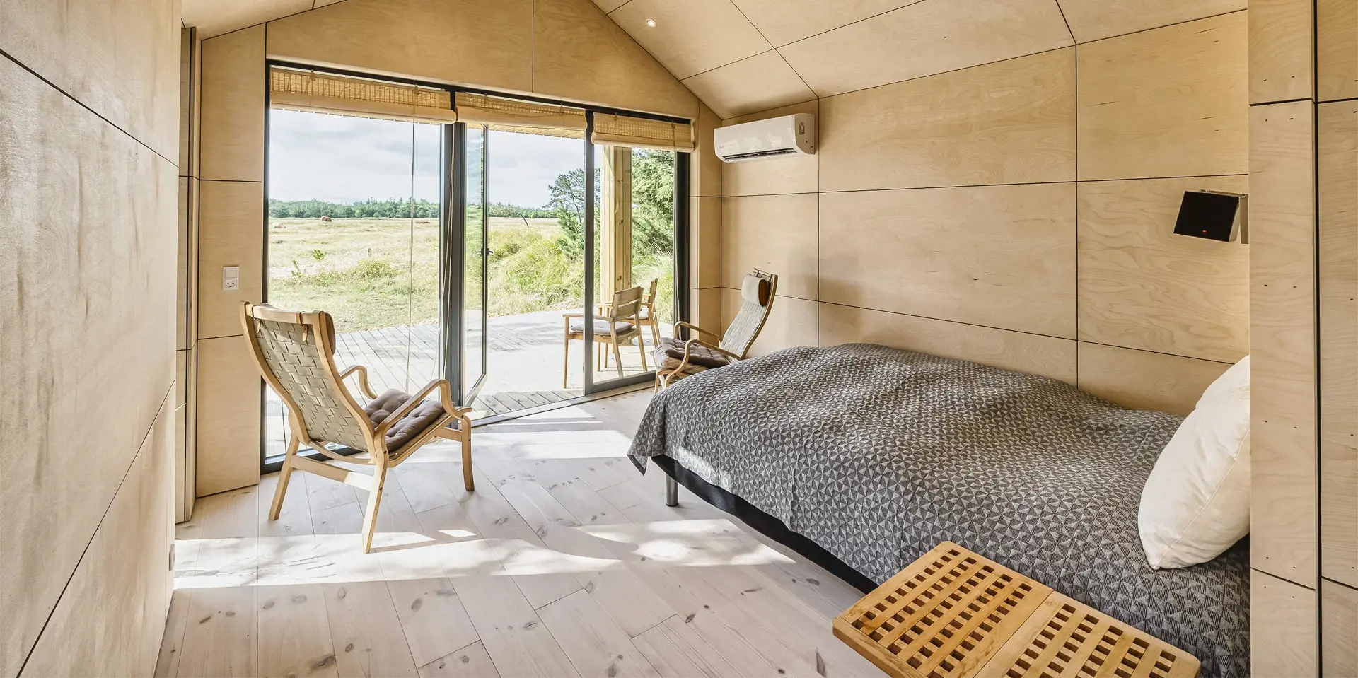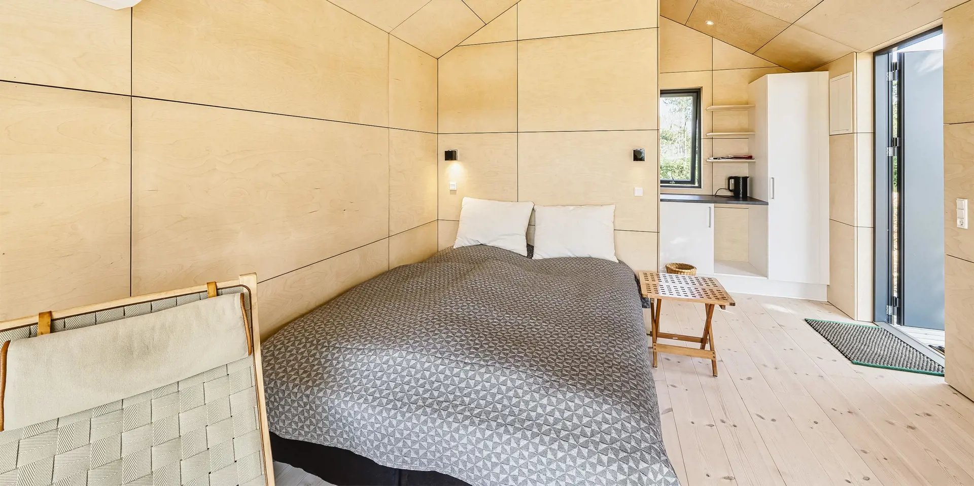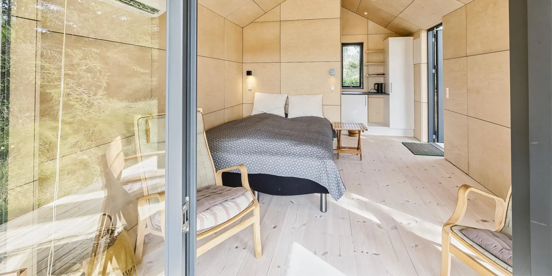 Ein kleines Gästehaus mit einem grossen Panoramafenster wurde in 2021 gebaut. Auch von hier haben Sie einen wundervollen und ungestörten Blick. Hier können Sie das Naturgeschen und die Tierwelt ungestört und hautnah beobachten. Das Gästehaus hat ein Schlafzimmer, das mit einem Doppelbett und Kleiderschrank ausgestattet ist und eine kleine Teeküche. Ein weiteres Badezimmer befindet sich auch hier im Gästehaus. Es verfügt über ein Handwaschbecken, ein WC und eine Dusche. Bitte keine Haustiere im Gästehaus: wegen Allergie.