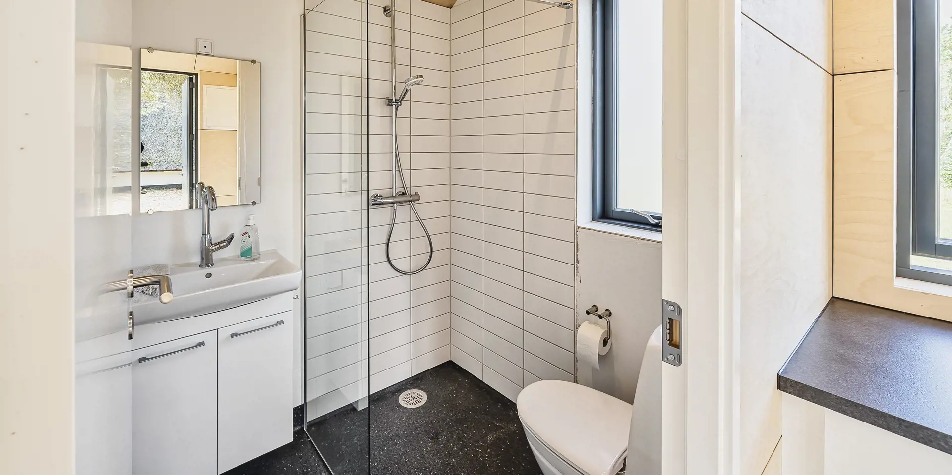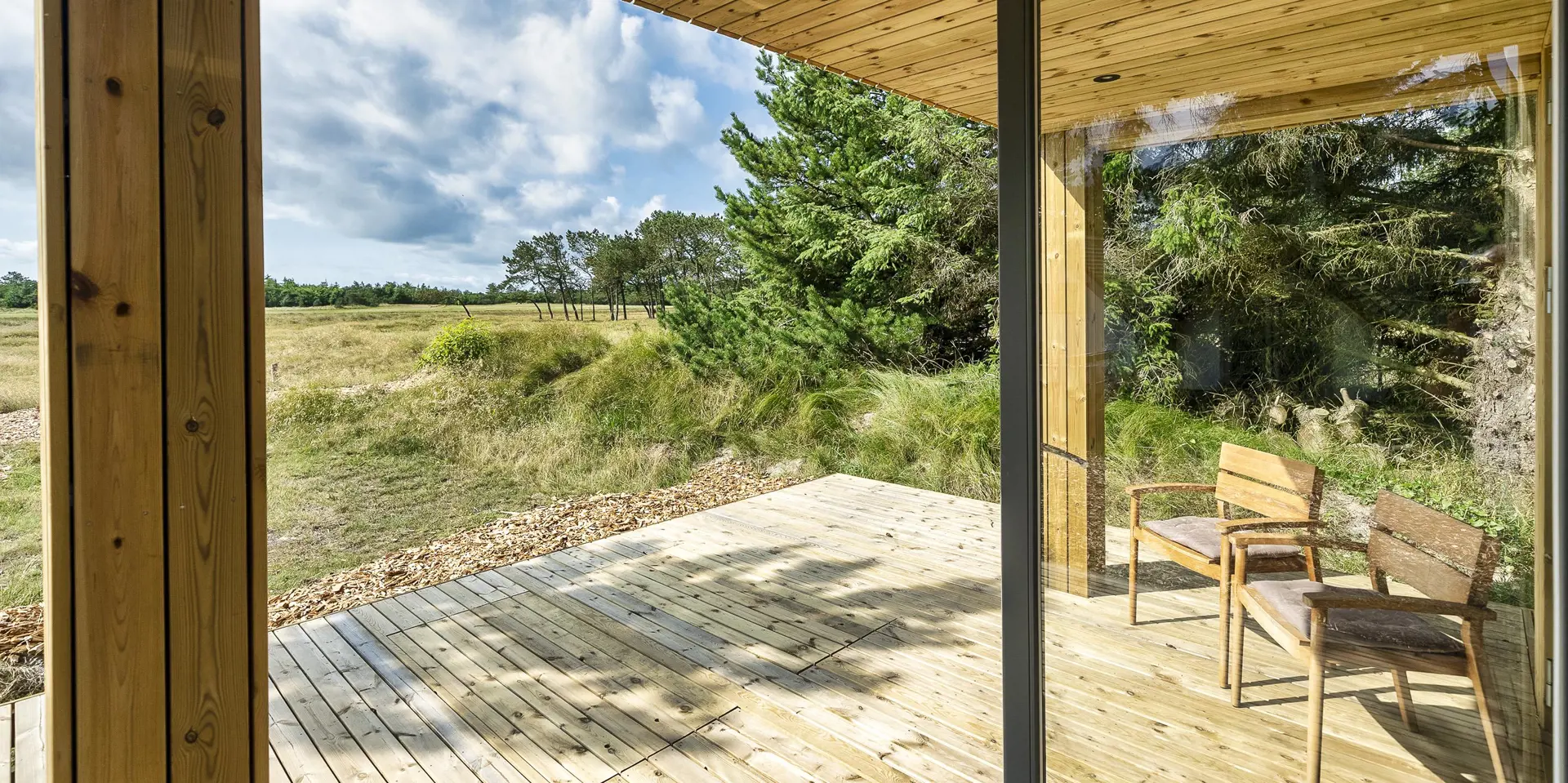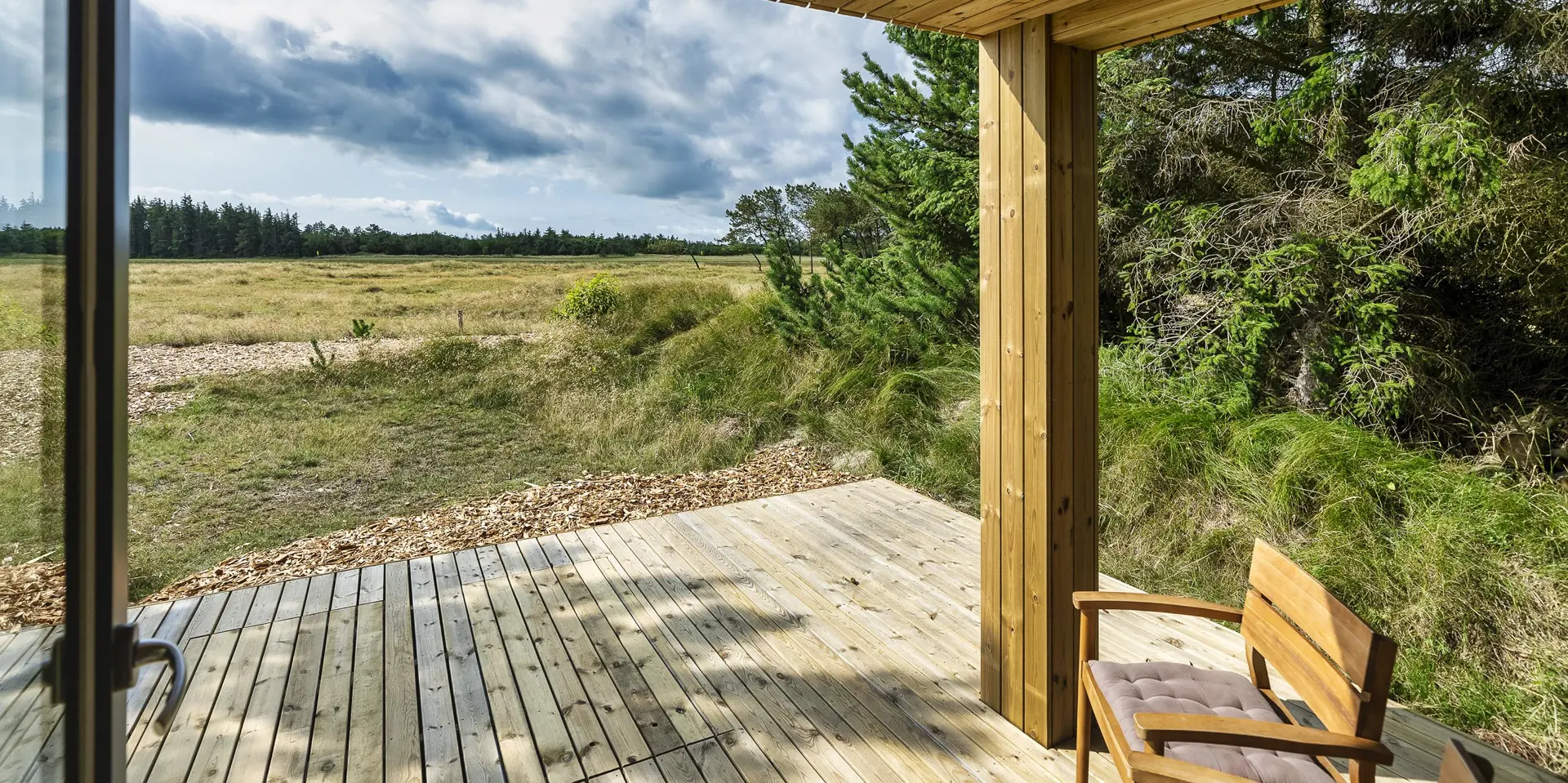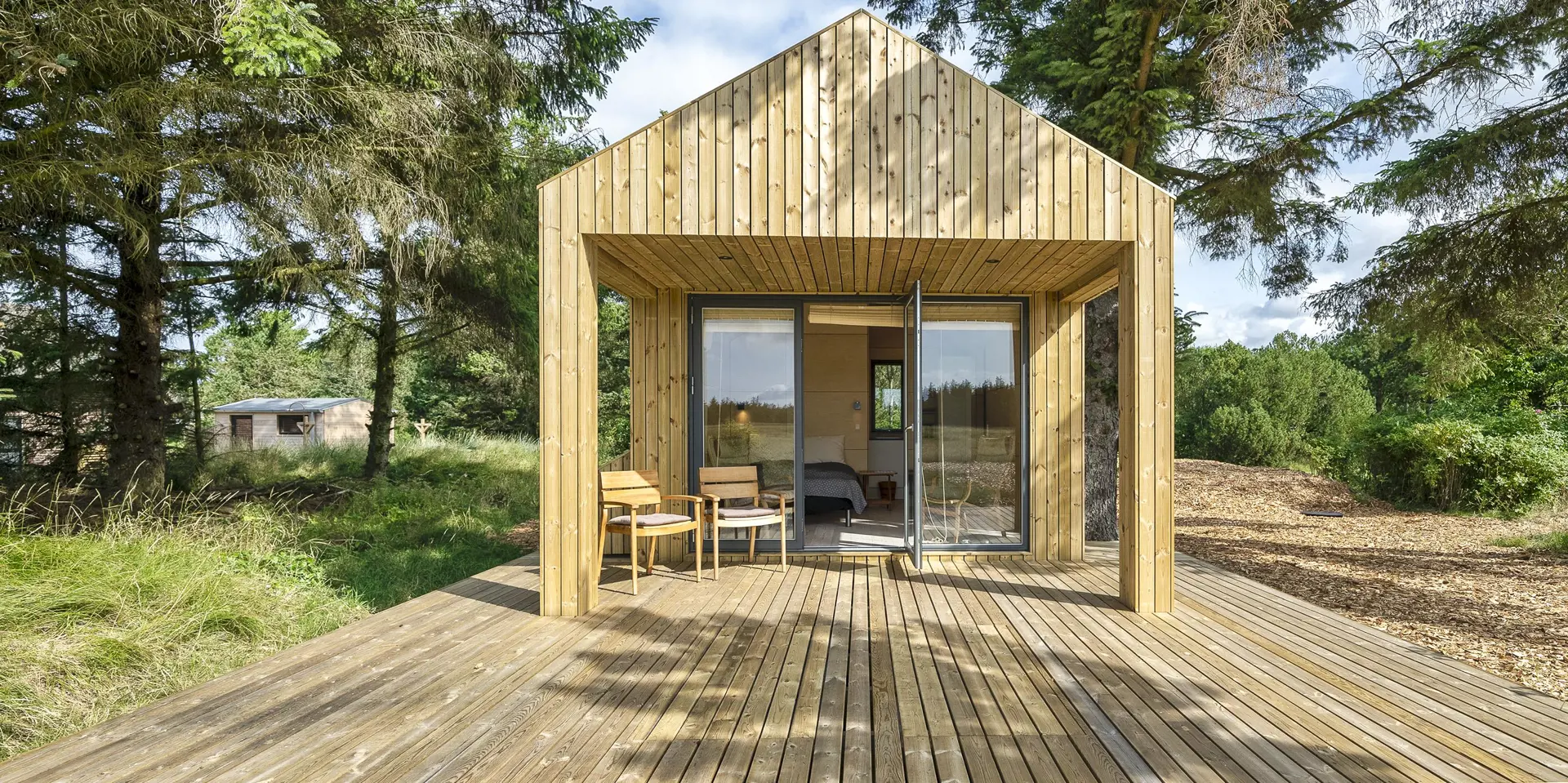 Ein kleines Gästehaus mit einem grossen Panoramafenster wurde in 2021 gebaut. Auch von hier haben Sie einen wundervollen und ungestörten Blick. Hier können Sie das Naturgeschen und die Tierwelt ungestört und hautnah beobachten. Das Gästehaus hat ein Schlafzimmer, das mit einem Doppelbett und Kleiderschrank ausgestattet ist und eine kleine Teeküche. Ein weiteres Badezimmer befindet sich auch hier im Gästehaus. Es verfügt über ein Handwaschbecken, ein WC und eine Dusche. Bitte keine Haustiere im Gästehaus: wegen Allergie.