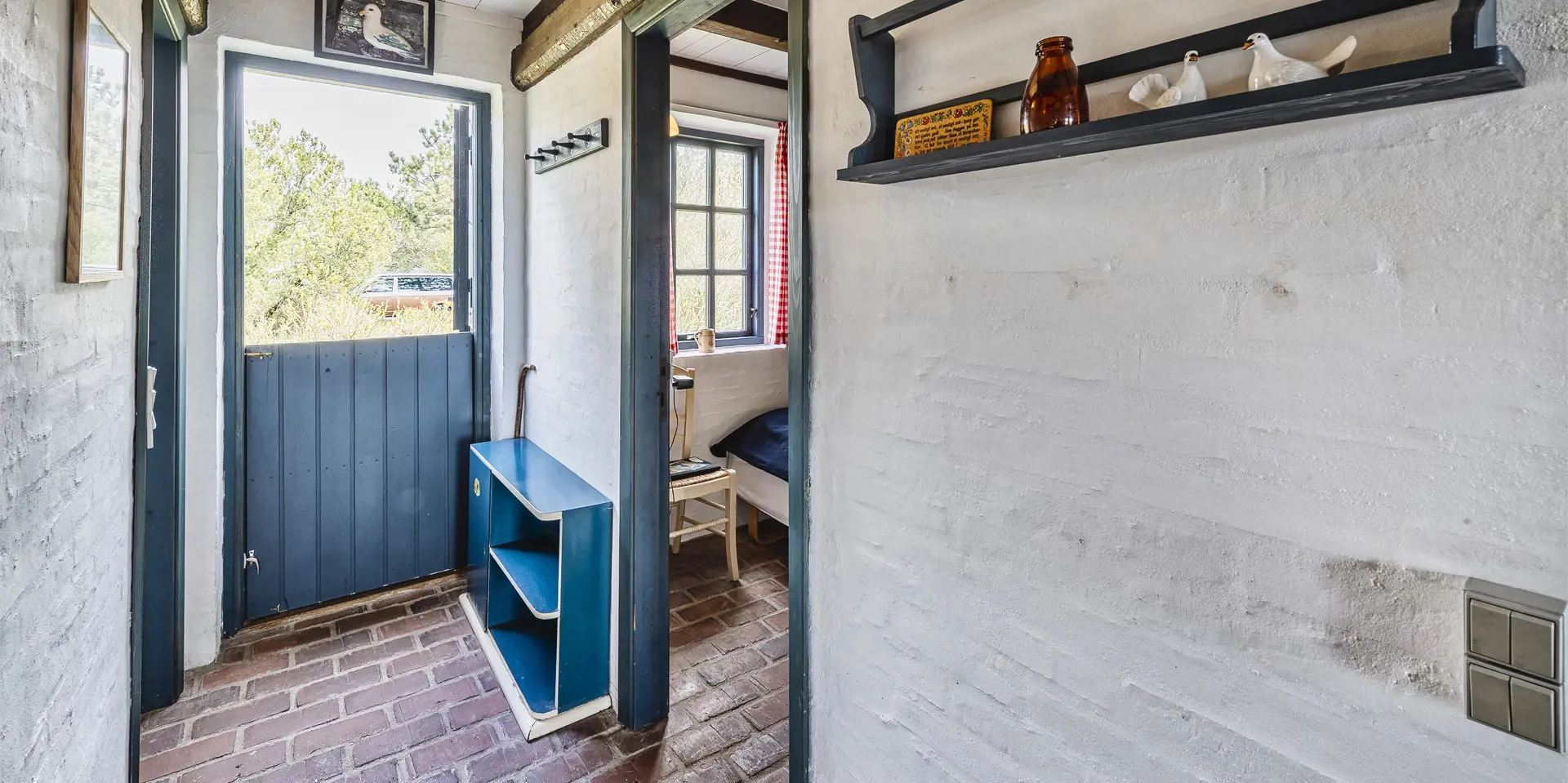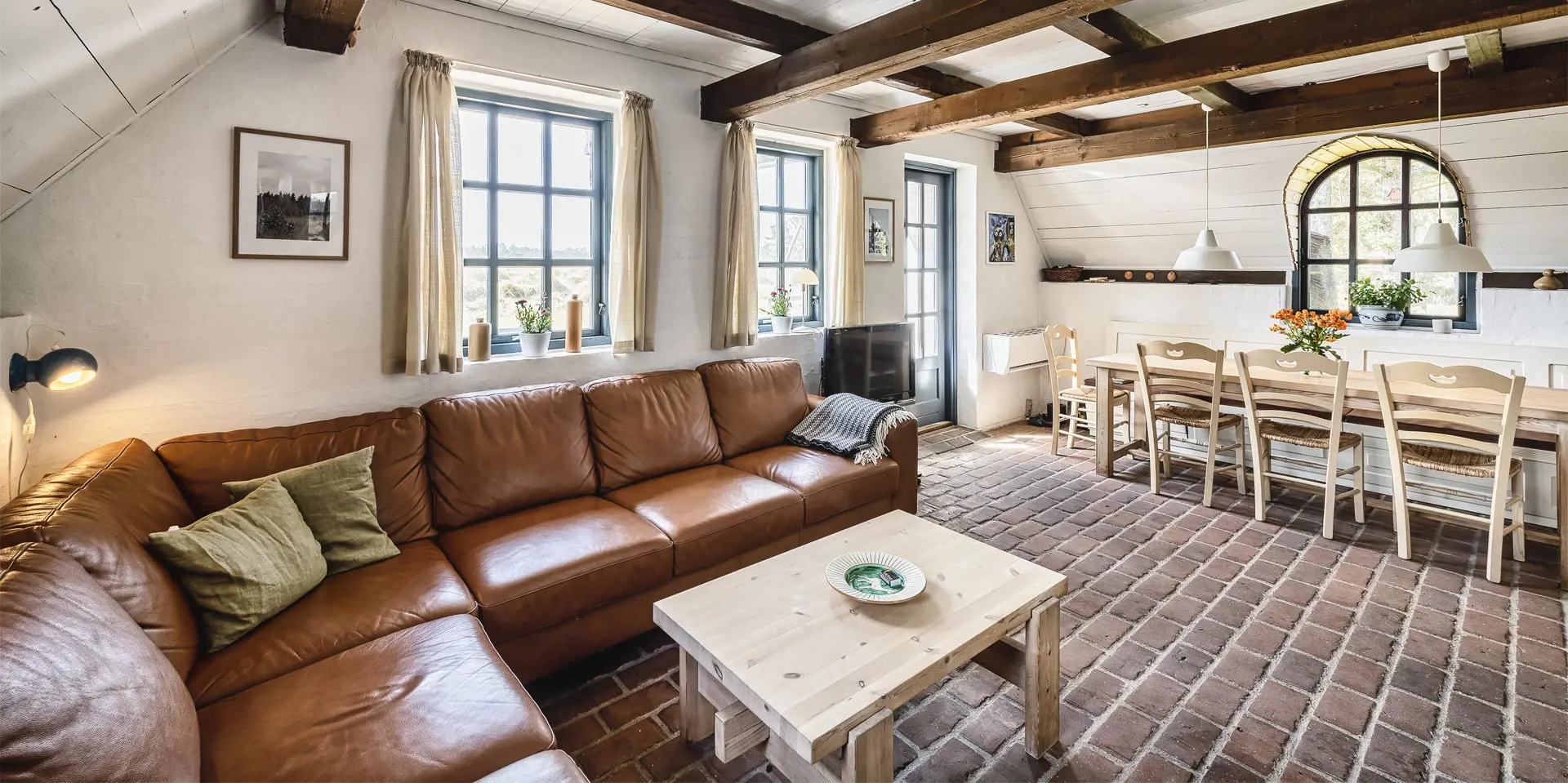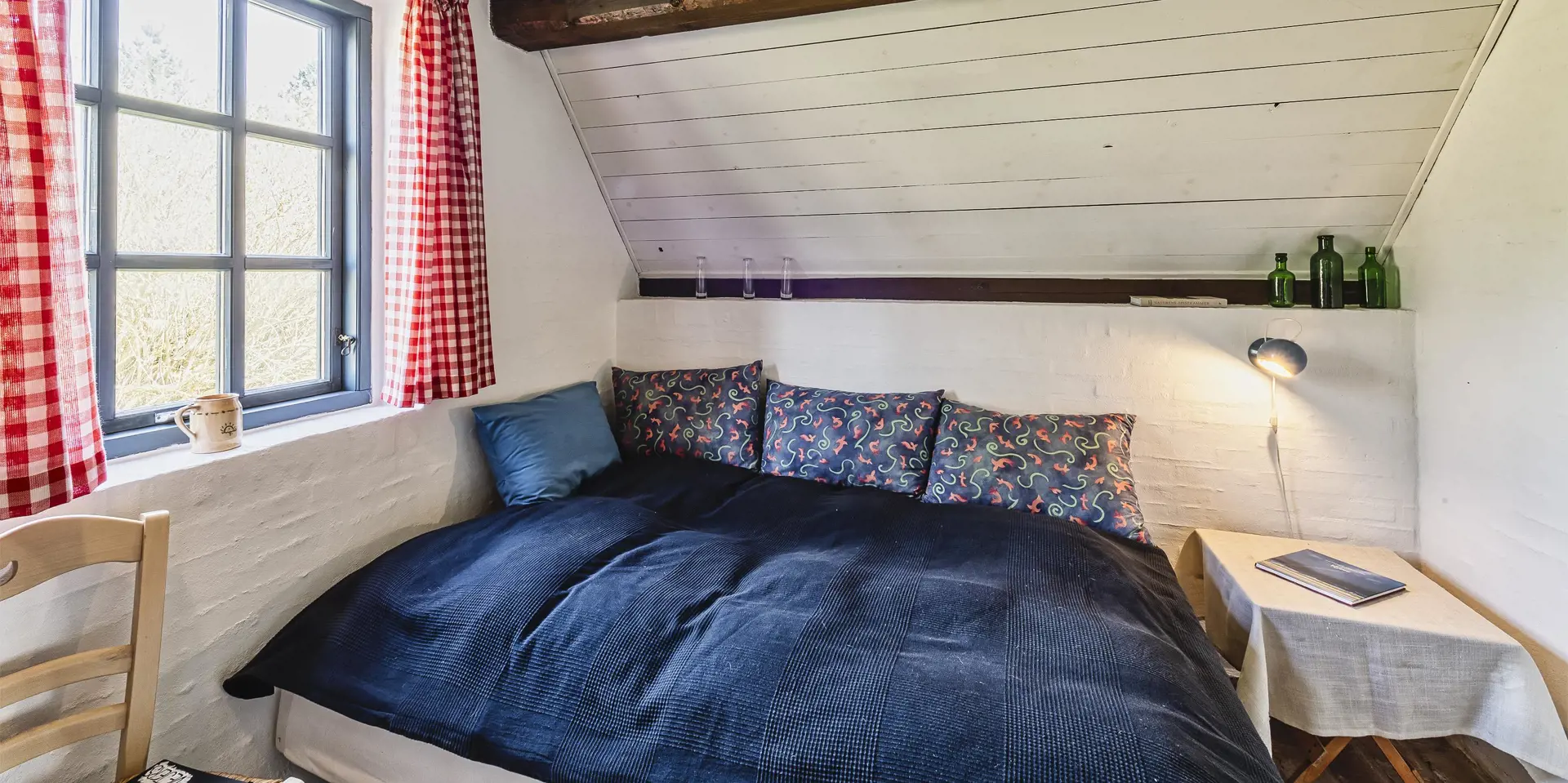 Urgemütlich und rustikal eingerichtetes Reetdachhaus auf einem grossem Naturgrundstück am Randes des Naturschutzgebietes gelegen mit wundervollem Blick auf Feld und Wiese. Das Ferienhaus ist für 4 bis 6 Personen ausgestattet und die Räumlichkeiten sind über zwei Ebenen verteilt. Der Strand ist ca. 1,2 Km vom Ferienhaus entfernt. Im kompletten Erdgeschoss ist der Fussboden mit Ziegelsteinen ausgelegt. Im Erdgeschoss befindet sich der Wohn- und Essbreich, die Küche, das Badezimmer und ein Schlafzimmer. Im kompletten Erdgeschoss sind die Deckenbalken sichtbar und bringen den gewissen Charme ins Haus. Der Wohnbereich hat eine gemütliche Leder-Rundsitzecke und verfügt über einen Kamin. Das Fernsehprogramm empfangen Sie mit Chromcast. Eine Holzbank bietet am Essplatz genügend Sitzmöglichkeiten, dazu stehen noch weitere Esszimmerstühle zur Verfügung. Die Offene Wohnküche ist in einem Landhausstil eingerichtet und verfügt über einen Herd mit Platten, einer Mikrowelle, einer Geschirrspülmaschine und einem Kühlschrank mit kleinem Gefrierfach von15 x 45 cm. Das Badezimmer hat ein WC, ein Handwaschbecken und eine Dusche. Eine Warmepumpe befindet sich ebenfalls im Ferienhaus. Mit dieser Warmepumpe haben Sie die Möglichkeit die Stromkosten zu senken, da sie energiesparnd ist. Hier im Erdgeschoss befindet sich ein von den drei Schlafzimmern, das verfügt über ein Doppelbett (160 x 200). über eine steile Trepp gelangen Sie dnn ins obere Geschoss. Im Obergeschoss befinden sich dann zwei weitere Schlafzimmer, das eine verfügt über ein Schlafsofa (140 x 200) und einen Schreibtisch und mit einem tollen Blick auf Feld und Wiese und den schönen kleinen Aarrildsø. Das zweite Schlafzimmer verfügt über zwei Einzelbetten und hat einen Zugang zu einem Balkon, wobei Sie hier vom Balkon den Blick auf Feld und Wiese in vollen Zügen geniessen können. Eine Waschmaschine steht den Gästen auch zur Verfügung. Das Ferienhaus verfügt über einen Internetanschluss (W-Lan). Das Rauchen im Ferienhaus ist nicht erlaubt. Es ist max. 1 Haustier erlaubt. Von der grosszügigen Terrasse haben Sie einen wundervollen Blick auf Feld und Wiese. Ein kleiner Teil der Terrasse ist sogar überdacht. Die Sauna ist in einem Nebengebäude. Desweiteren gibt es noch eine Aussendusche, allerdings nur mit kaltem Wasser. Schöne Holzterrasse mit tollem Blick. Das Ferienhaus ist in 1977 erbaut worden und kontinuierlich renoviert.