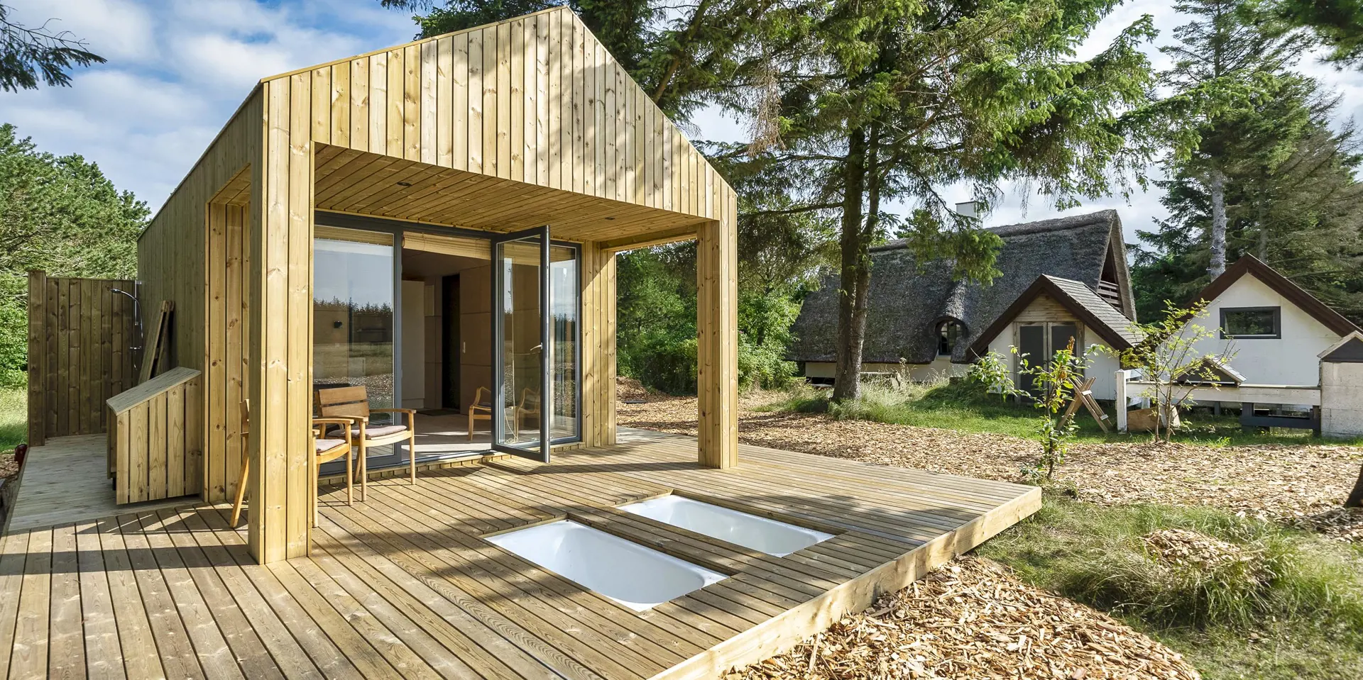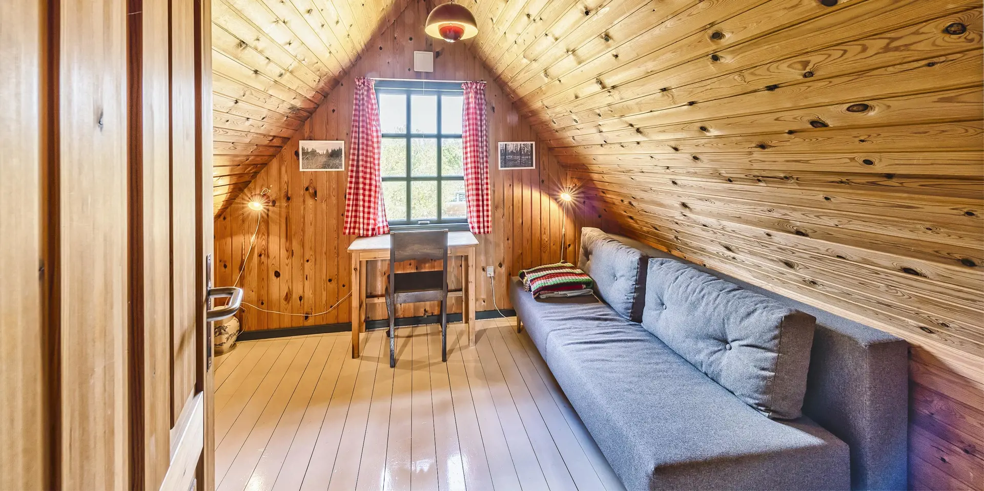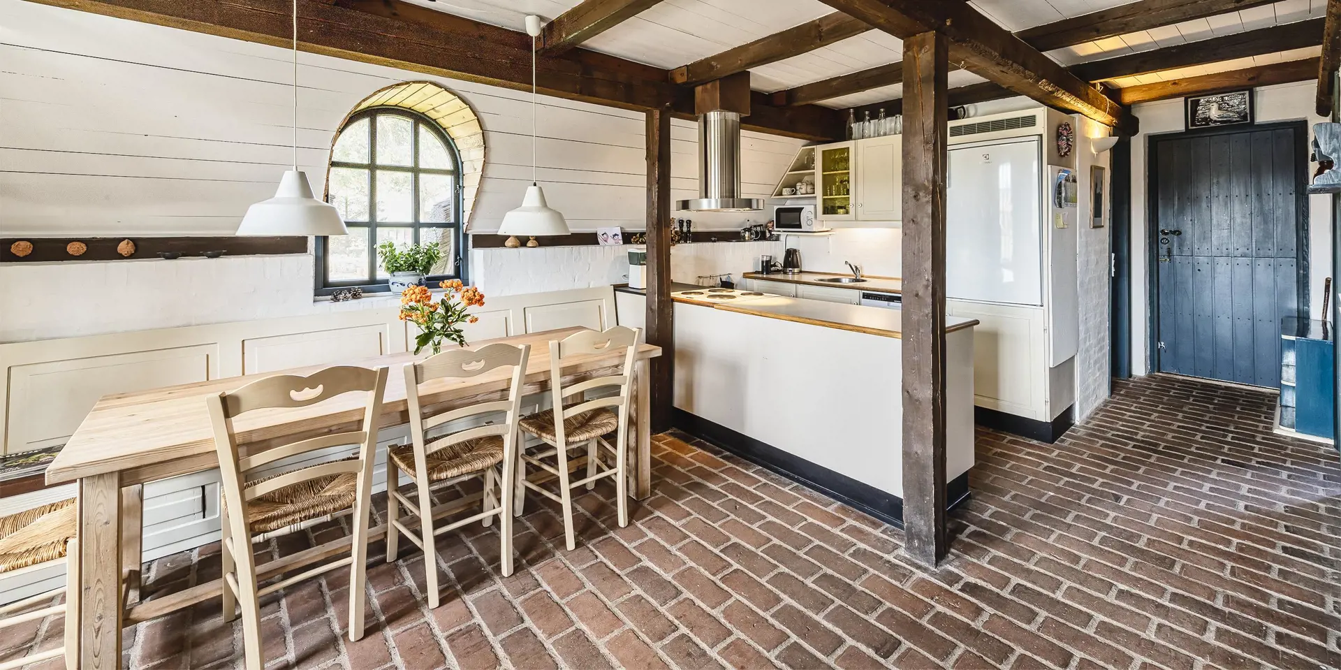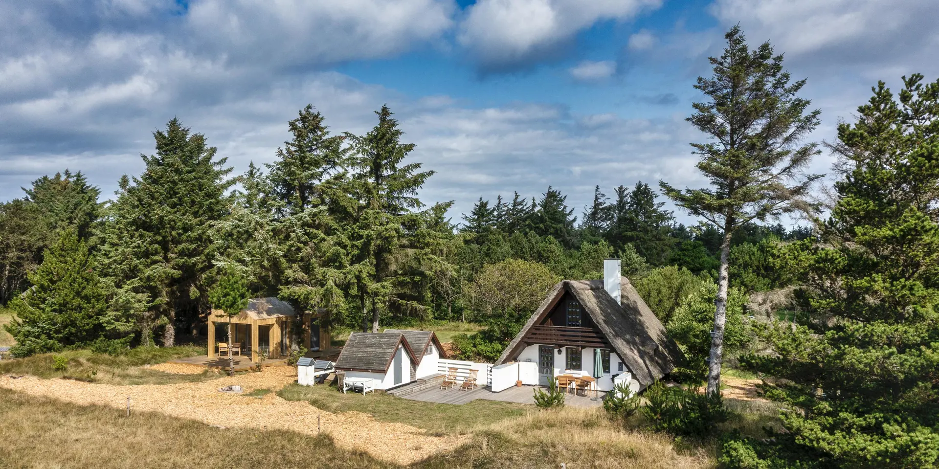 Urgemütlich und rustikal eingerichtetes Reetdachhaus auf einem grossem Naturgrundstück am Randes des Naturschutzgebietes gelegen mit wundervollem Blick auf Feld und Wiese. Das Ferienhaus ist für 4 bis 6 Personen ausgestattet und die Räumlichkeiten sind über zwei Ebenen verteilt. Der Strand ist ca. 1,2 Km vom Ferienhaus entfernt. Im kompletten Erdgeschoss ist der Fussboden mit Ziegelsteinen ausgelegt. Im Erdgeschoss befindet sich der Wohn- und Essbreich, die Küche, das Badezimmer und ein Schlafzimmer. Im kompletten Erdgeschoss sind die Deckenbalken sichtbar und bringen den gewissen Charme ins Haus. Der Wohnbereich hat eine gemütliche Leder-Rundsitzecke und verfügt über einen Kamin. Das Fernsehprogramm empfangen Sie mit Chromcast. Eine Holzbank bietet am Essplatz genügend Sitzmöglichkeiten, dazu stehen noch weitere Esszimmerstühle zur Verfügung. Die Offene Wohnküche ist in einem Landhausstil eingerichtet und verfügt über einen Herd mit Platten, einer Mikrowelle, einer Geschirrspülmaschine und einem Kühlschrank mit kleinem Gefrierfach von15 x 45 cm. Das Badezimmer hat ein WC, ein Handwaschbecken und eine Dusche. Eine Warmepumpe befindet sich ebenfalls im Ferienhaus. Mit dieser Warmepumpe haben Sie die Möglichkeit die Stromkosten zu senken, da sie energiesparnd ist. Hier im Erdgeschoss befindet sich ein von den drei Schlafzimmern, das verfügt über ein Doppelbett (160 x 200). über eine steile Trepp gelangen Sie dnn ins obere Geschoss. Im Obergeschoss befinden sich dann zwei weitere Schlafzimmer, das eine verfügt über ein Schlafsofa (140 x 200) und einen Schreibtisch und mit einem tollen Blick auf Feld und Wiese und den schönen kleinen Aarrildsø. Das zweite Schlafzimmer verfügt über zwei Einzelbetten und hat einen Zugang zu einem Balkon, wobei Sie hier vom Balkon den Blick auf Feld und Wiese in vollen Zügen geniessen können. Eine Waschmaschine steht den Gästen auch zur Verfügung. Das Ferienhaus verfügt über einen Internetanschluss (W-Lan). Das Rauchen im Ferienhaus ist nicht erlaubt. Es ist max. 1 Haustier erlaubt. Von der grosszügigen Terrasse haben Sie einen wundervollen Blick auf Feld und Wiese. Ein kleiner Teil der Terrasse ist sogar überdacht. Die Sauna ist in einem Nebengebäude. Desweiteren gibt es noch eine Aussendusche, allerdings nur mit kaltem Wasser. Schöne Holzterrasse mit tollem Blick. Das Ferienhaus ist in 1977 erbaut worden und kontinuierlich renoviert.