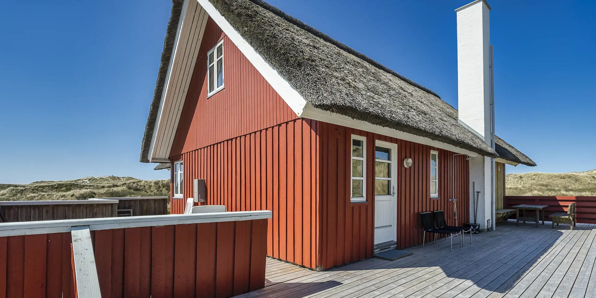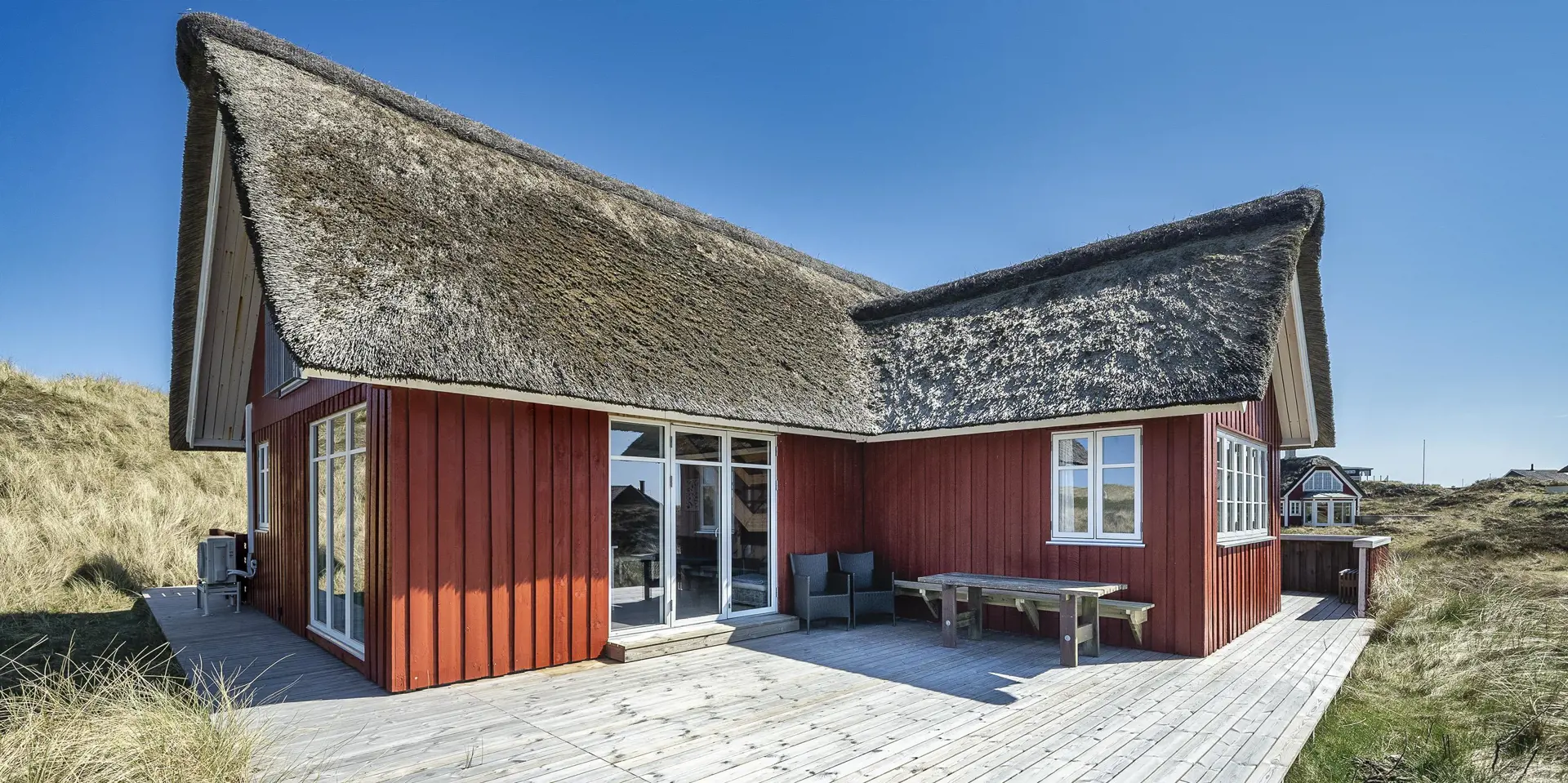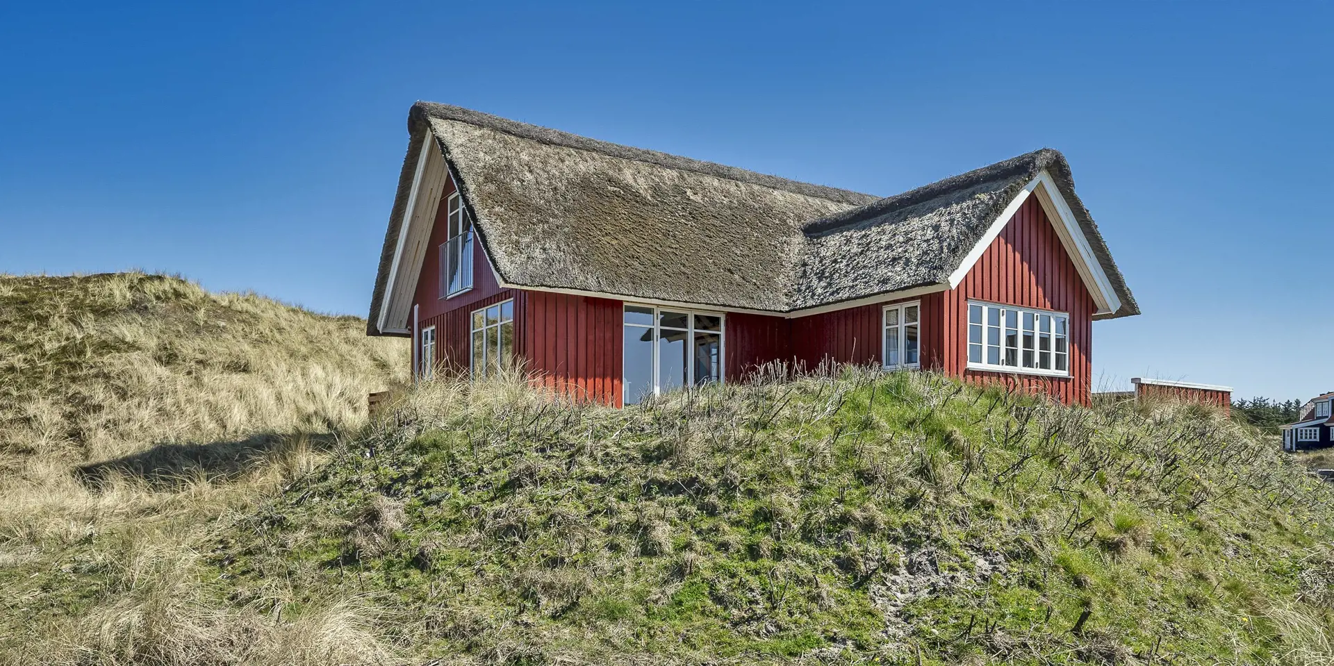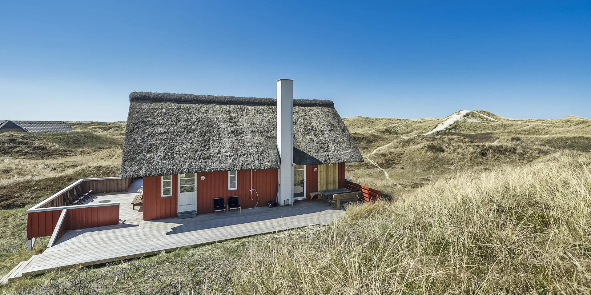 Gemütlich und rustikal eingerichtetes Reetdach-Ferienhaus über zwei Ebenen, auf einer Düne gelegen mit tollem Ausblick und für 6 Personen ausgestattet. Der Strand ist nur 100 Meter vom Ferienhaus entfernt. Sie erreichen Ihnen direkt über die Dünenkette. Das Wohnzimmer ist mit einem neuen Laminatboden ausgestettet worden, ebenso der Essbereich und die Küche. Wohn- und Essbereich sind mit dem Küchenbereich verbunden. Der Essbereich ist grosszügig und an dem Tisch finden alle Bewohner des Hauses genügend Platz. Ein Kamin strahlt hier eine angenehme Wärme aus und bringt somit dem ganzen den gemütlichem Charme rüber. Das deutsche Fernsehprogramm empfangen Sie über eine Parabolantenne. Zusätzlich gibt es eine Wärmepumpe im Ferienhaus. Mit dieser Wärmepumpe haben Sie die Möglichkeiten die Stromkosten zu senken, denn sie ist energiesparend. Die neue Einbauküche ist hell und freundlich und verfügt über ein Herd mit Cerankochfeld, einem Backofen, einer Geschirrrspülmaschine und einer Kühl- und Gefrierrkombination. Das Badezimmer ist einfach gehalten und hat ein WC, ein Handwaschbecken und eine Dusche. Die Waschmaschine ist auch hier im Badezimmer untergebracht. Es gibt insgesamt drei Schlafzimmer im Ferienhaus: DB + DB + DB/EB. Ein Schlafzimmer ist im unteren Bereich und mit einem tollen Holzfussboden ausgelegt und verfügt über ein Doppelbett. In dem kleinen Gang zum Schlafzimmer befindet sich eine grosse Schrankwand. Hier ist genügend Platz um all Ihre Sachen unterzubringen. Das Erste Zimmer dient als Spielzimmer. Es ist ein einzelnes Bett aufgestellt und ein Tischfussball, dazu noch ein Schreibtisch. Über eine breite Holztreppe erreichen sie das Obergeschoss. Hier sind zwei weitere Schlafzimmer mit Holzfussboden und je einem Doppelbett. Das hintere Schlafzimmer hat einen Balkon. Von hier haben Sie den wundervollen Blick auf die Dünenkette Richtung Strand. Der Eingangsbereich im Hause ist grosszügig gehalten und bietet ausreichend Platz für Jacken und Schuhe. Das Ferienhaus verfügt über einen Internetanschluss (W-Lan). Es gibt insgesamt drei Terrassen am Ferienhaus. Es sind keine Haustiere erlaubt, mit Ausnahme ein kleiner Hund mit max. von 30 cm. Das Rauchen im Ferienhaus ist nicht erlaubt. Das Ferienhaus ist 1971 erbaut worden und in 2022 renoviert.