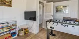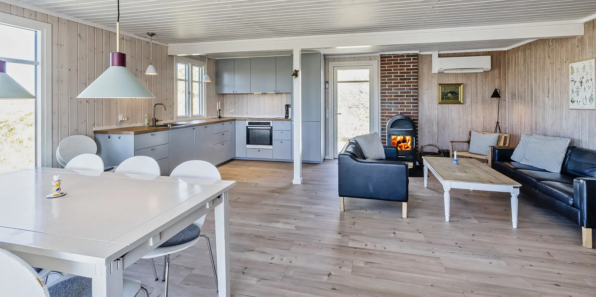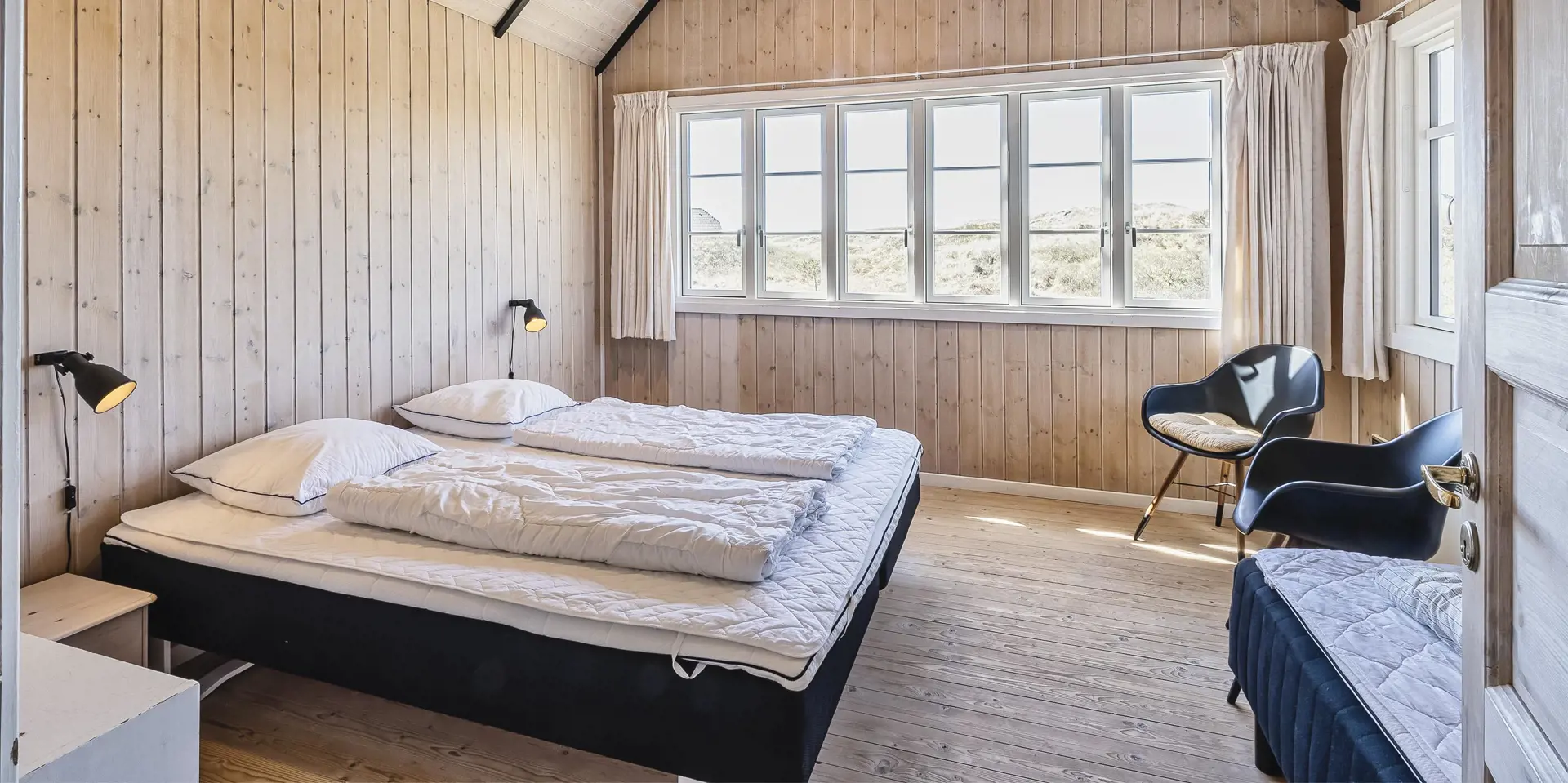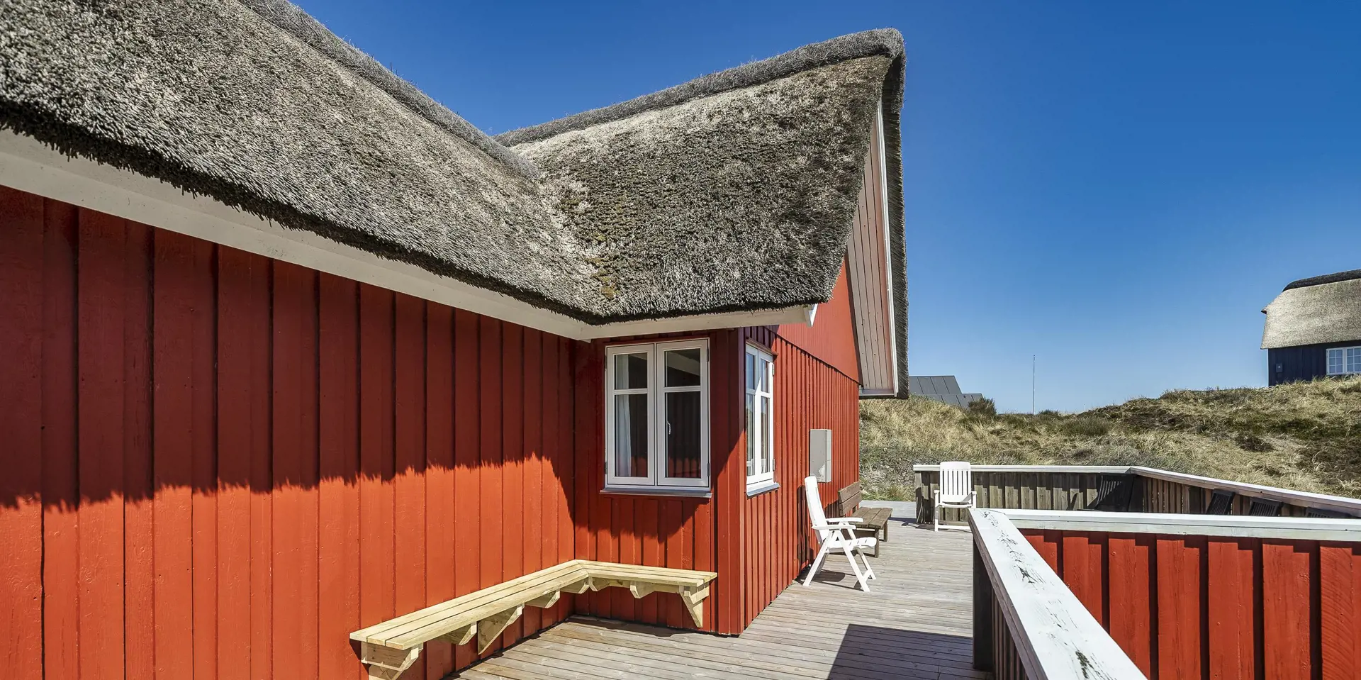 Gemütlich und rustikal eingerichtetes Reetdach-Ferienhaus über zwei Ebenen, auf einer Düne gelegen mit tollem Ausblick und für 6 Personen ausgestattet. Der Strand ist nur 100 Meter vom Ferienhaus entfernt. Sie erreichen Ihnen direkt über die Dünenkette. Das Wohnzimmer ist mit einem neuen Laminatboden ausgestettet worden, ebenso der Essbereich und die Küche. Wohn- und Essbereich sind mit dem Küchenbereich verbunden. Der Essbereich ist grosszügig und an dem Tisch finden alle Bewohner des Hauses genügend Platz. Ein Kamin strahlt hier eine angenehme Wärme aus und bringt somit dem ganzen den gemütlichem Charme rüber. Das deutsche Fernsehprogramm empfangen Sie über eine Parabolantenne. Zusätzlich gibt es eine Wärmepumpe im Ferienhaus. Mit dieser Wärmepumpe haben Sie die Möglichkeiten die Stromkosten zu senken, denn sie ist energiesparend. Die neue Einbauküche ist hell und freundlich und verfügt über ein Herd mit Cerankochfeld, einem Backofen, einer Geschirrrspülmaschine und einer Kühl- und Gefrierrkombination. Das Badezimmer ist einfach gehalten und hat ein WC, ein Handwaschbecken und eine Dusche. Die Waschmaschine ist auch hier im Badezimmer untergebracht. Es gibt insgesamt drei Schlafzimmer im Ferienhaus: DB + DB + DB/EB. Ein Schlafzimmer ist im unteren Bereich und mit einem tollen Holzfussboden ausgelegt und verfügt über ein Doppelbett. In dem kleinen Gang zum Schlafzimmer befindet sich eine grosse Schrankwand. Hier ist genügend Platz um all Ihre Sachen unterzubringen. Das Erste Zimmer dient als Spielzimmer. Es ist ein einzelnes Bett aufgestellt und ein Tischfussball, dazu noch ein Schreibtisch. Über eine breite Holztreppe erreichen sie das Obergeschoss. Hier sind zwei weitere Schlafzimmer mit Holzfussboden und je einem Doppelbett. Das hintere Schlafzimmer hat einen Balkon. Von hier haben Sie den wundervollen Blick auf die Dünenkette Richtung Strand. Der Eingangsbereich im Hause ist grosszügig gehalten und bietet ausreichend Platz für Jacken und Schuhe. Das Ferienhaus verfügt über einen Internetanschluss (W-Lan). Es gibt insgesamt drei Terrassen am Ferienhaus. Es sind keine Haustiere erlaubt, mit Ausnahme ein kleiner Hund mit max. von 30 cm. Das Rauchen im Ferienhaus ist nicht erlaubt. Das Ferienhaus ist 1971 erbaut worden und in 2022 renoviert.