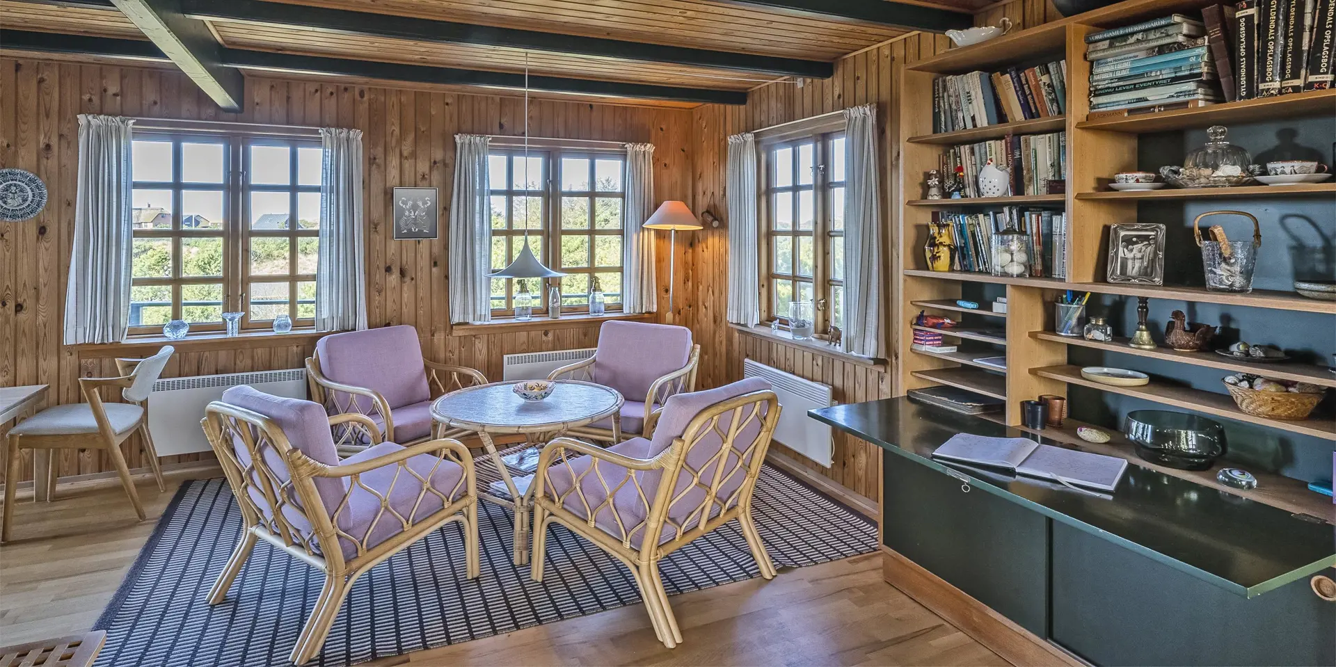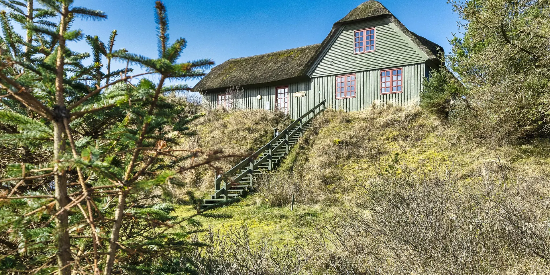 Gepflegtes Liebhaber-Ferienhaus mit Panoramablick für 6 Personen, 3.000 m2 großes Grundstück, etwa 200 Meter vom Strand entfernt. Alle Räumlichkeiten sind auf 2 Ebenen verteilt. Im Erdgeschoss: Wohnzimmer mit Sat-Tv und Essbereich. Offene Wohnküche mit Herd mit Cerankochfeld, Backofen, Geschirrspülmaschine, Mikrowelle und Kühl-/Gefrierkombination. Badezimmer mit Du/Wc und Sauna. Waschmaschine. 3 Schafzimmer: DB + DB + 2B. Um das Ferienhaus herum ist eine abgeschlossene Terrasse mit Rundum-Panoramablick über Vejers. Internetanschluss (W-Lan). Es ist max. 1 Haustier erlaubt. Rauchen ist im Ferienhaus nicht erlaubt. Das Ferienhaus ist 1934 erbaut worden und in 1980 renoviert.