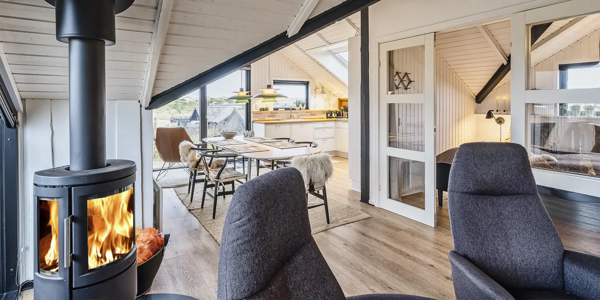 Dieses schnuckelige Ferienhaus für 6 Personen liegt am Anfang einer Ringstraße auf einem Naturgrundstück in den Dünen und der Strand ist nur 200 Meter vom Haus entfernt. Diese Ringstraße liegt in einer ruhigen Umgebung. Der Eingangsbereich, der Wohn- und Essbereich und ein Schlafzimmer sind mit Laminat ausgelegt. Dieses gemütliche Ferienhaus ist sehr geschmackvoll und persönlich eingerichtet. Vom Eingangsbereich geht dann gleich das Badezimmer und zwei Schlafzimmer ab. Das Badezimmer verfügt über ein WC, eine Dusche und ein Handwaschbecken und auch über eine Fußbodenheizung. Das Badezimmer ist in 2021 total renoviert. Zusätzlich ist ein grosses Velux-Dachfenster eingebaut worden und ein hängendes WC. Das Ferienhaus verfügt über insgesamt drei Schlafzimmer: DB + DB + 2B. Die neue Küche verfügt über einen Herd mit Cerankochfeld, einem Backofen, einer Mikrowelle, Geschirrspülmaschine und einer Kühl und Gefrierkombination. Von dem Wohnbereich haben Sie direkten Blick auf den Kamin, und können das Lodern der Flammen beobachten. Das Ferienhaus erscheinlicht durchflutet, da es im Wohnbereich die grosse Fensterfront hat. Deutsches Fernsehprogramm ist über eine Parabol-Antenne zu empfangen. Auch in dem Essbereich ist eine grosse Fensterfront an der Giebelseite und genügend Platz für alle Bewohner ist auch gegeben. Der Kamin befindet sich in der Nähe und so ist auch dann im Essbereich eine gemütliche Atmosphäre. Desweiteren haben Sie einen Internetanschluss (W-Lan). Die Kosten für Gas für den am Haus befindlichen Grill haben die Kunden selber zu tragen und zu besorgen. Sie haben aber die Möglichkeit im Büro Gas zu kaufen. Es sind max. drei Haustiere erlaubt. Katzen sind nicht erlaubt. Rauchen ist nicht erlaubt. Das Ferienhaus ist 1975 erbaut und ist laufend renoviert, wobei wie bereits geschrieben das Badezimmer in 2021 erneuert wurde und die Küche/Wohnbereich in 2022.